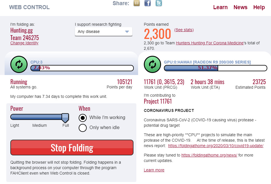 Dan is dit een uitgelezen kans om de computers op de zaak aan het werk te zetten. Zet ze nuttig in door op alle werk computers Folding@home te installeren en laat ze 24/7 aanstaan. Folding@home gebruikt alleen de extra, overtollige, rekenkracht. Dus je komt niets tekort qua werkcapaciteit. Bedenk dat je pc’s er niets van voelen als je personeel thuis werkt of je zaak tijdelijk gesloten is. Ze werken dag en nacht, zeven dagen in de week. En je weet het: laat niet tot morgen wat je vandaag kan delegeren, dus schakel je systeembeheerder in en zet die pc’s aan het werk.Installatie En Activatie
