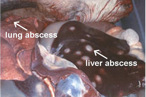 Witte abscessen op de lever en milt
