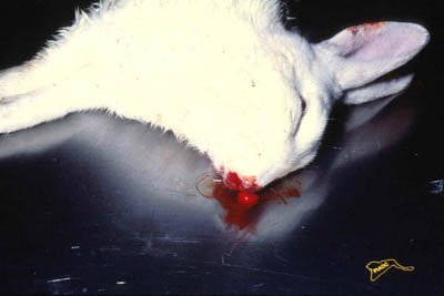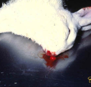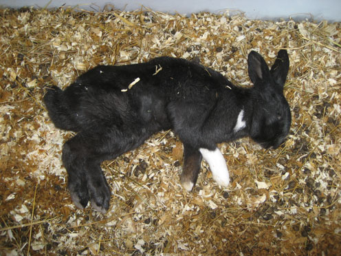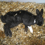 Konijn sterft plotseling door longbloedingen en degeneratie van de lever (niet zichtbaar).