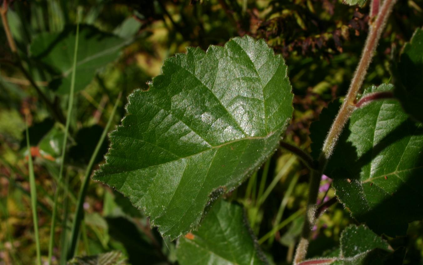 - Het blad is kaal en dun in omtrek en heeft ongeveer een ruitvorm met een toegespitste top