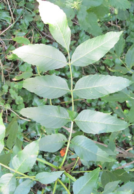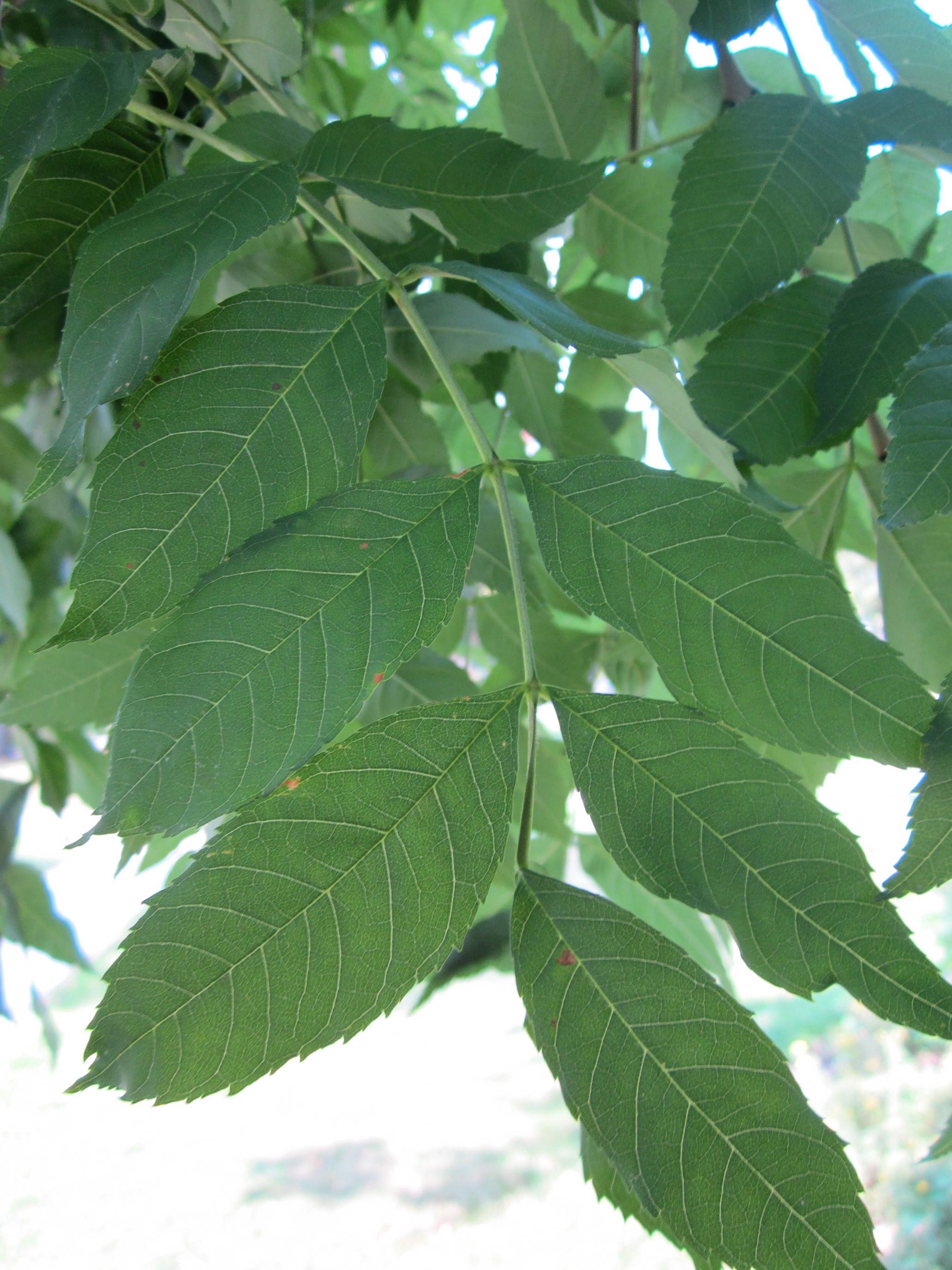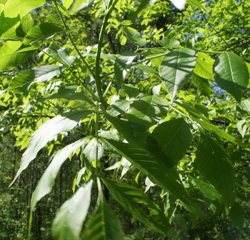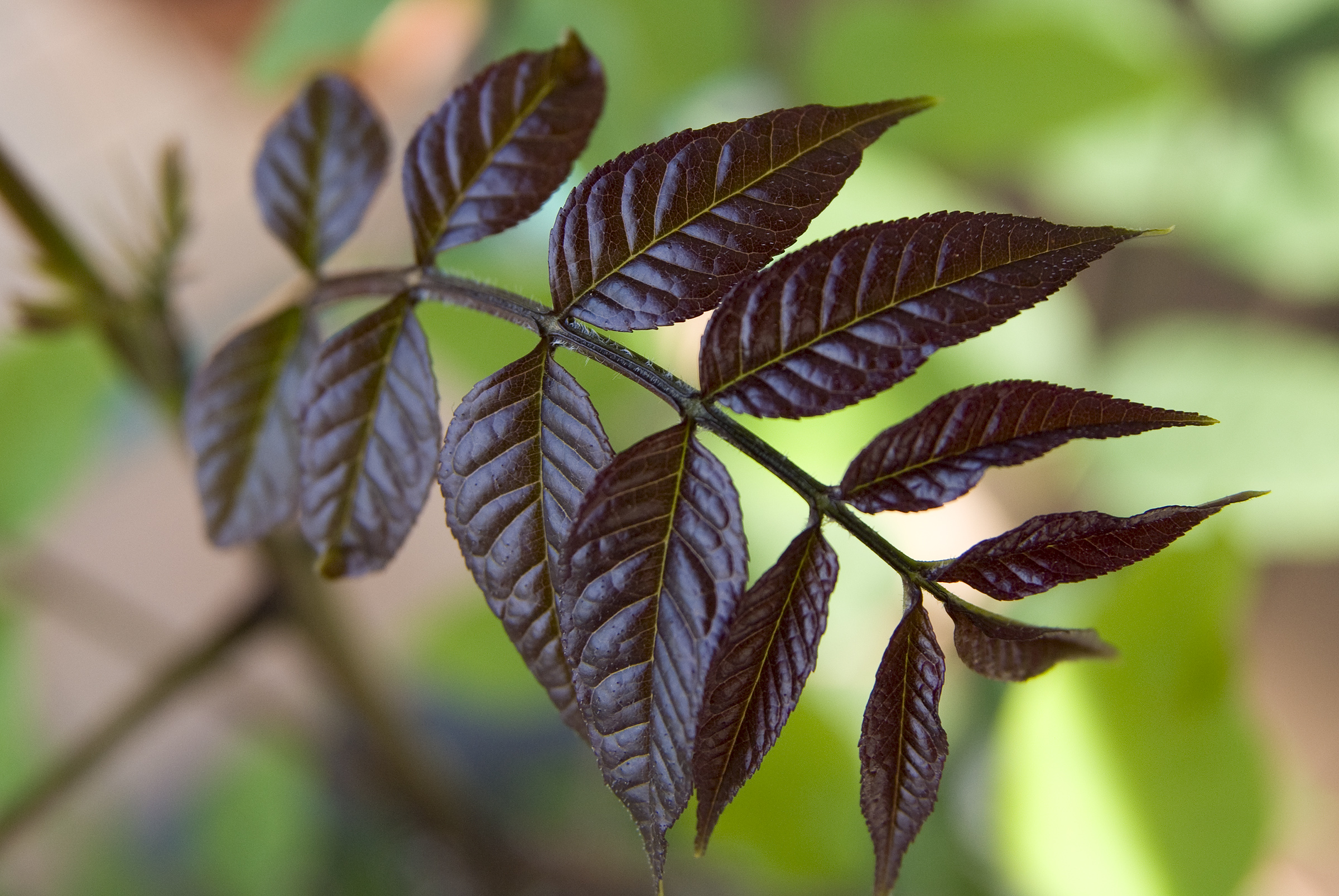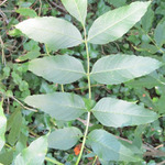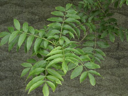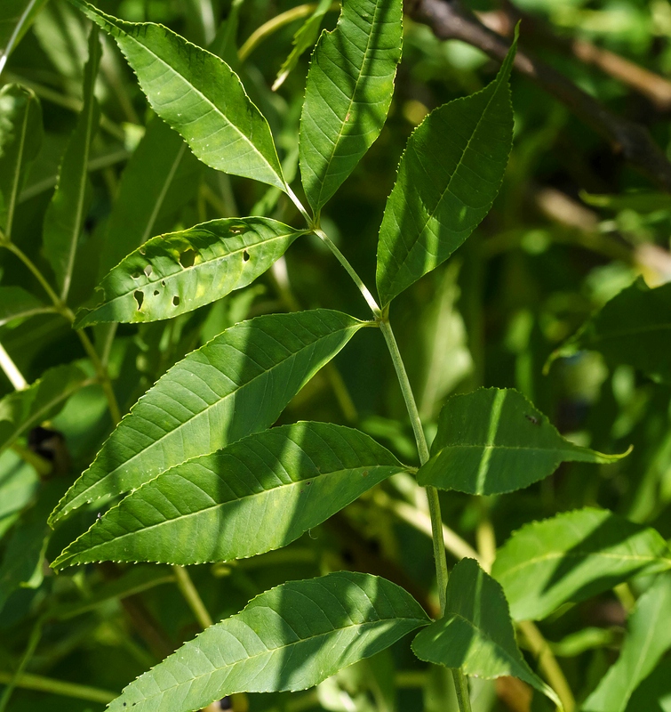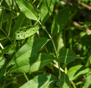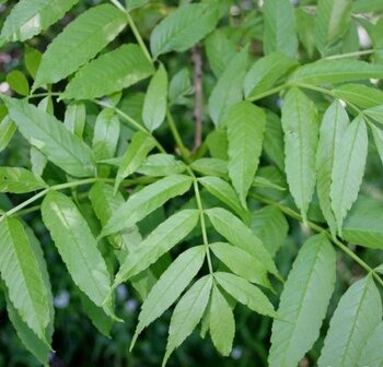 - Het blad is opgebouwd uit 7 tot 13 lancetvormige zittende deelbladeren