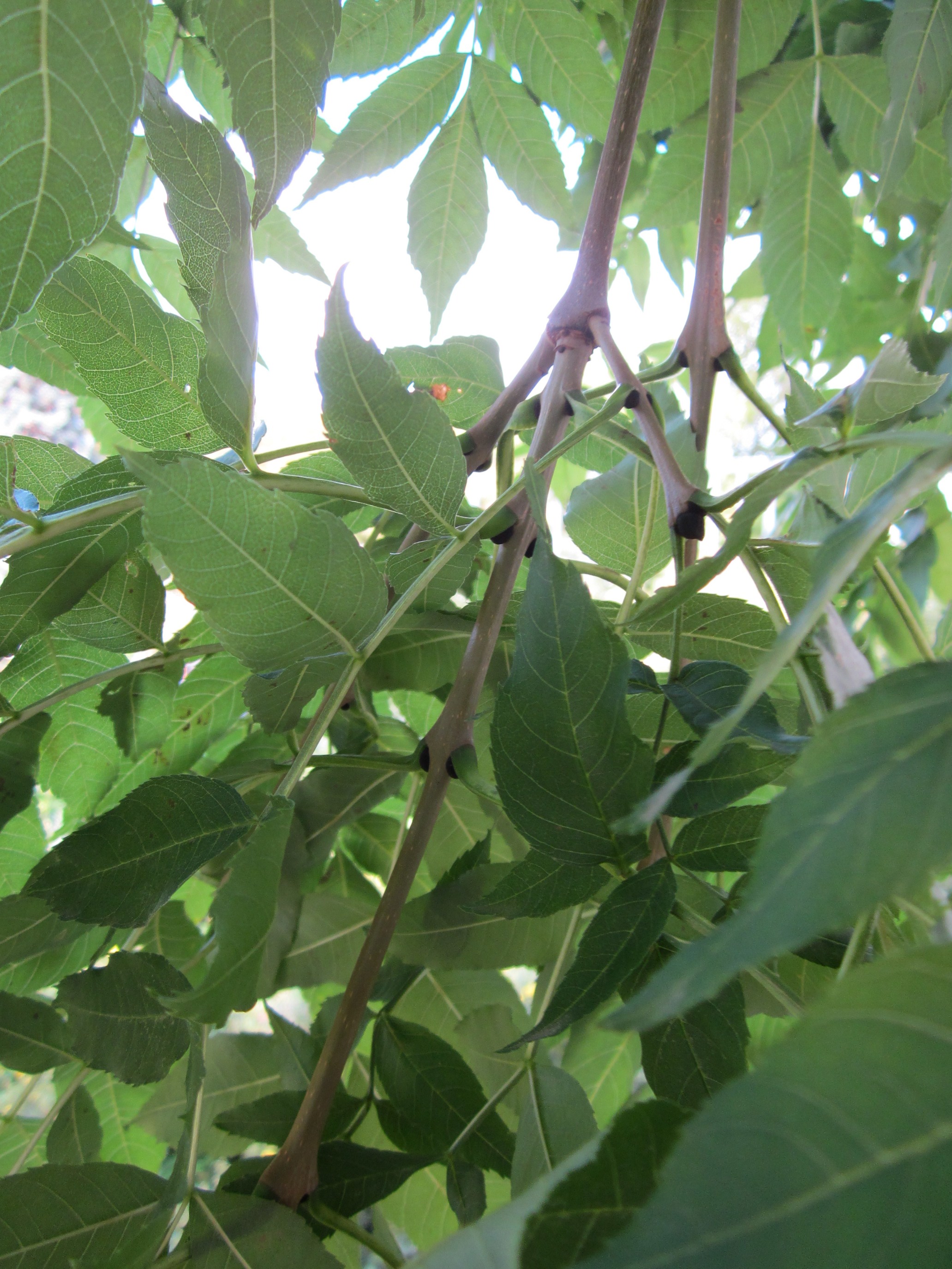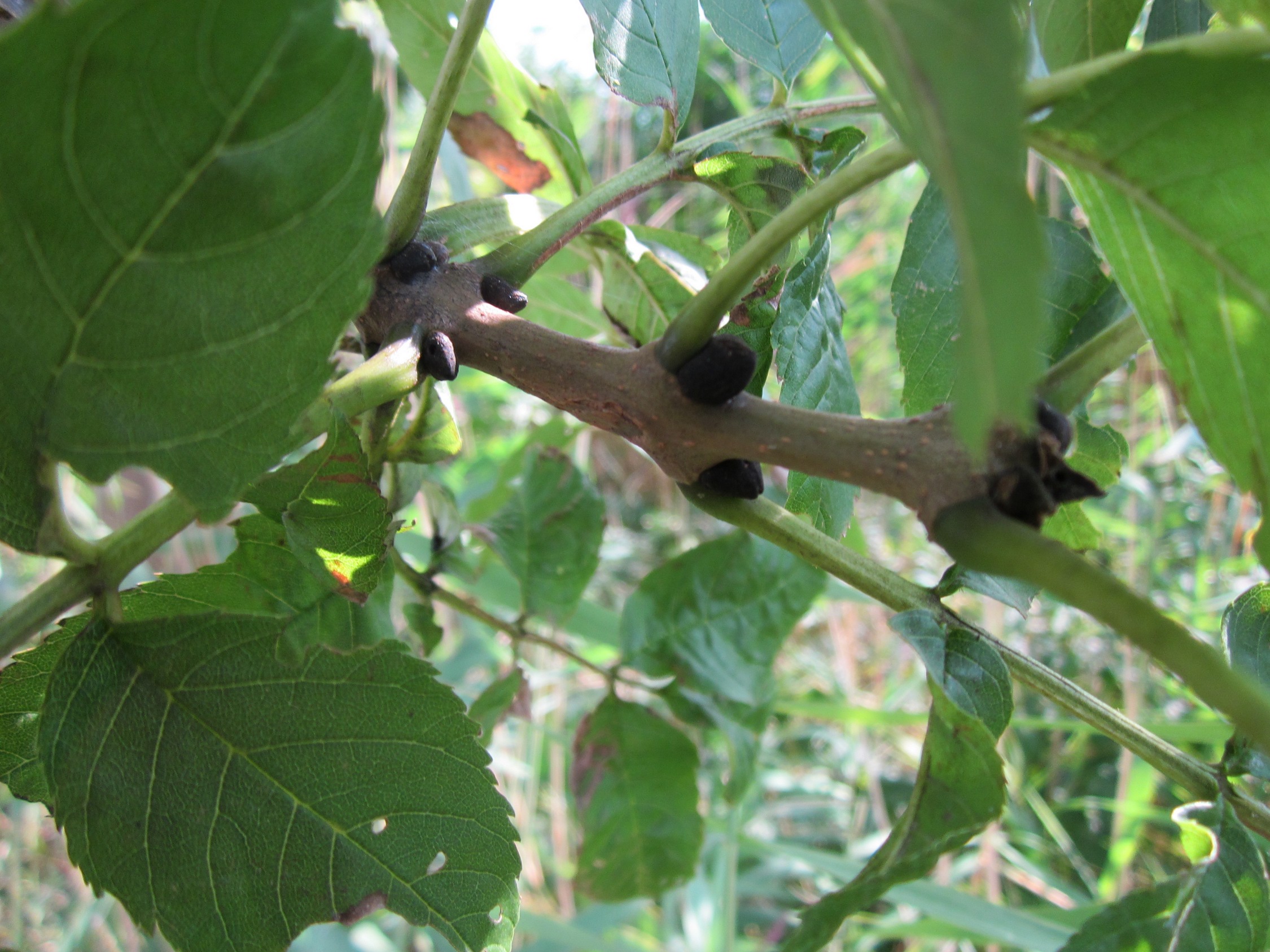 - De twijg is dik, grijsgroen en heeft zwarte knoppen
