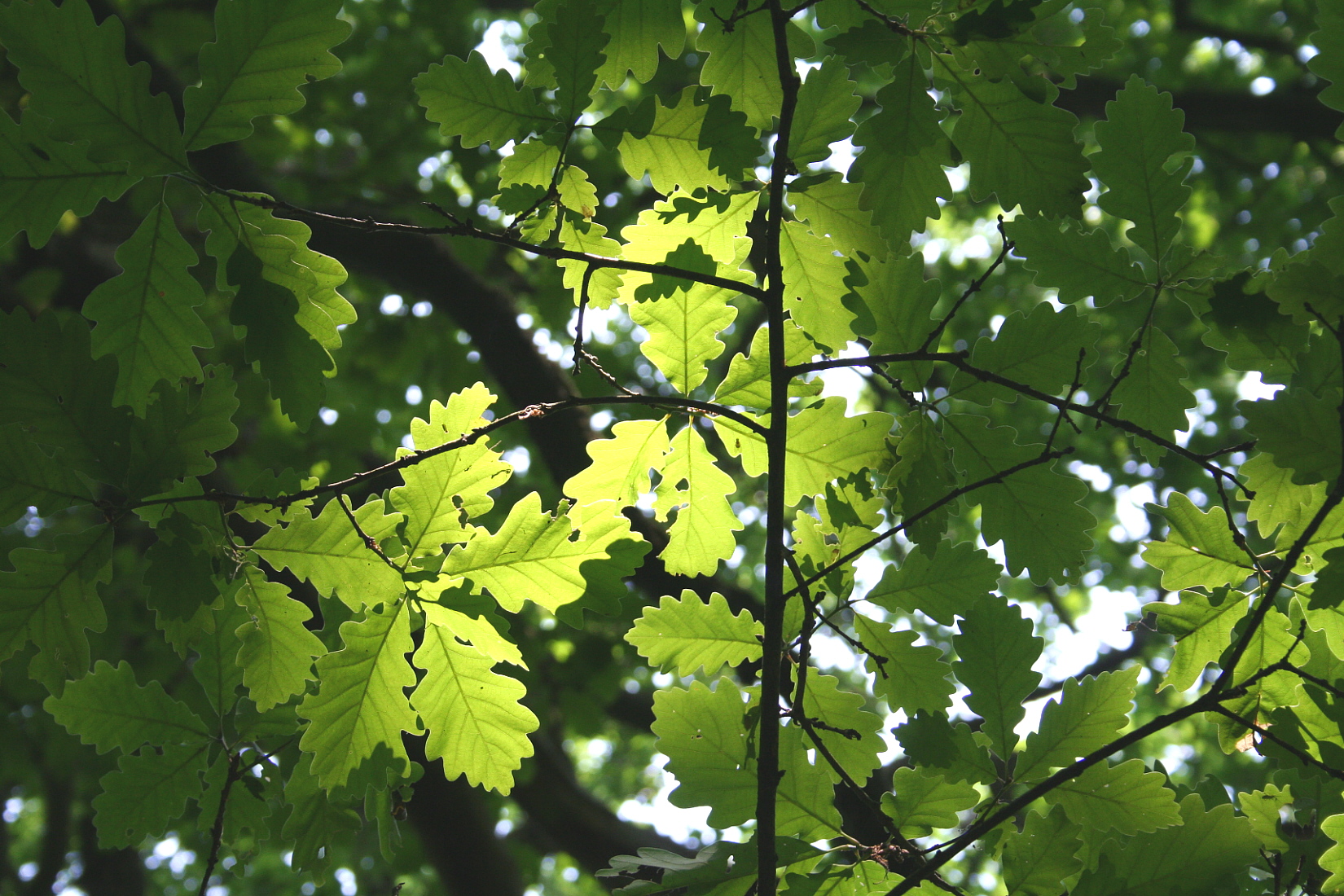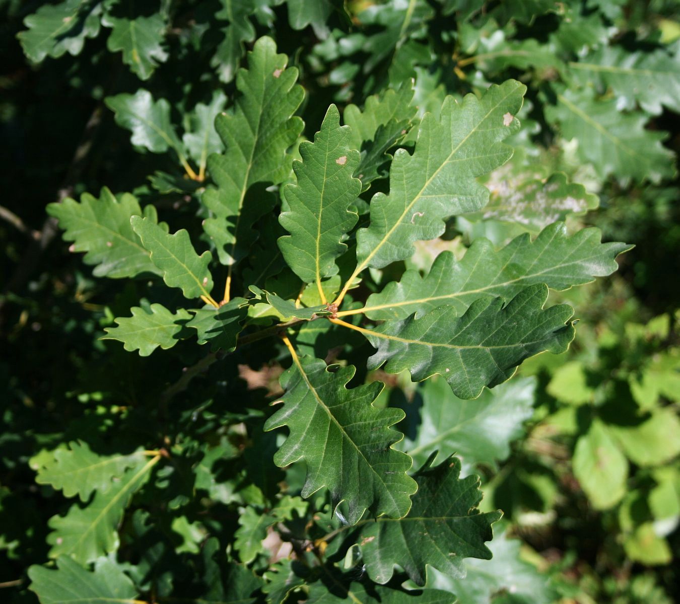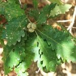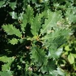 - Donkergroene bladeren met symmetrische afgeronde lobben