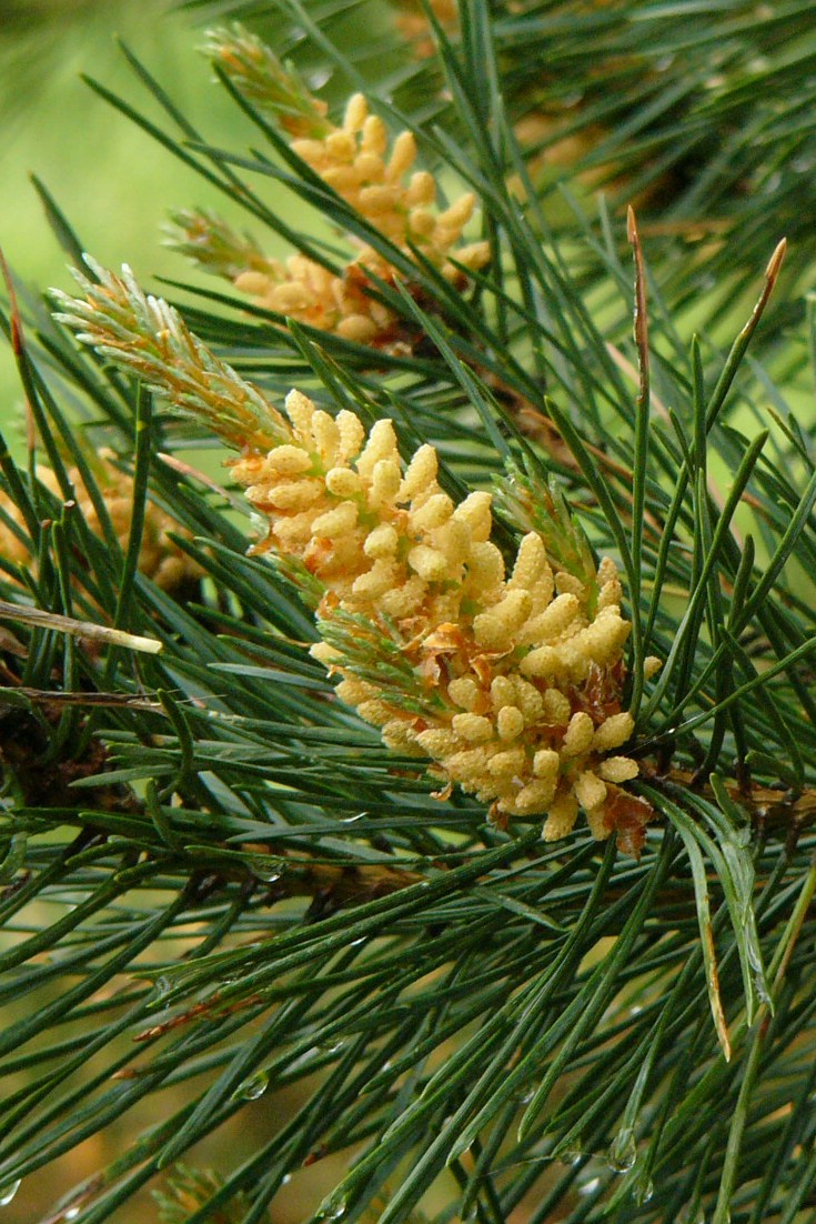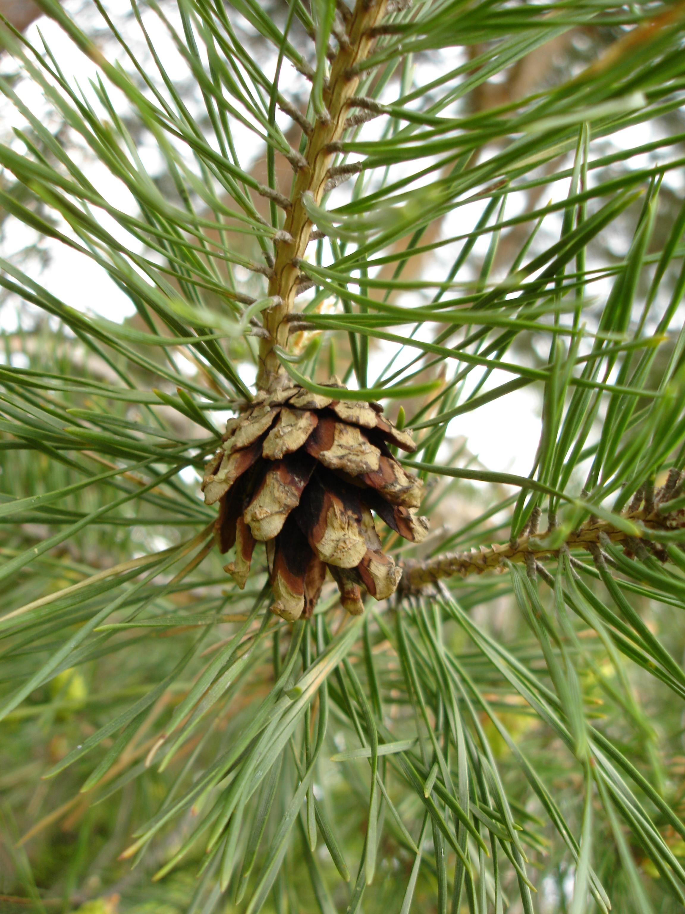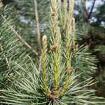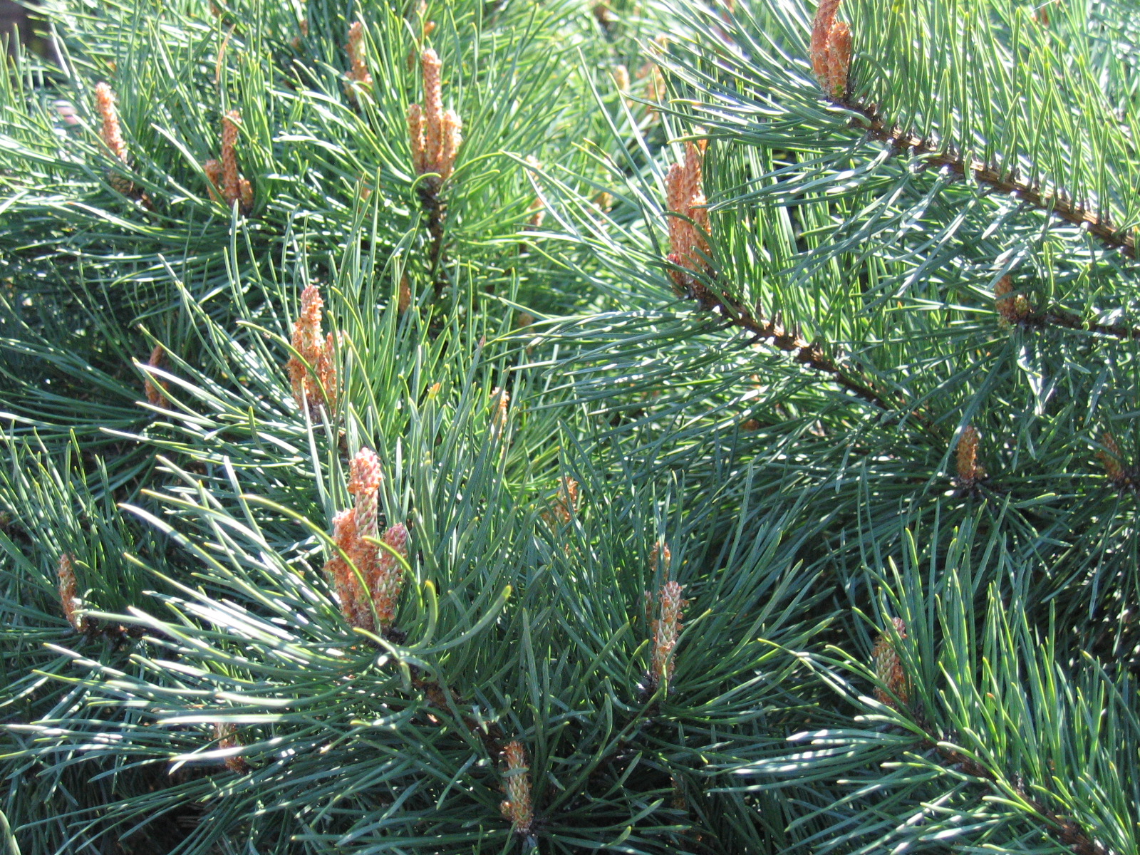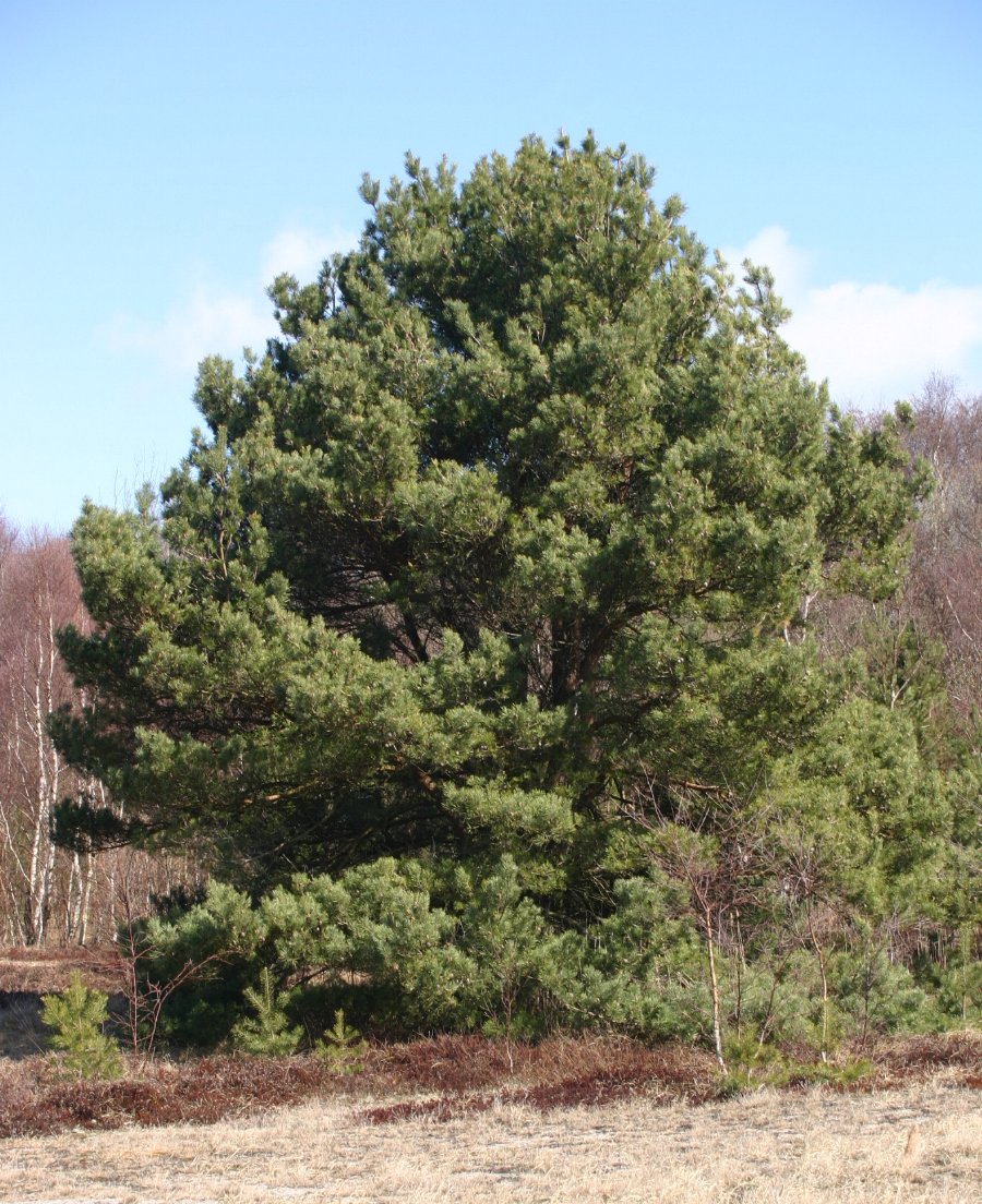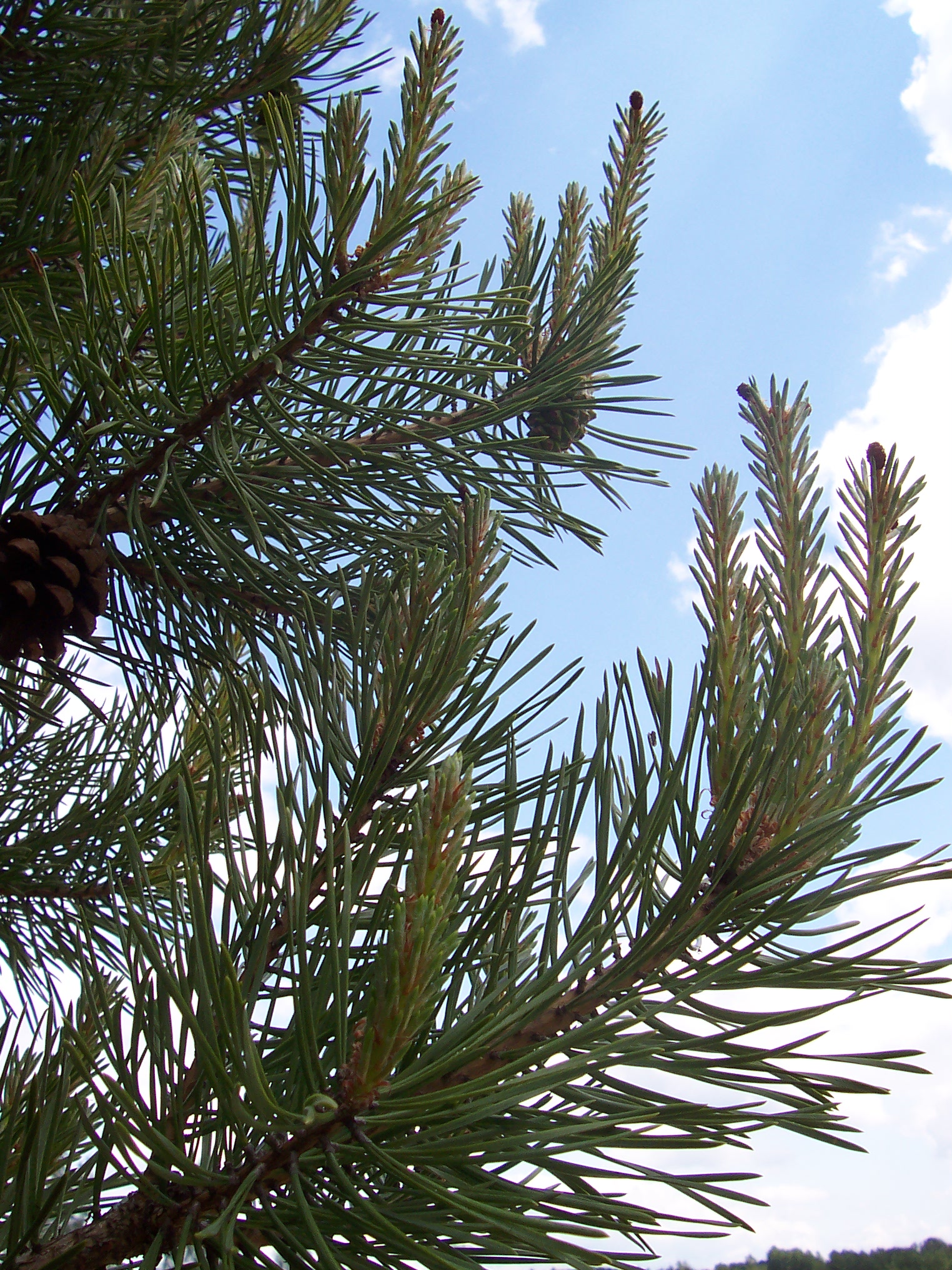 - De blauwegroene of grijsgroene naalden staan in paren met een doorsnede van 3 tot 7cm.