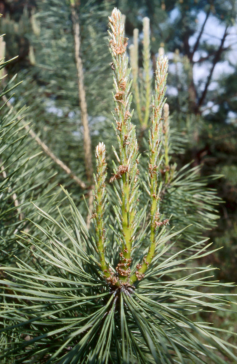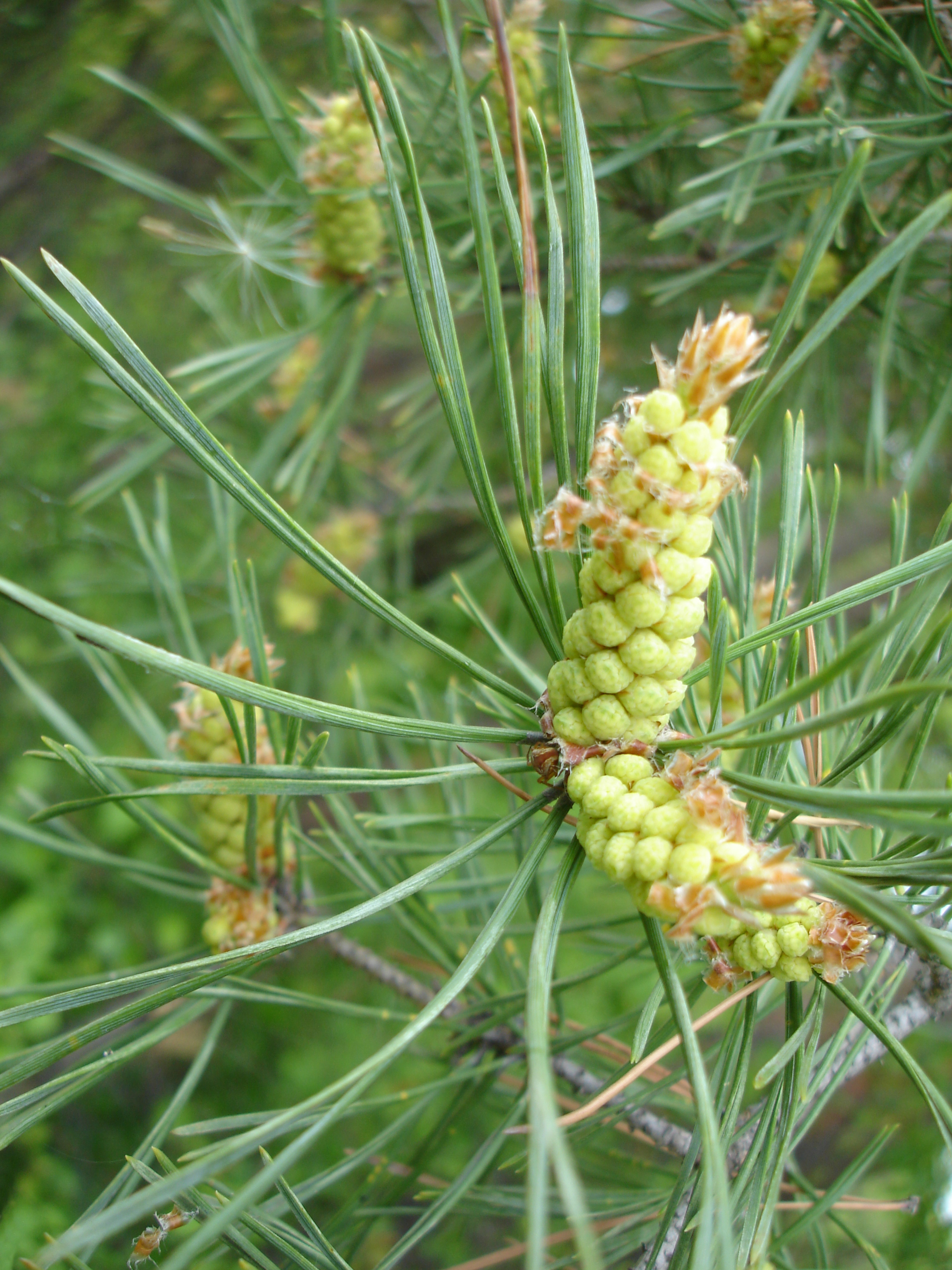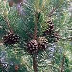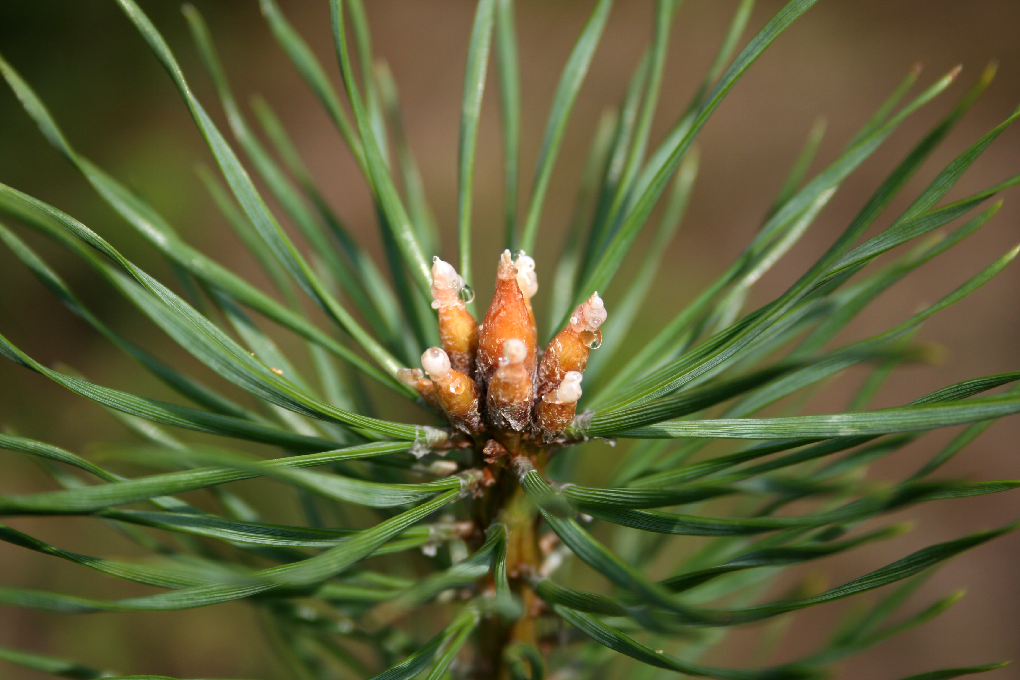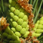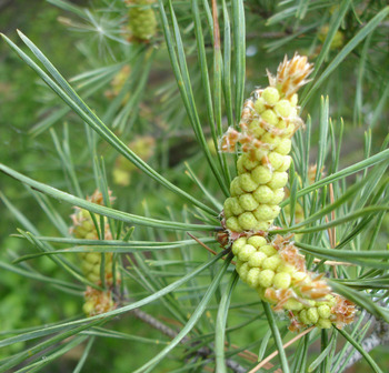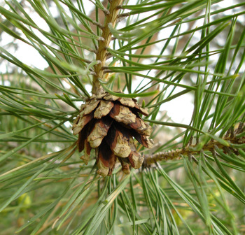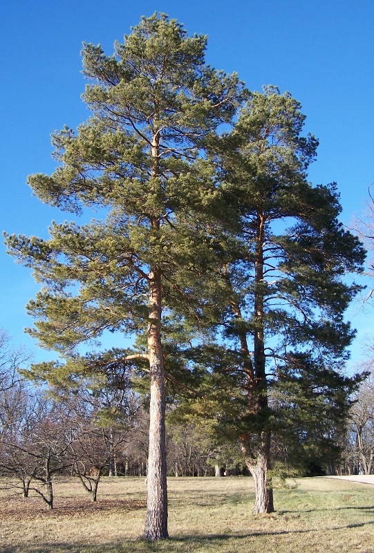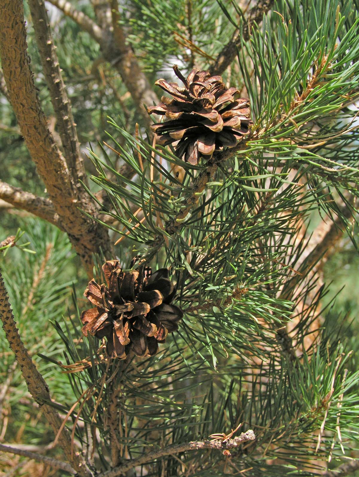 - De blauwegroene of grijsgroene naalden staan in paren met een doorsnede van 3 tot 7cm.