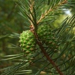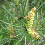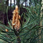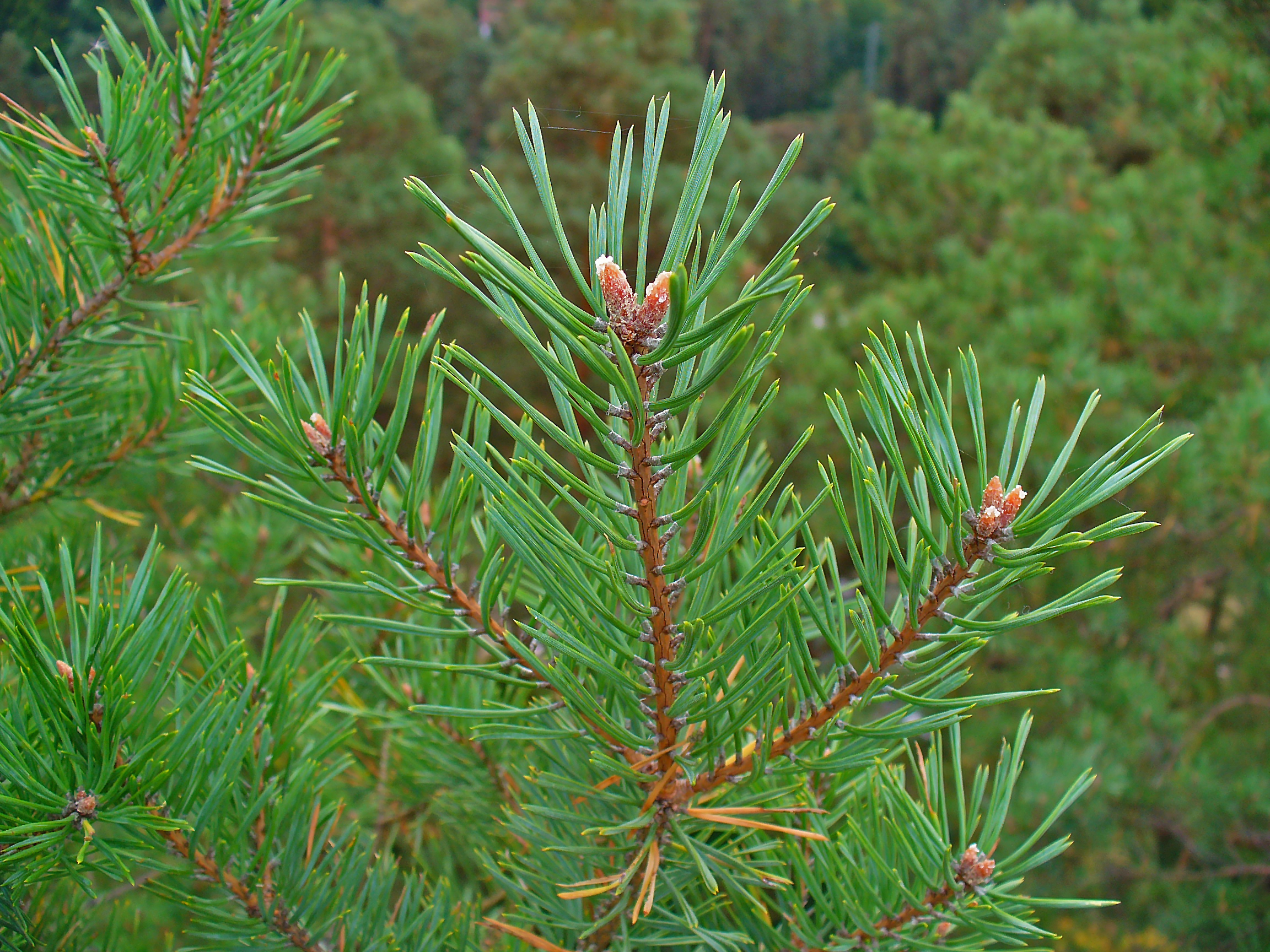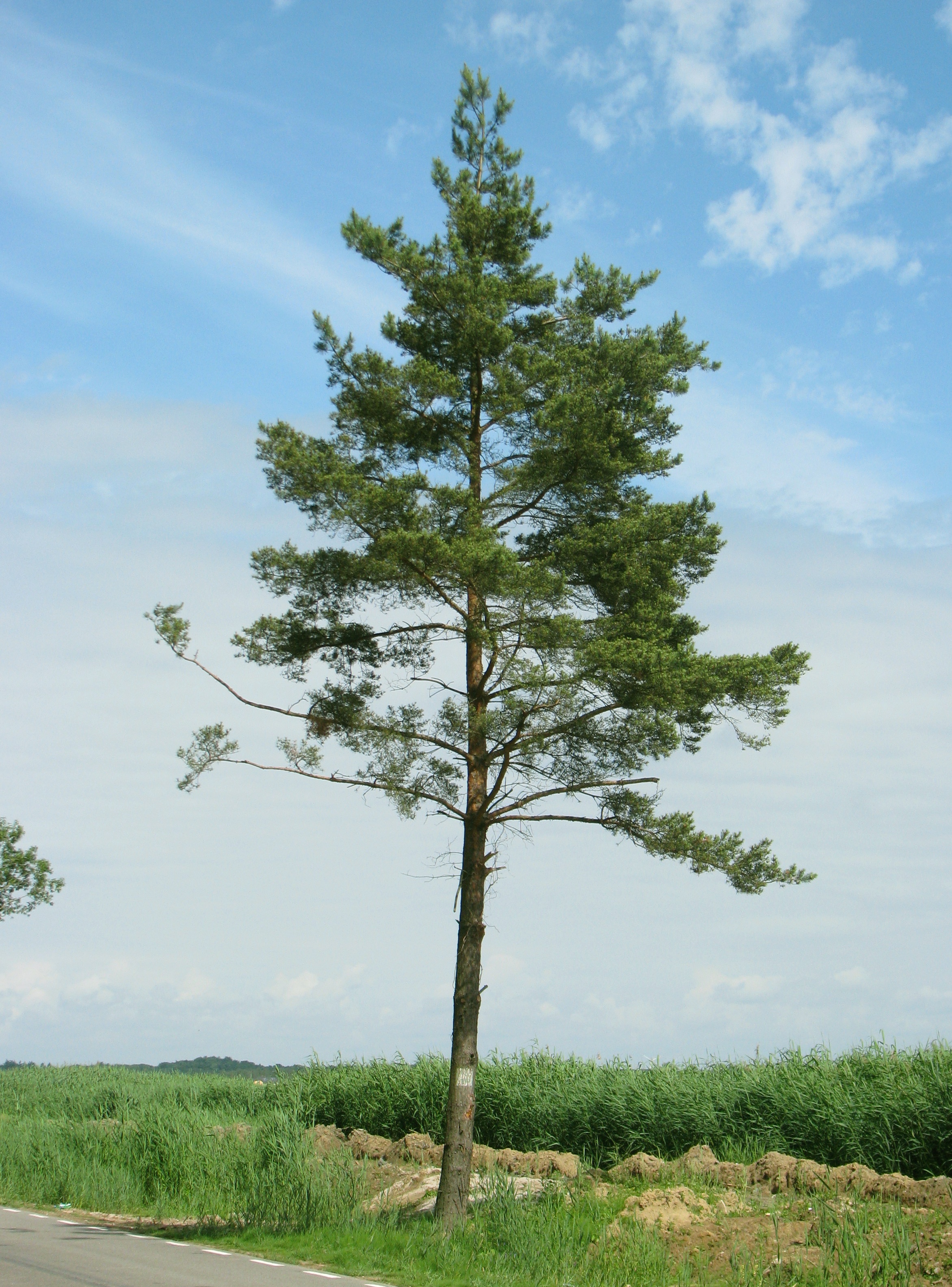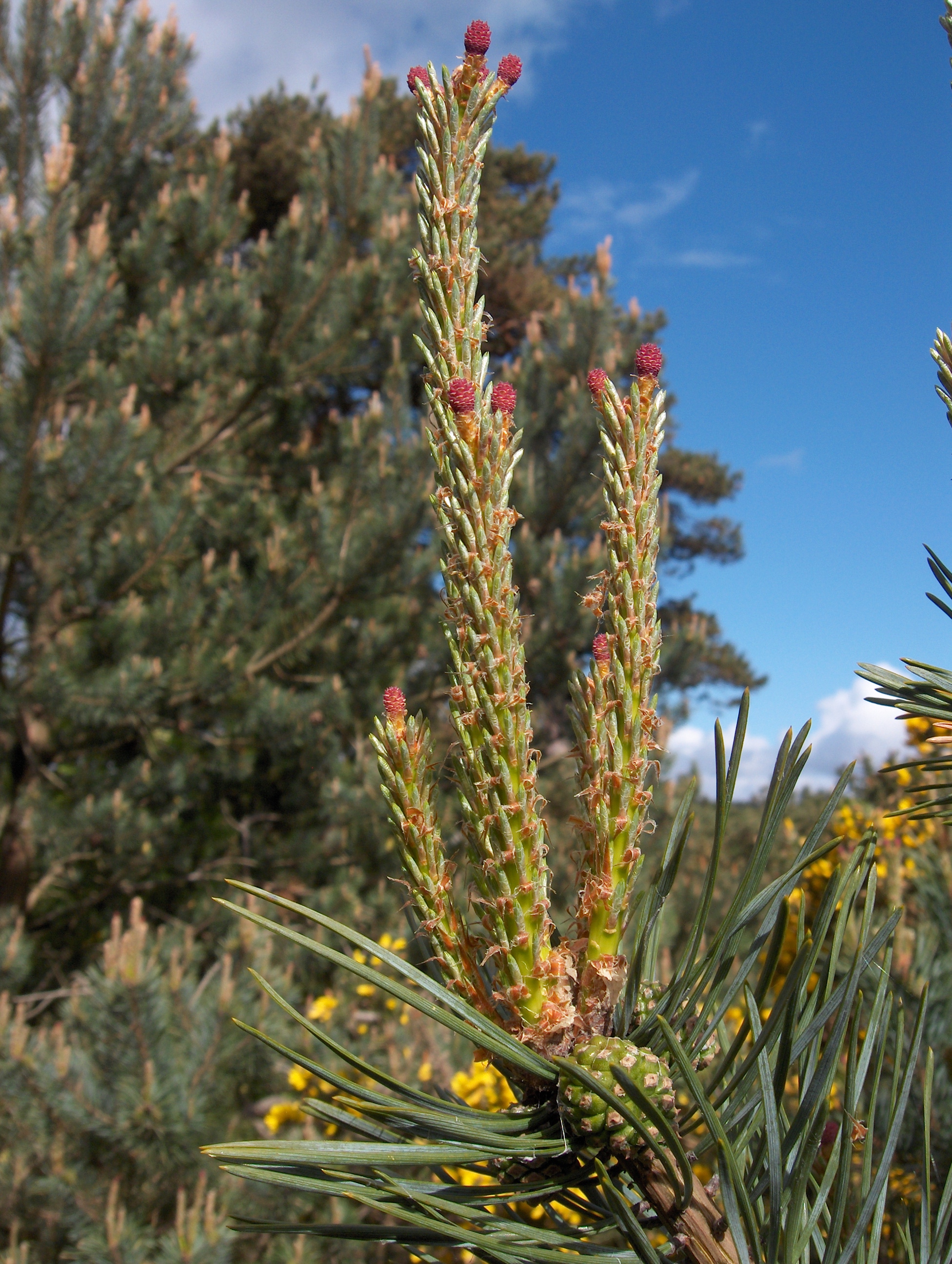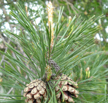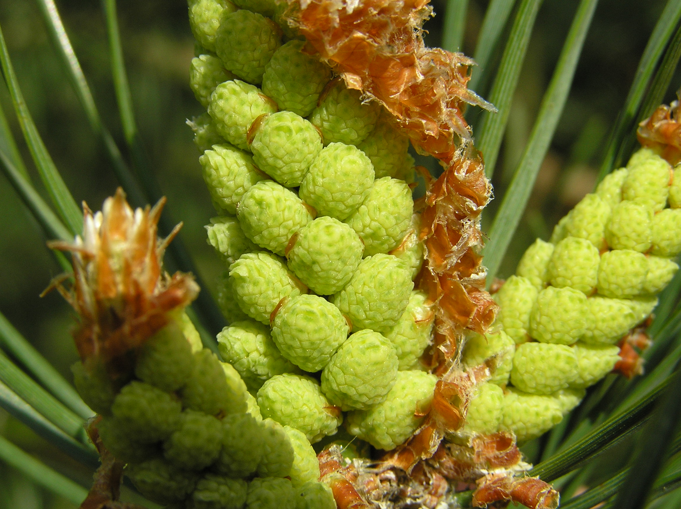 - De blauwegroene of grijsgroene naalden staan in paren met een doorsnede van 3 tot 7cm.