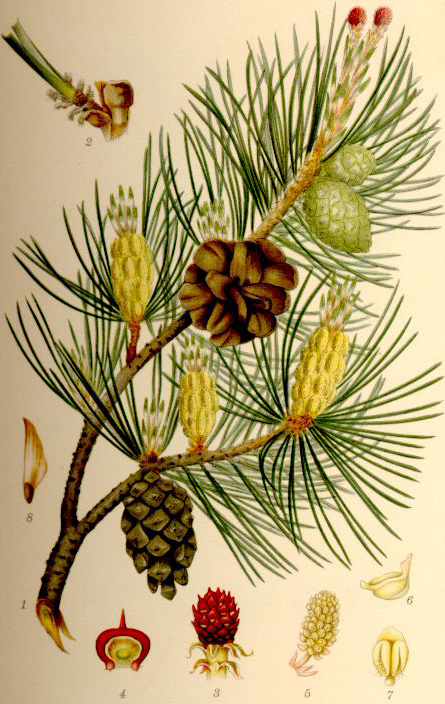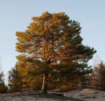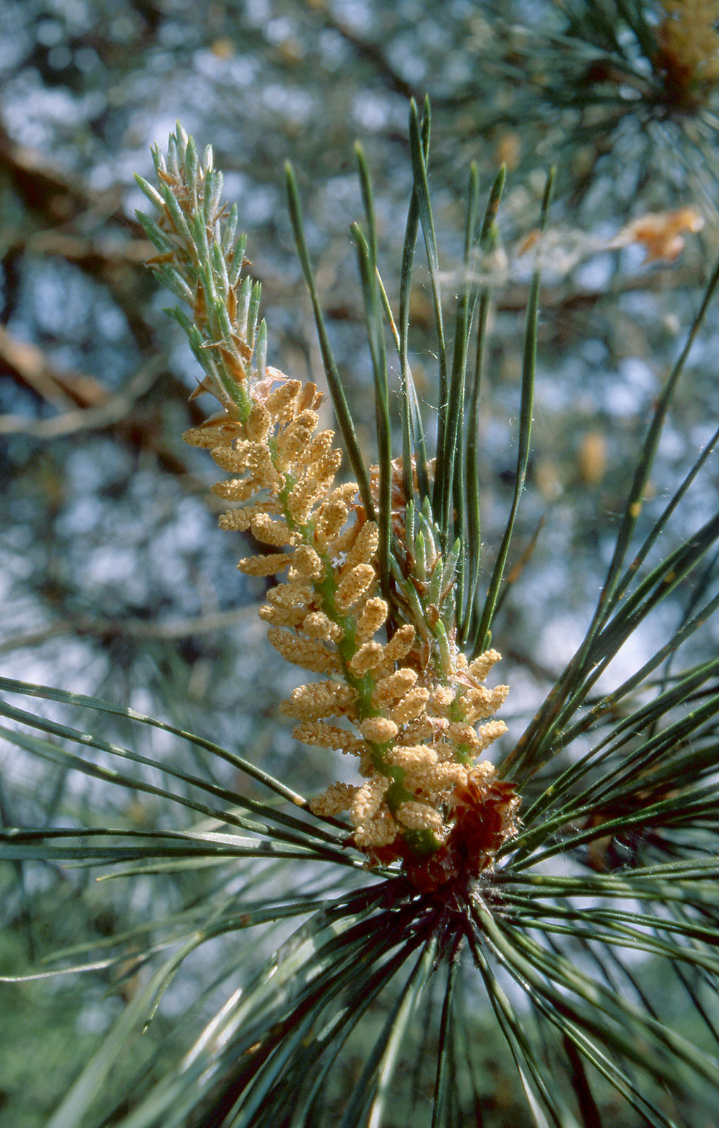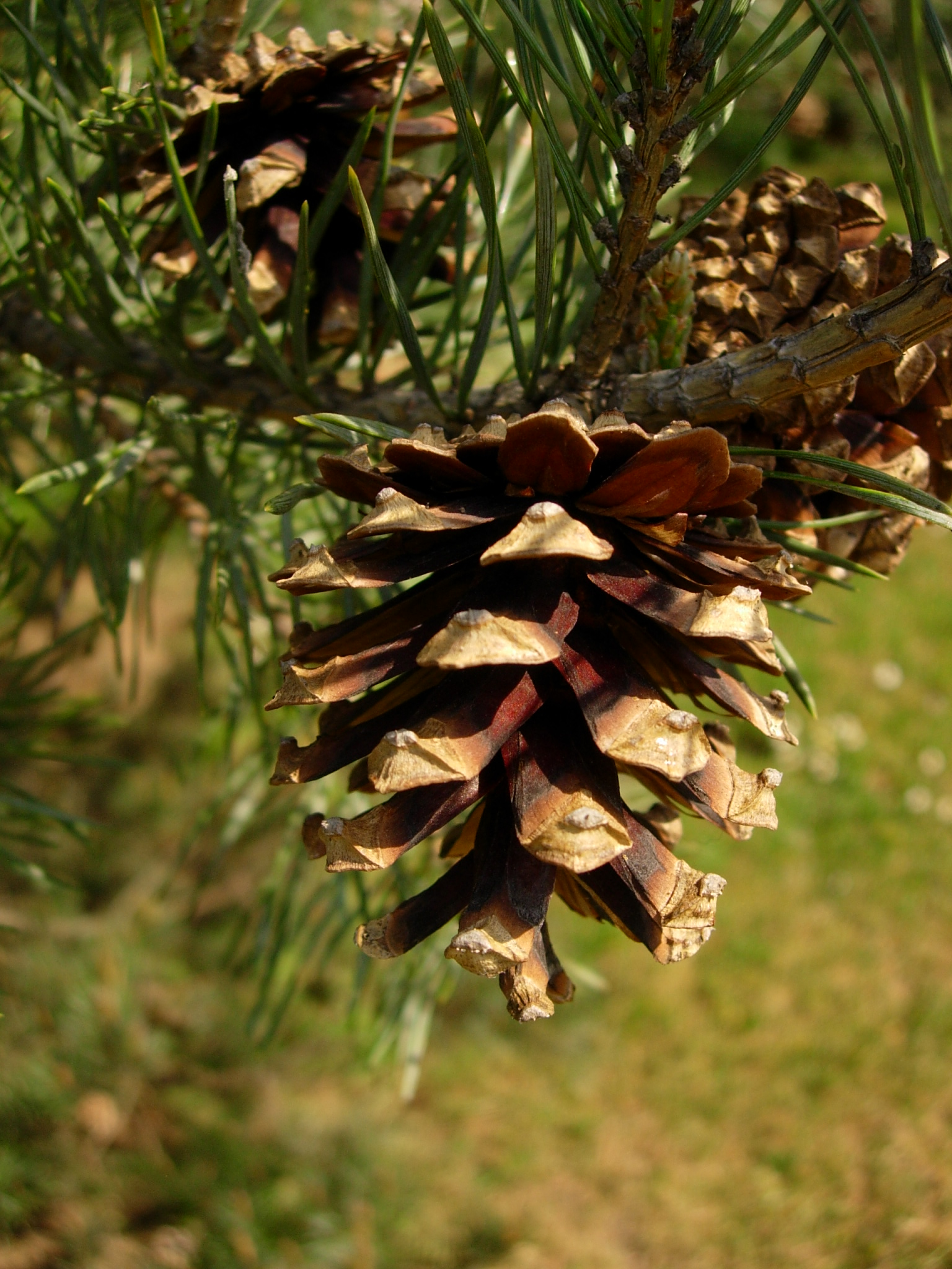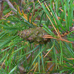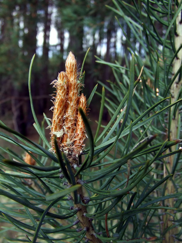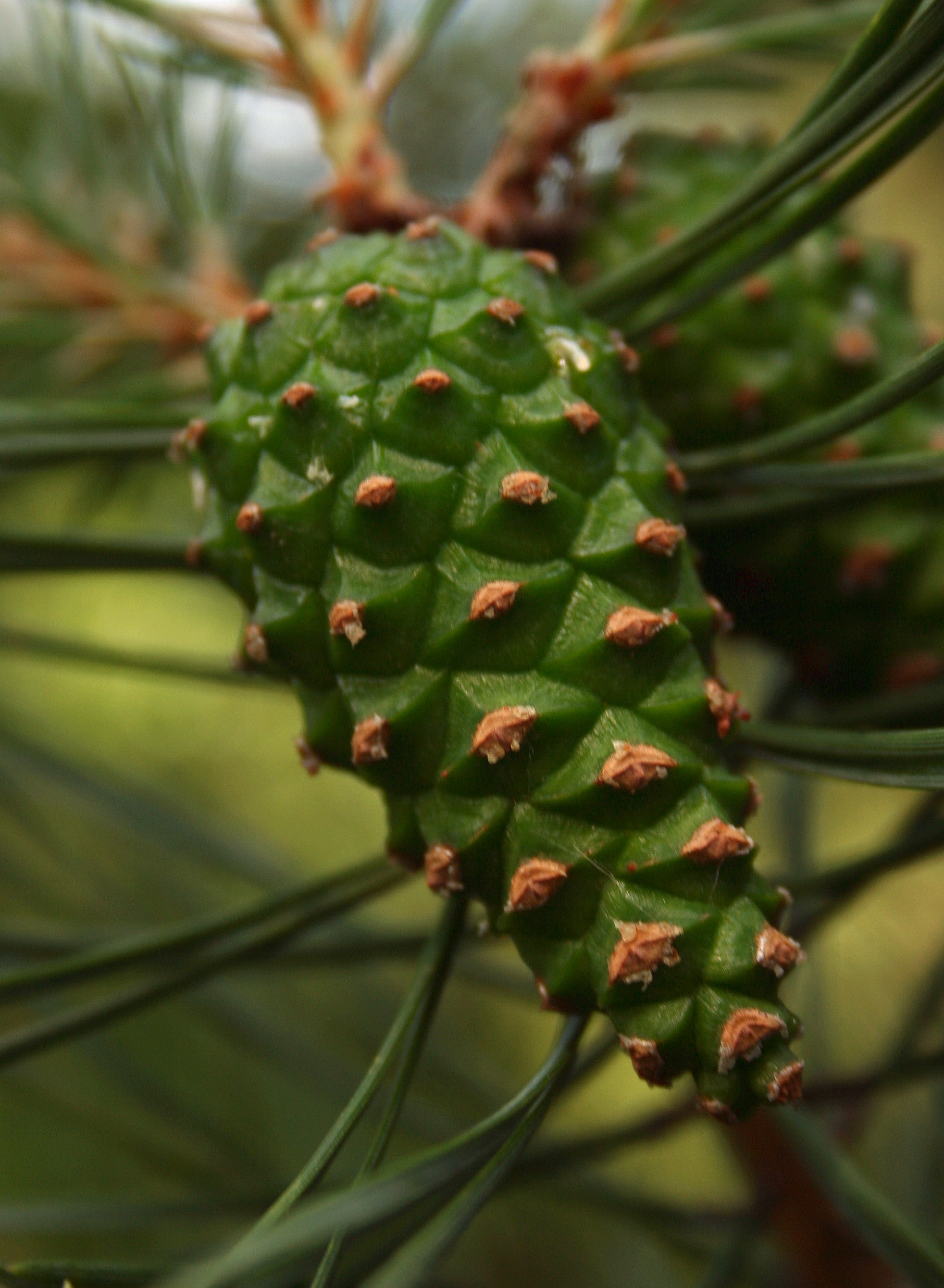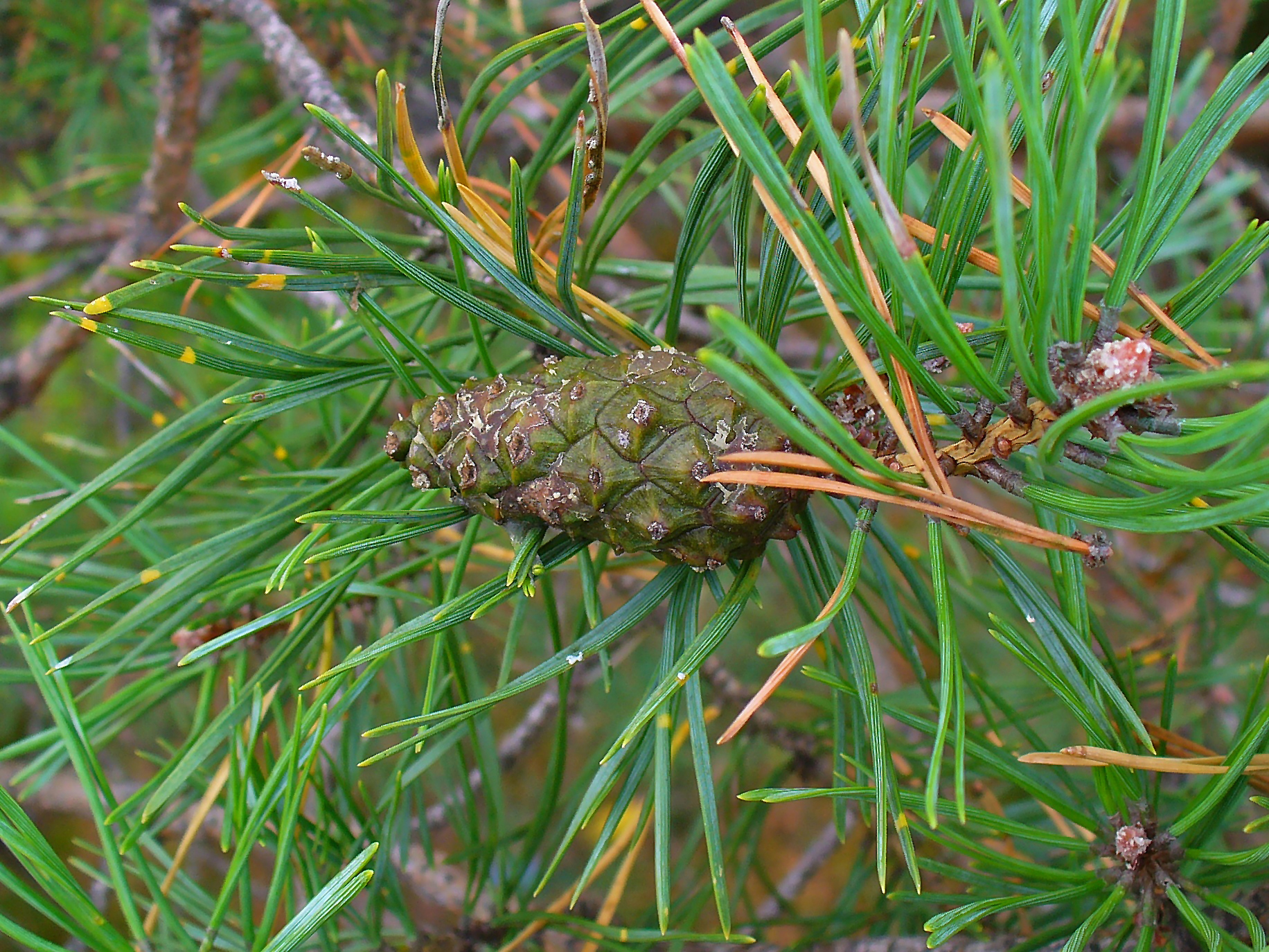 - De blauwegroene of grijsgroene naalden staan in paren met een doorsnede van 3 tot 7cm.