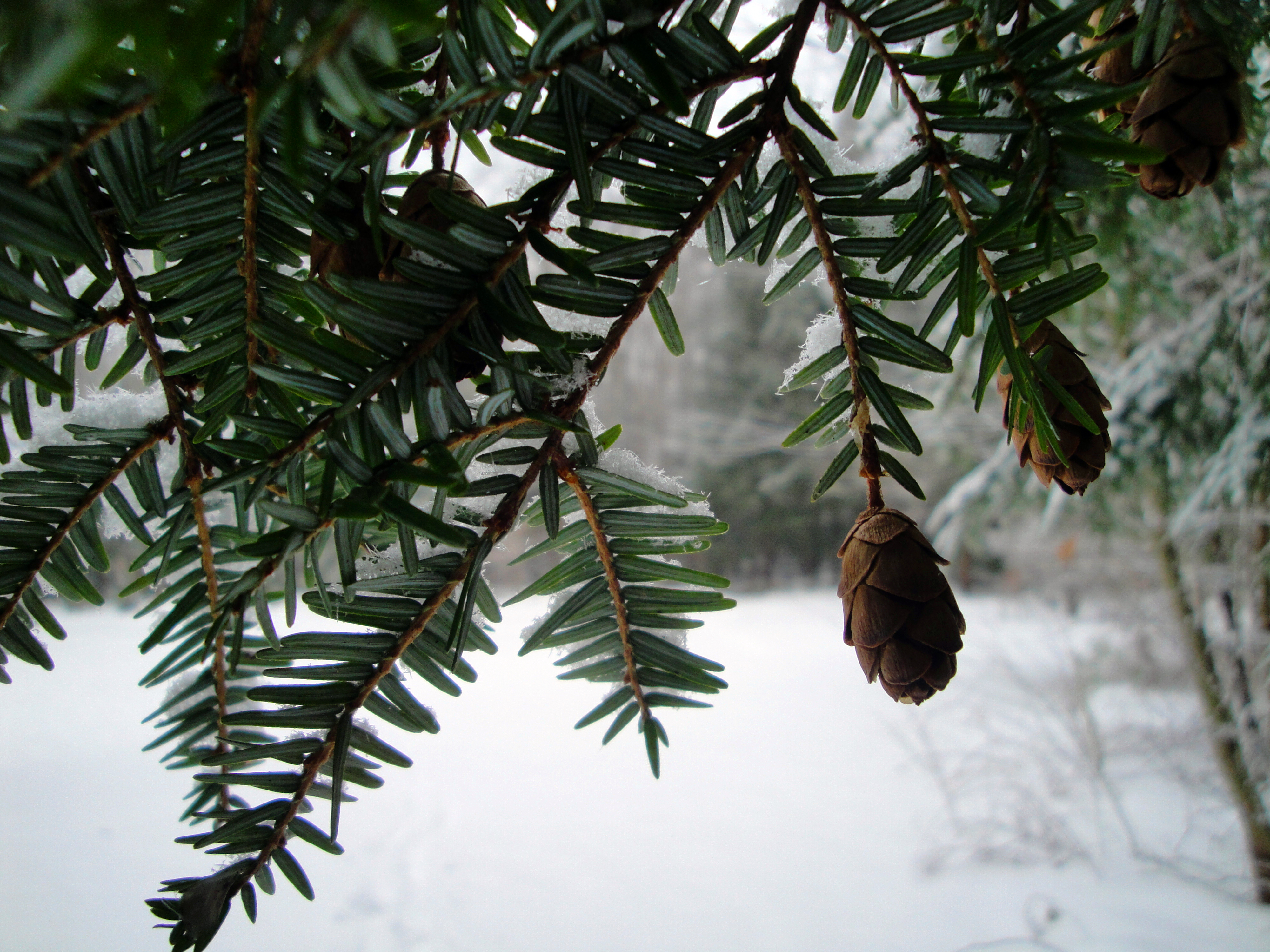 - De kegels zitten op de tak zijn 2 cm lang en groen tot paars