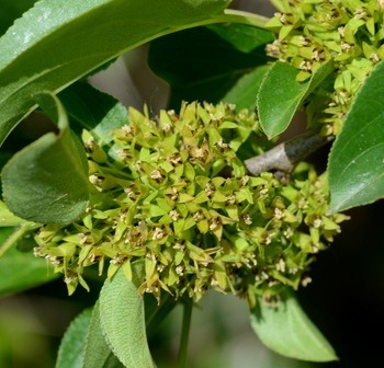 - Bloemen groeien in kluwen in de bladoksel