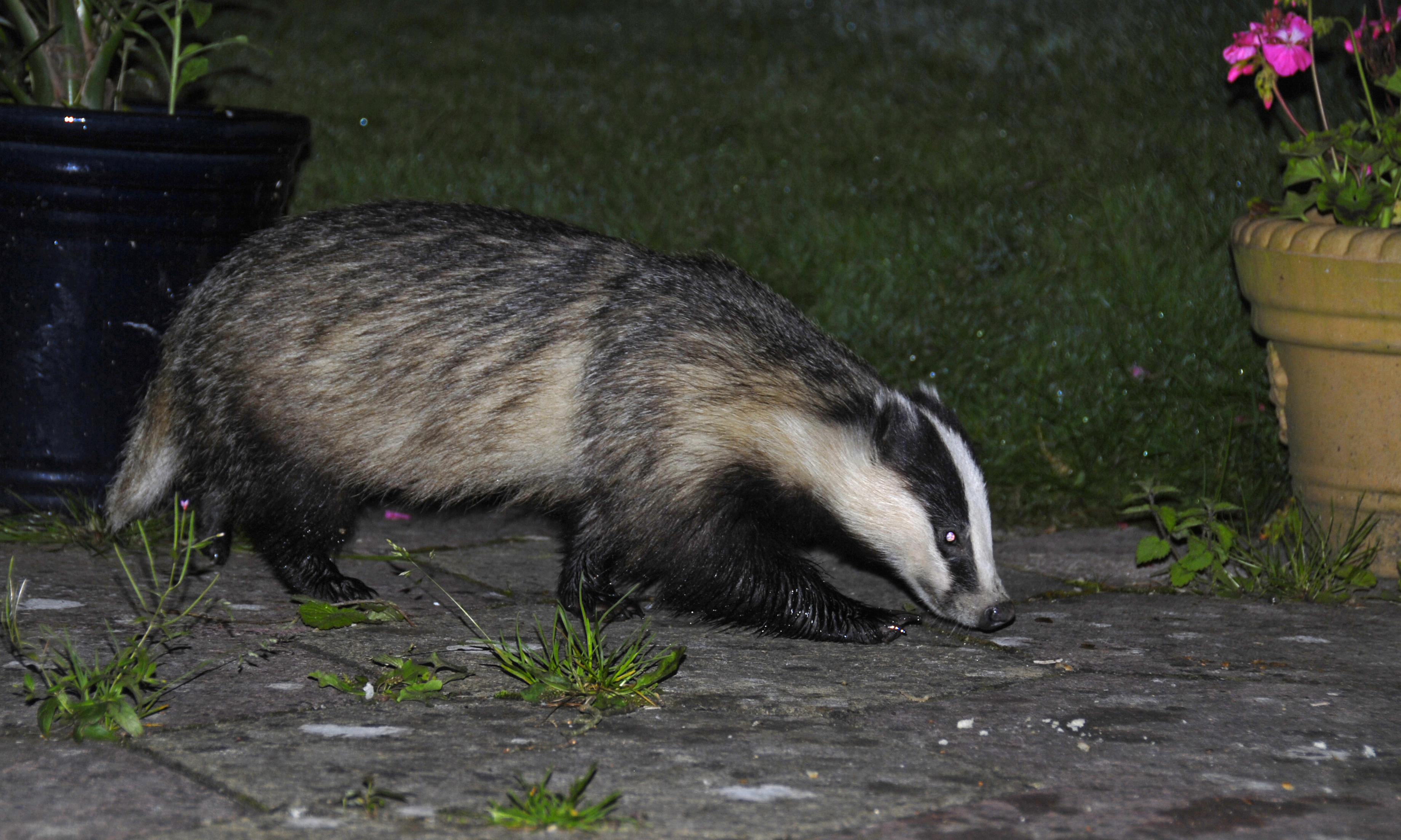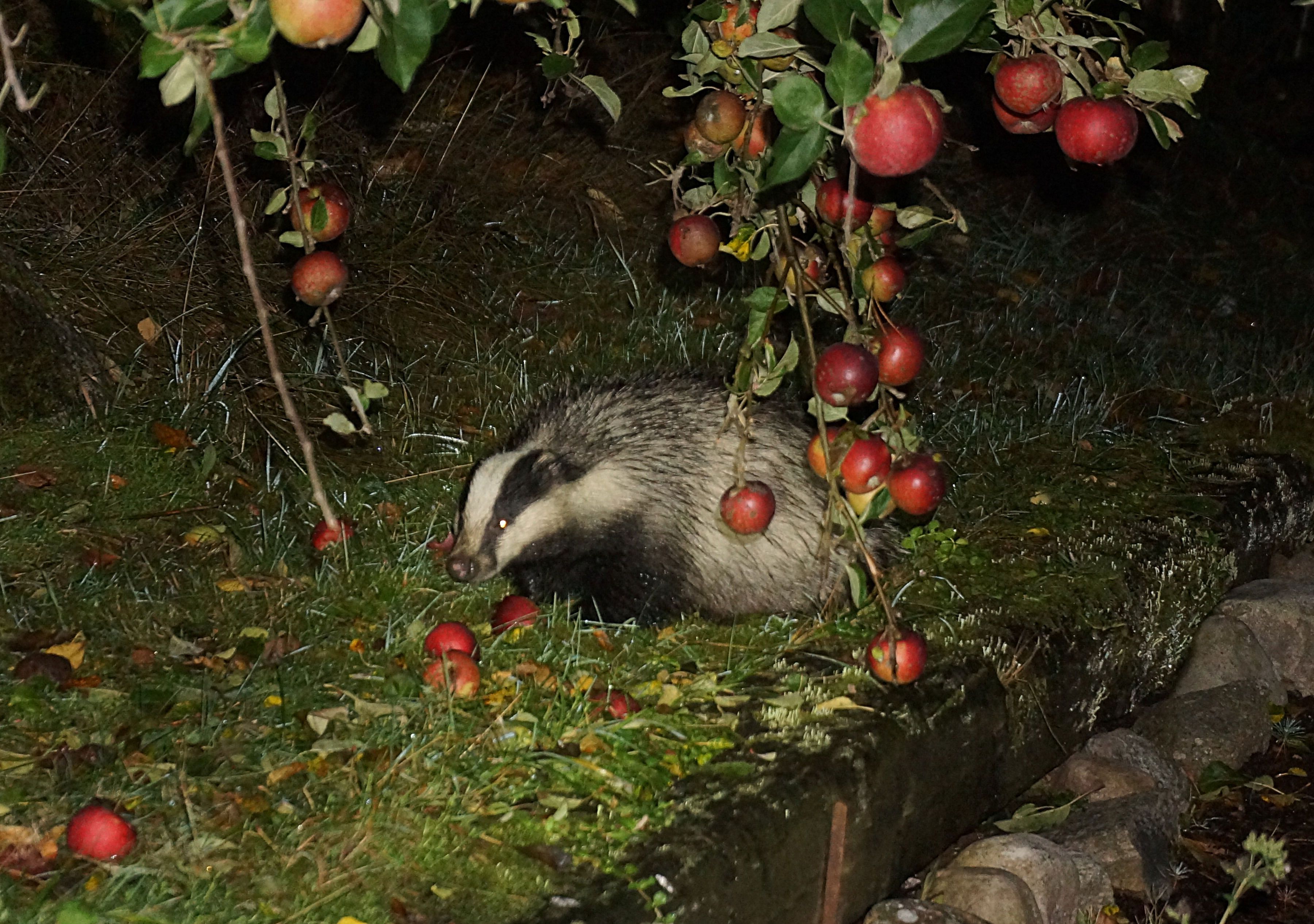 - Aan weerzijden van de kop zit loopt een zwarte streep van de snuit tot achter de oren