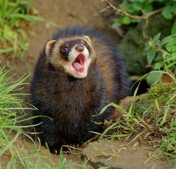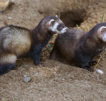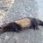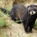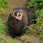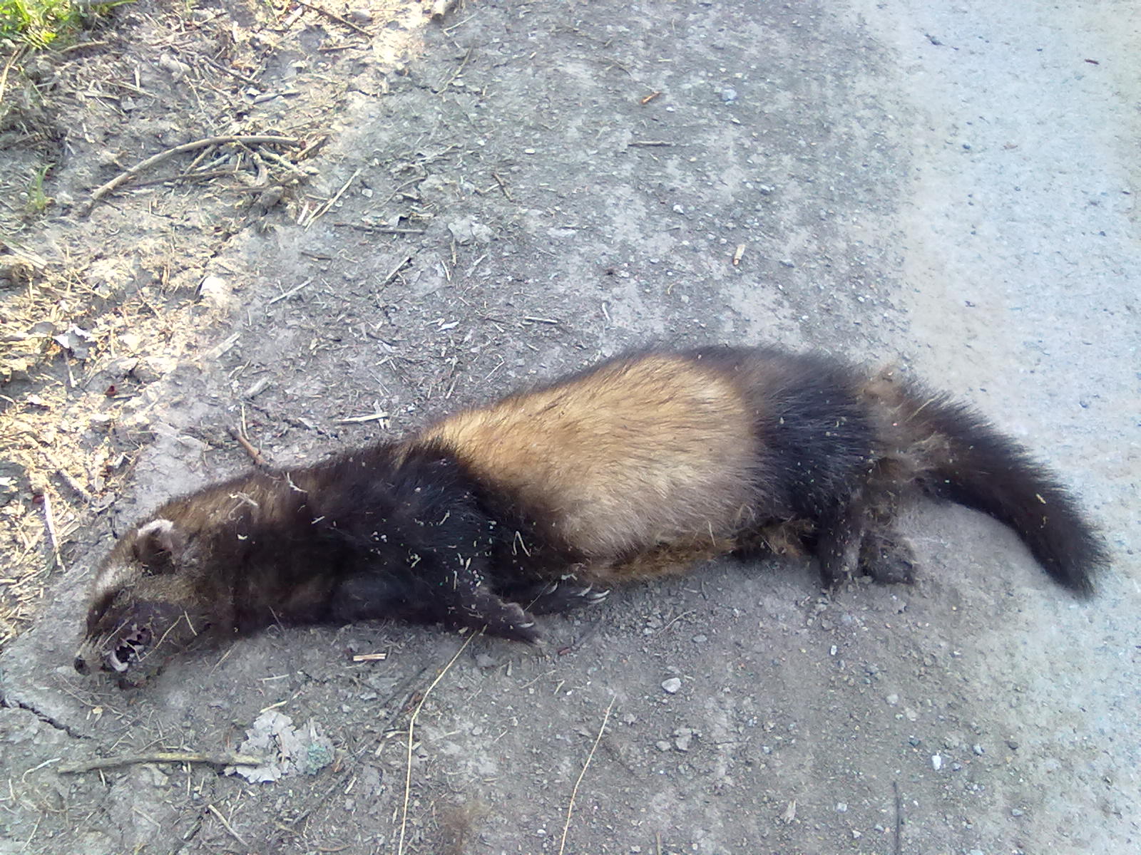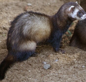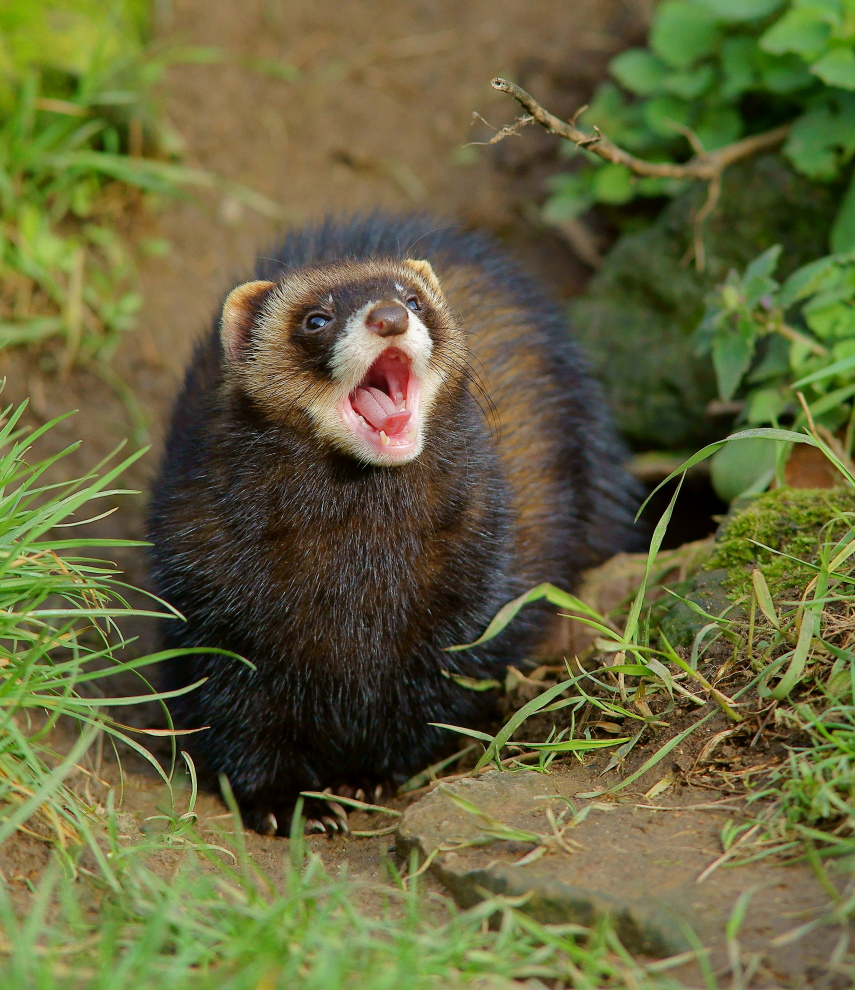 - De forse nek, keel, korte poten en staart zijn zwart-bruin