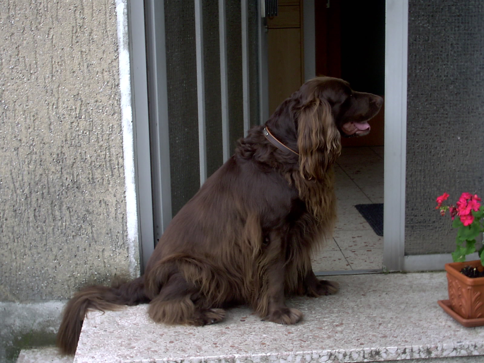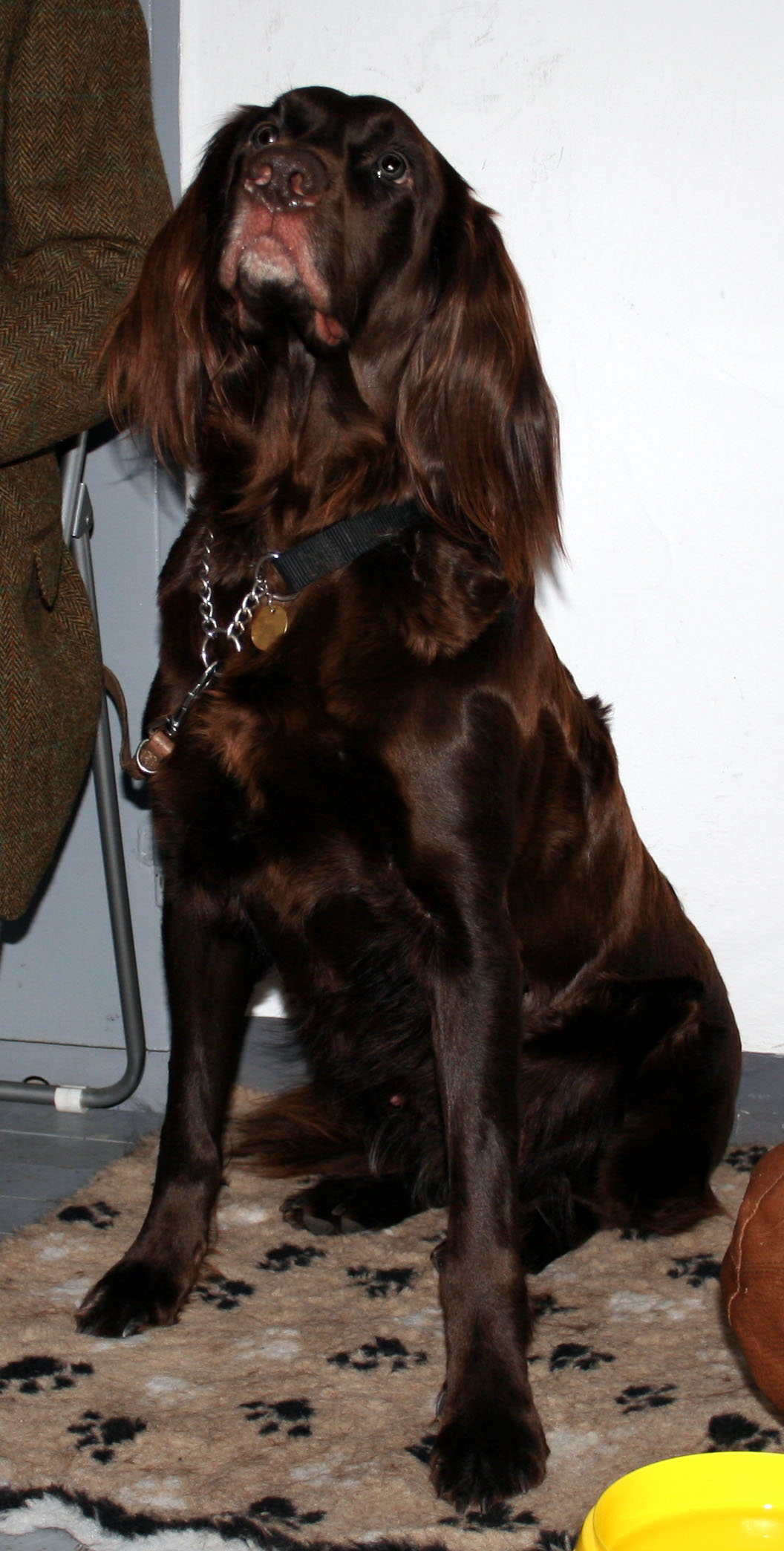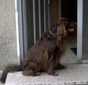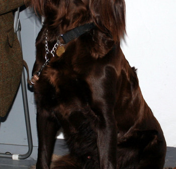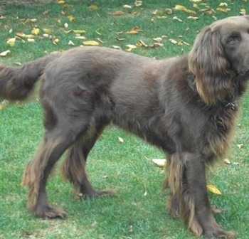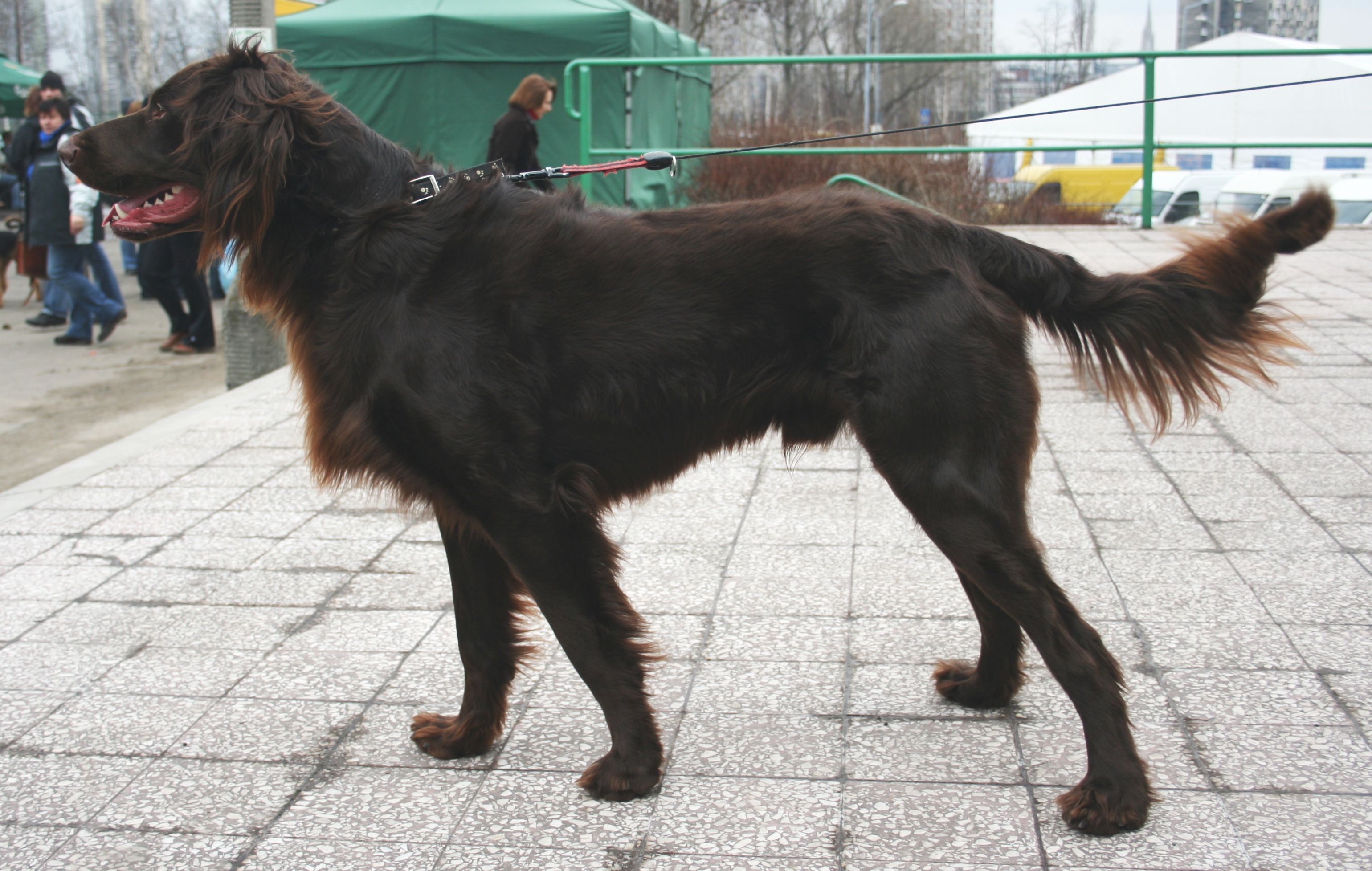- De vacht is 3 a 5 cm lang op de rug met bevedering. Het haar op het hoofd is korter