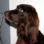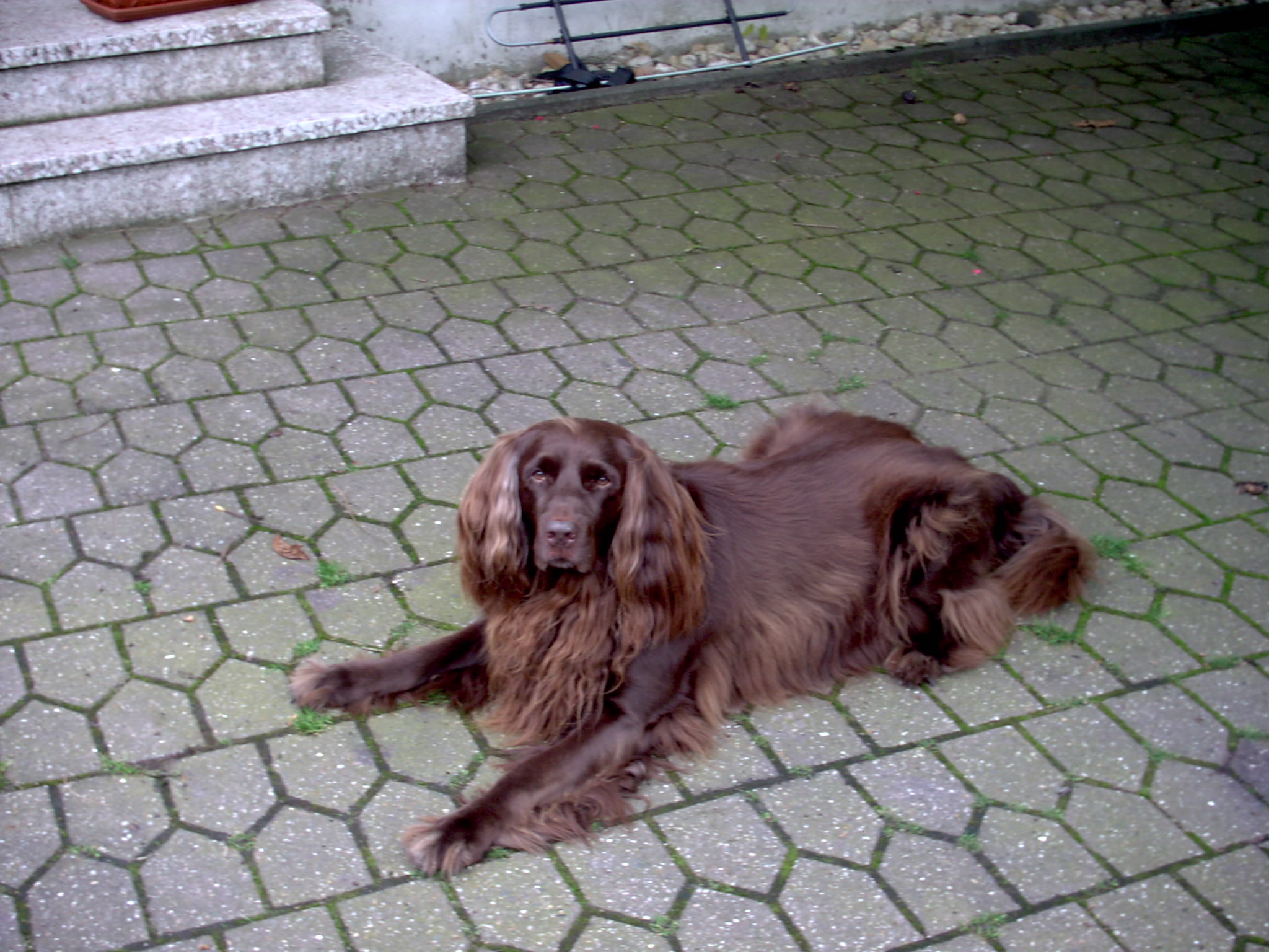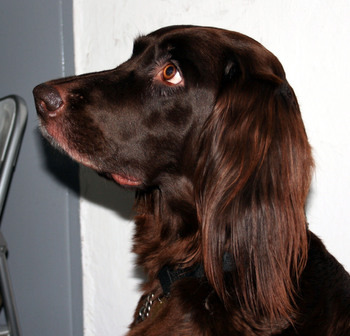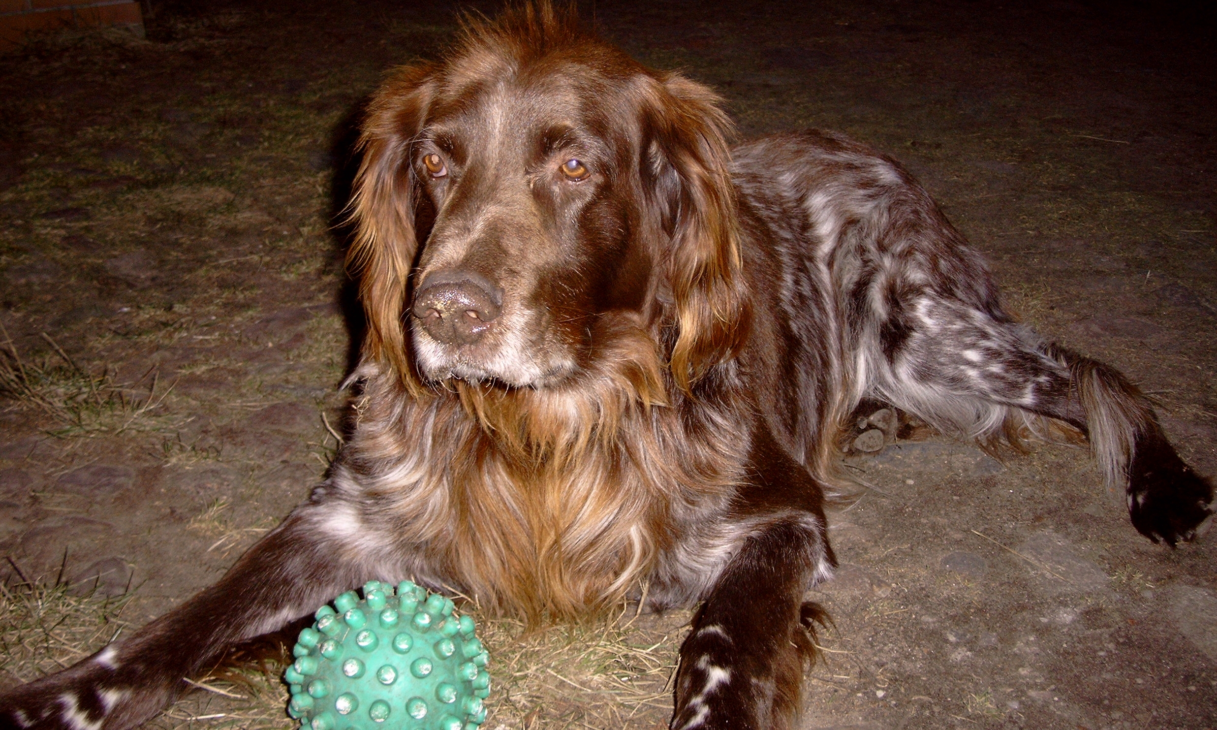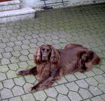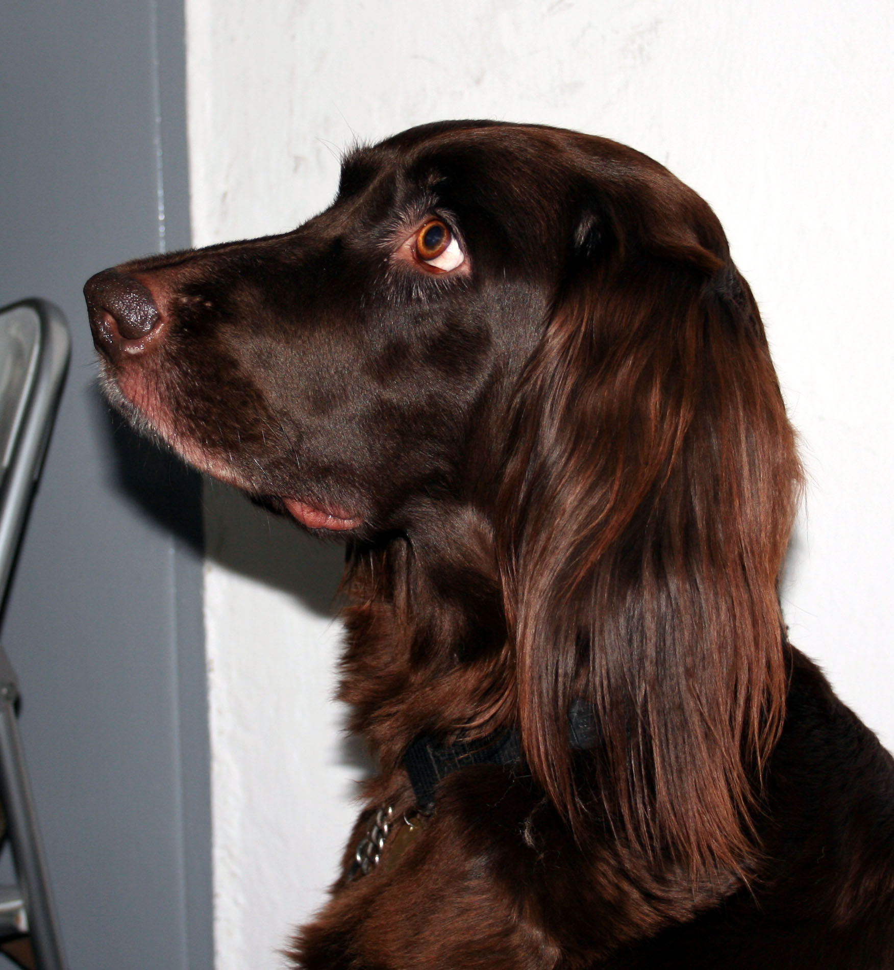- De vacht is 3 a 5 cm lang op de rug met bevedering. Het haar op het hoofd is korter