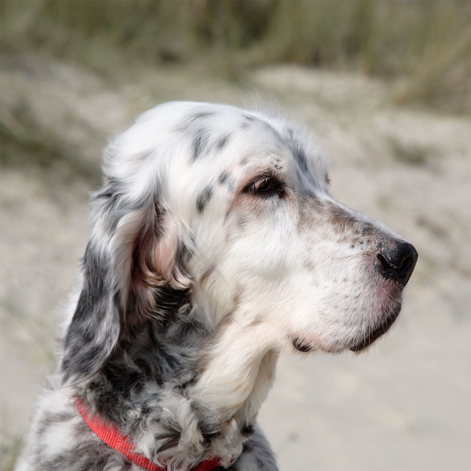- De lange Vacht is wit met zwart, oranje, of leverkleurige vlekken
