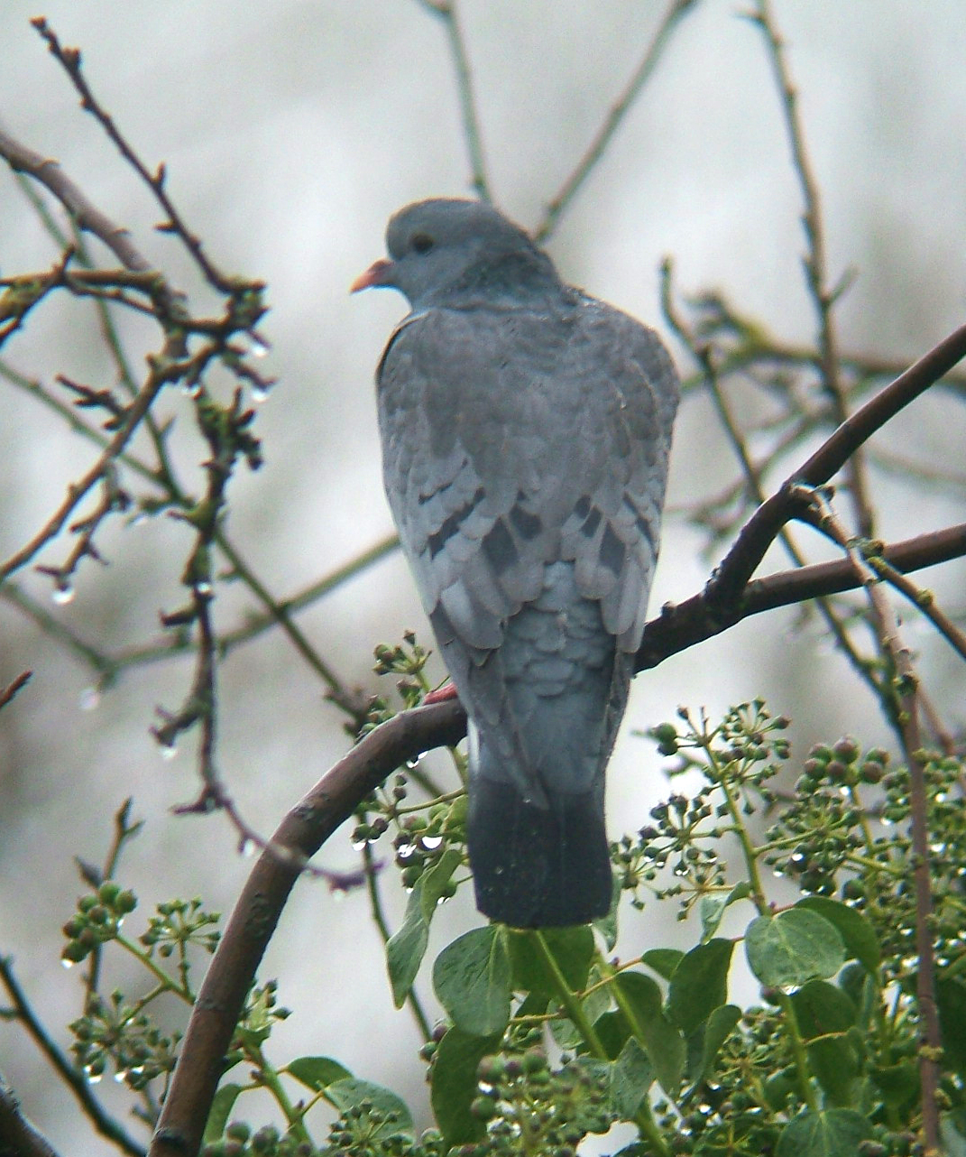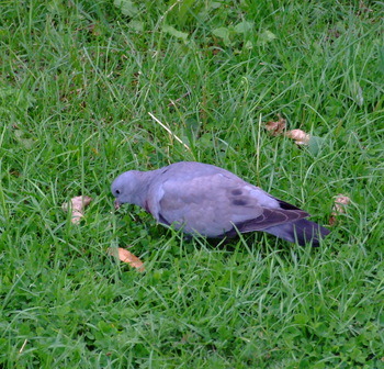 Blauwgrijs met donkerder veren dan de houtduif