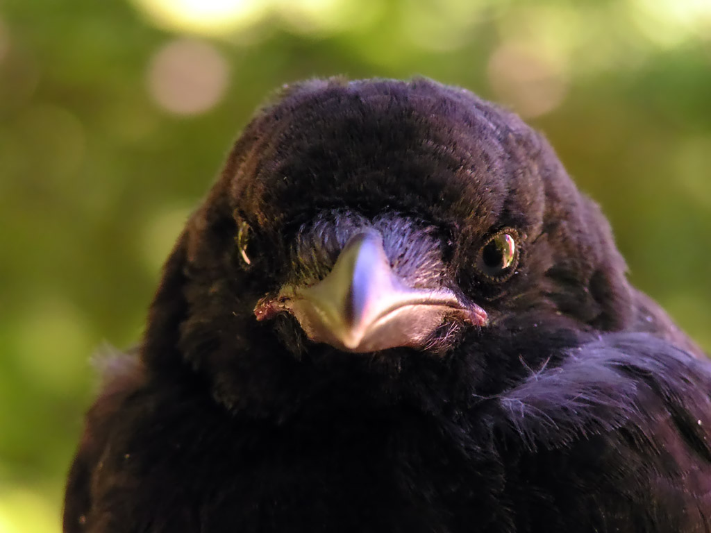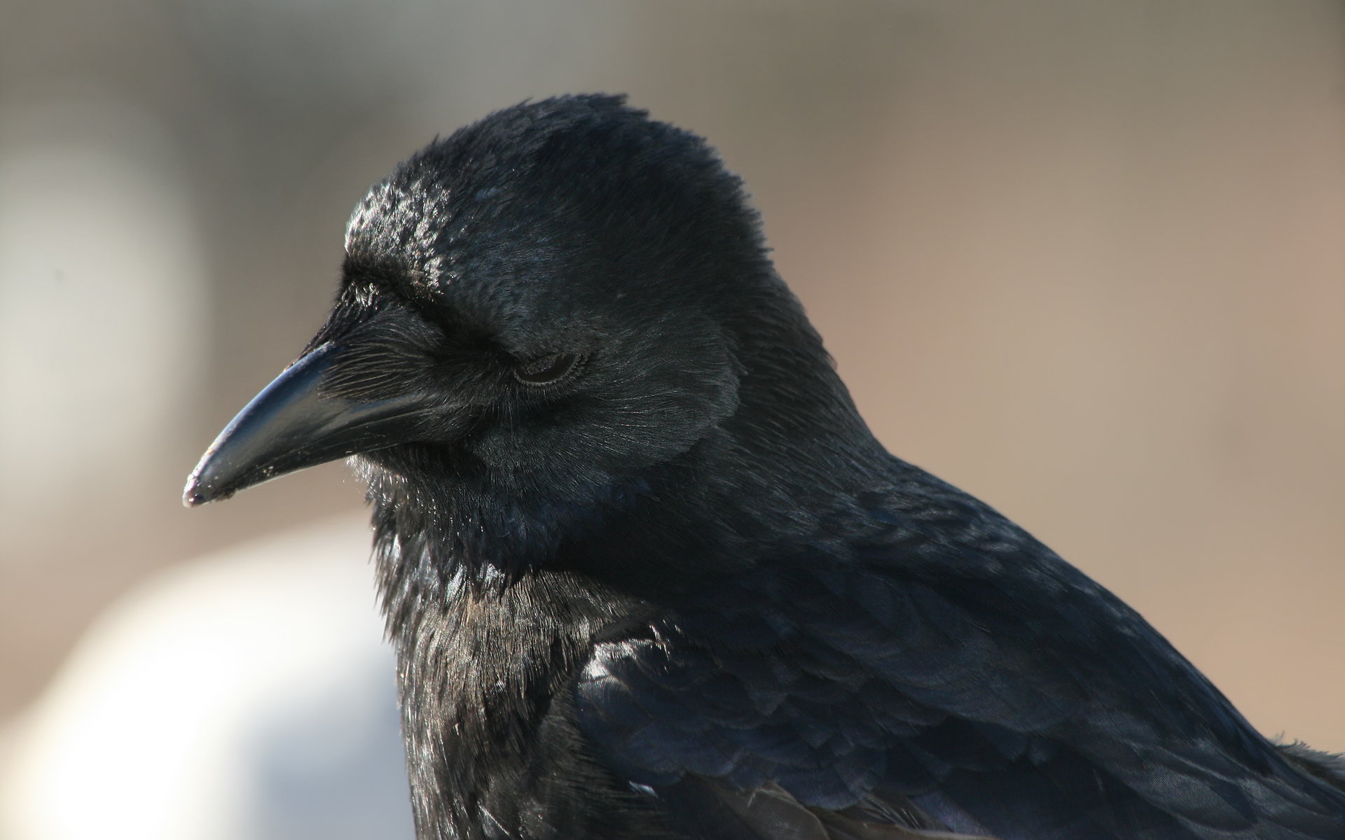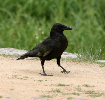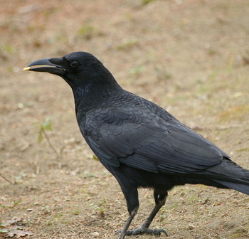 Bredere en stompere snavel dan de roek en geen kale mondhoeken