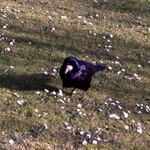 Zwart met een purperachtige metaalglans over de veren