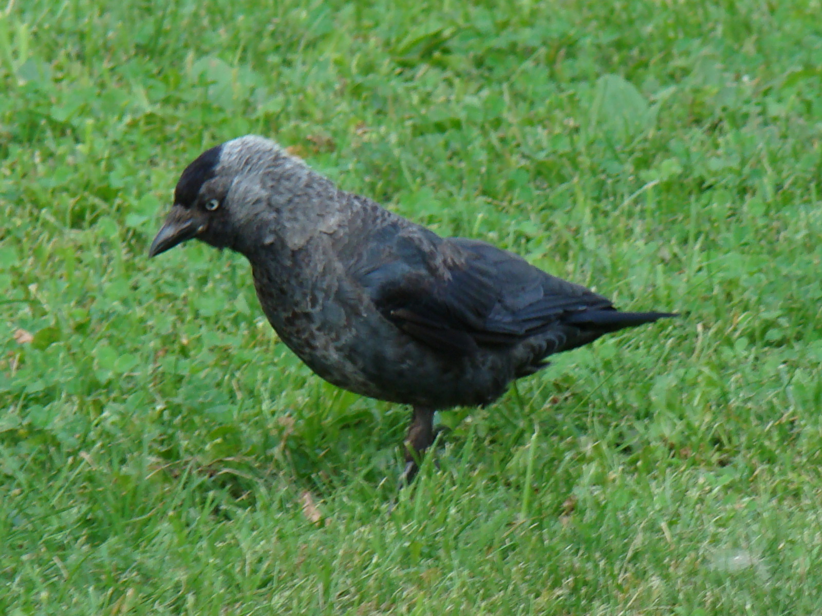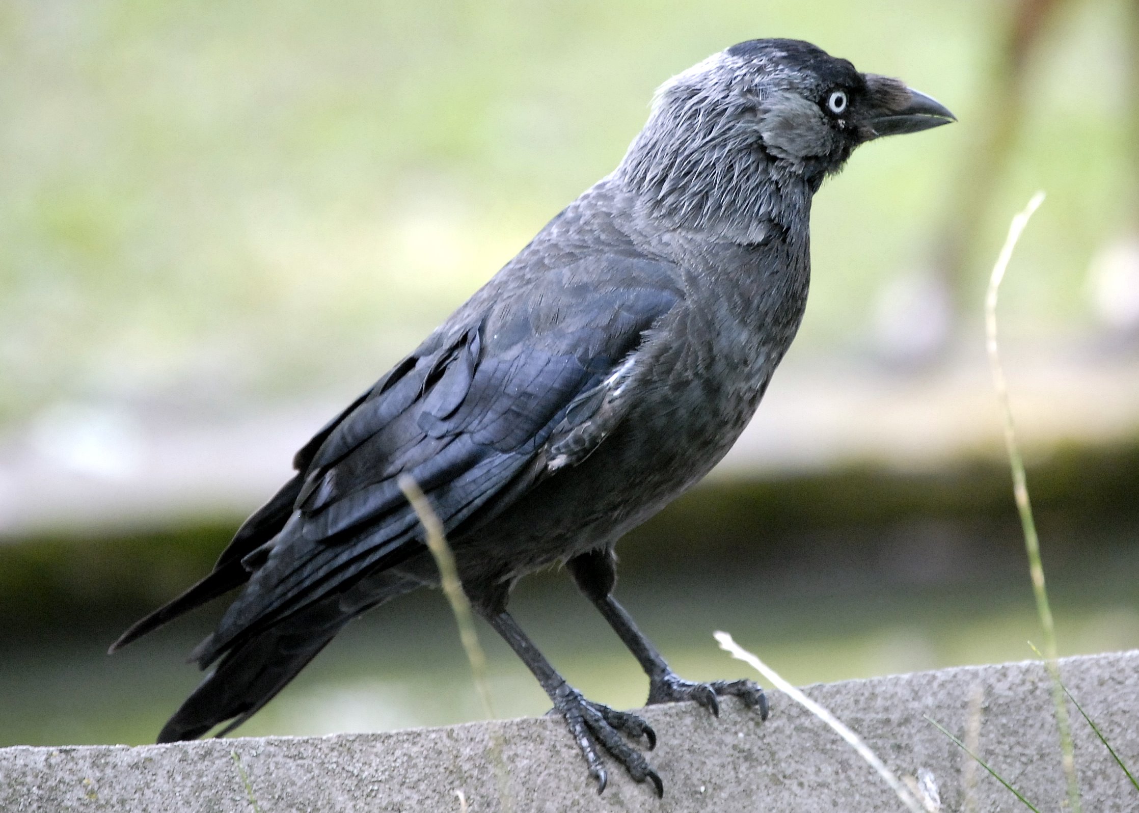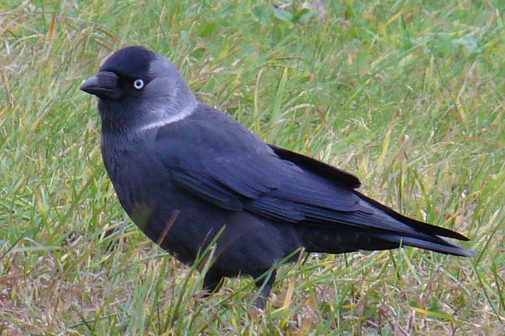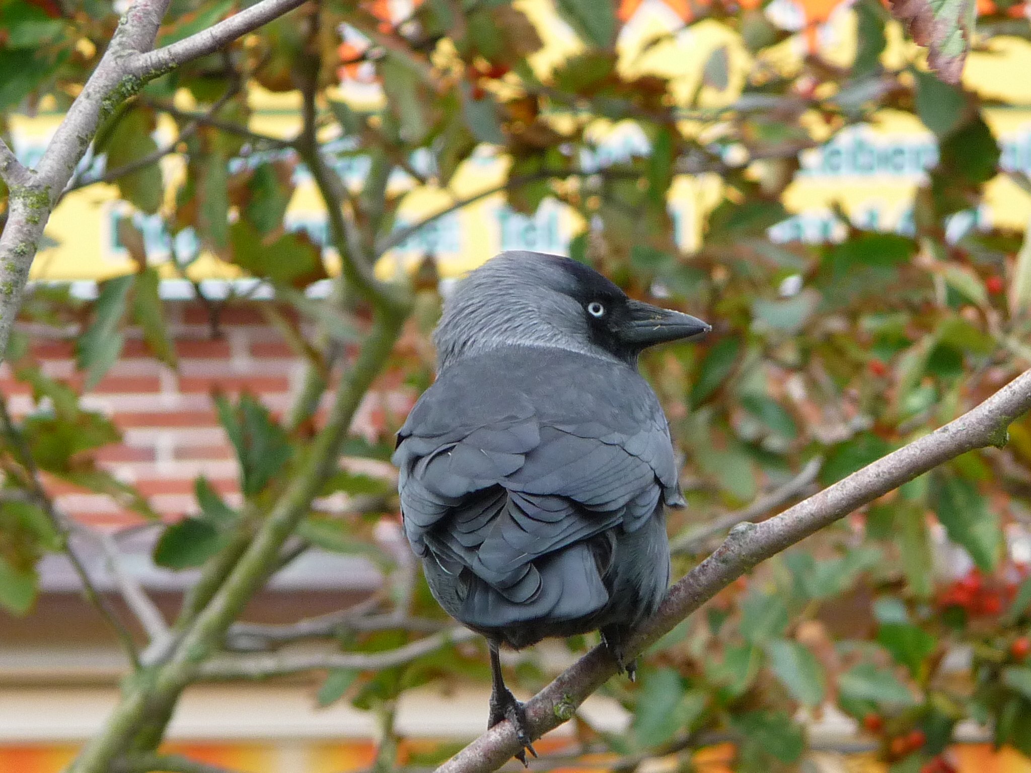 Zwart met een grijze vlek in de nek en bij het gehoor