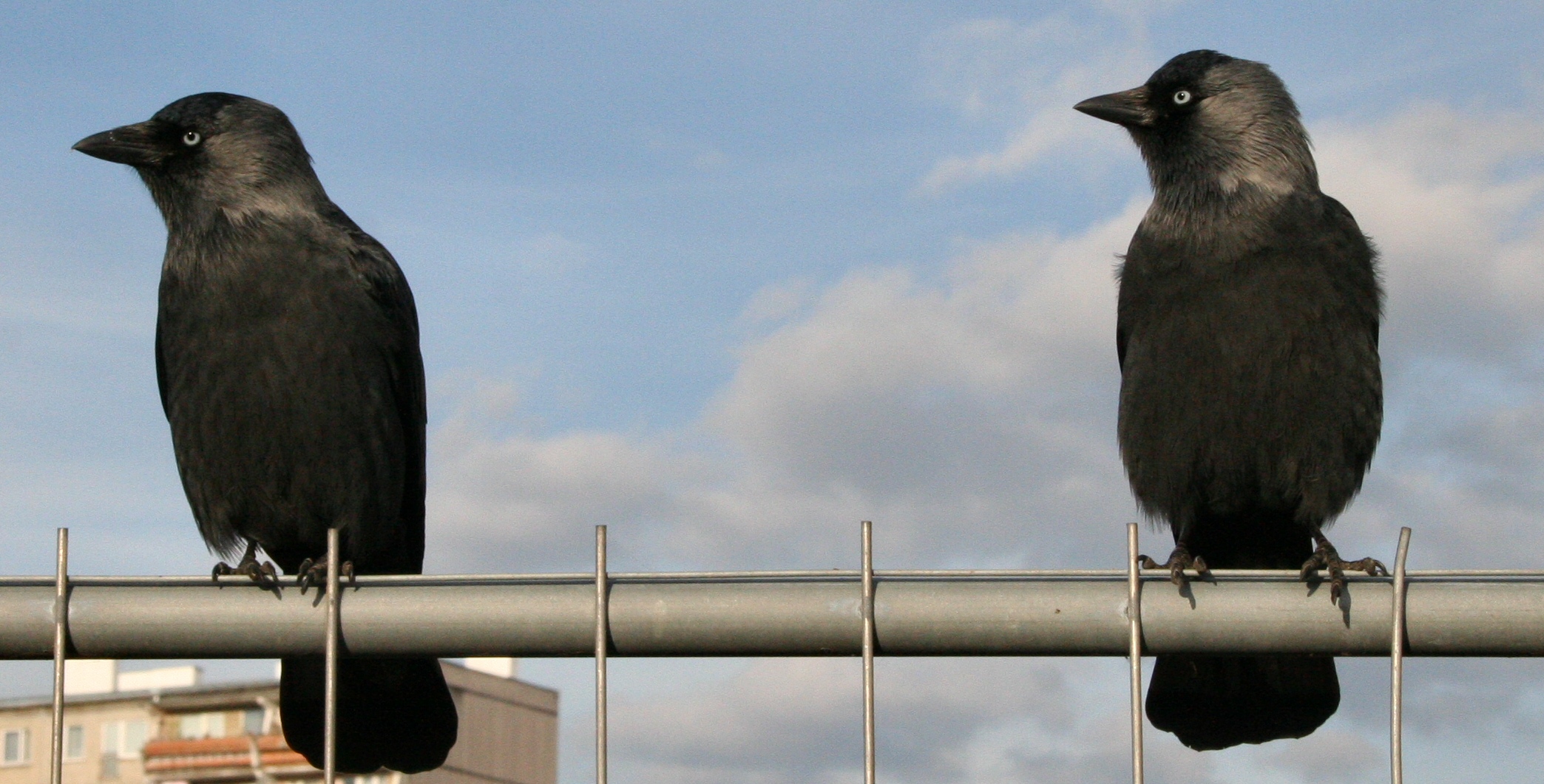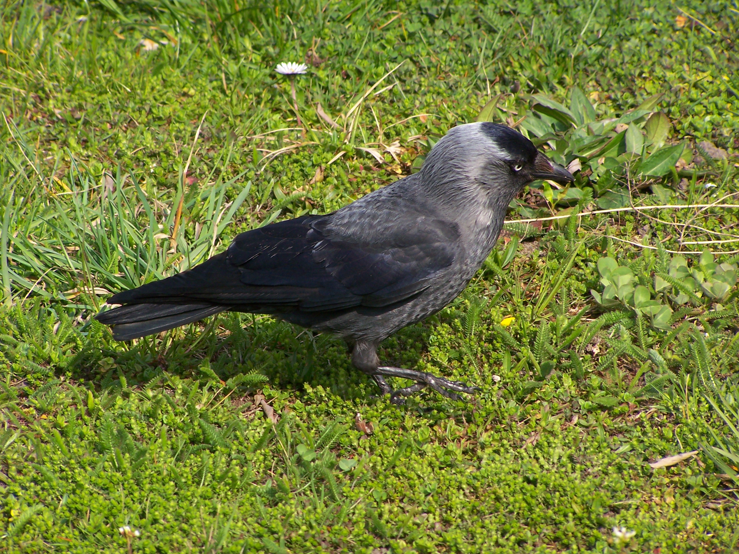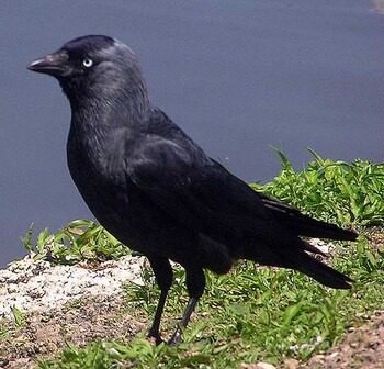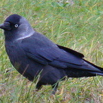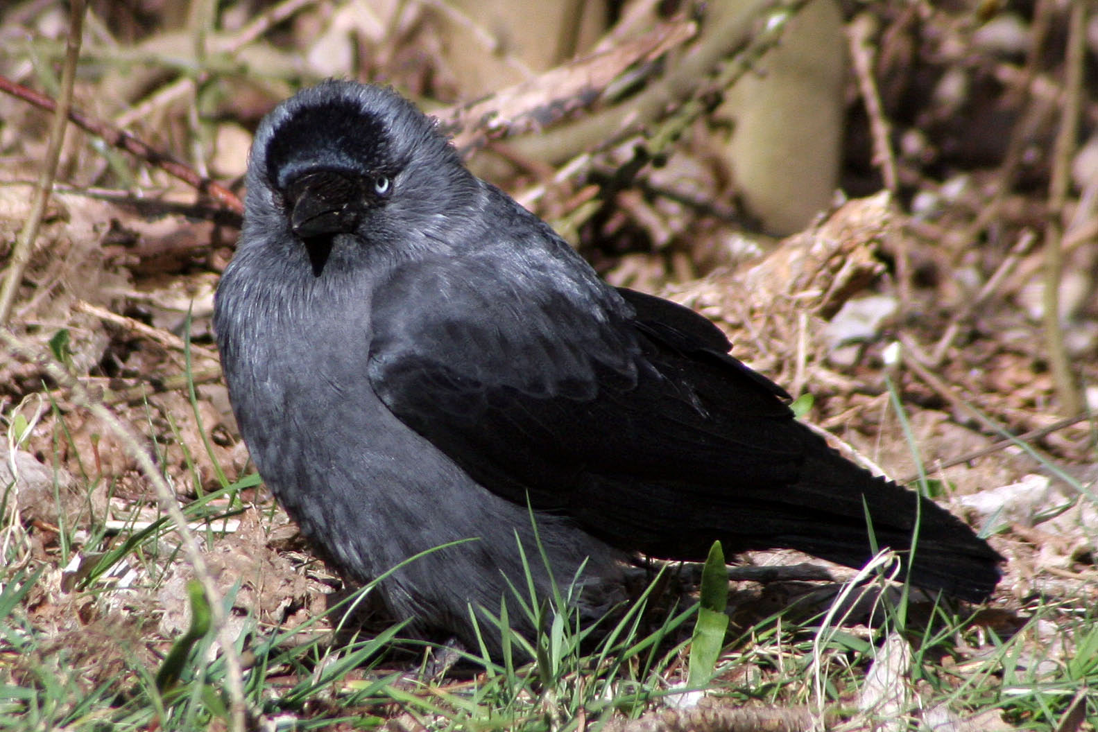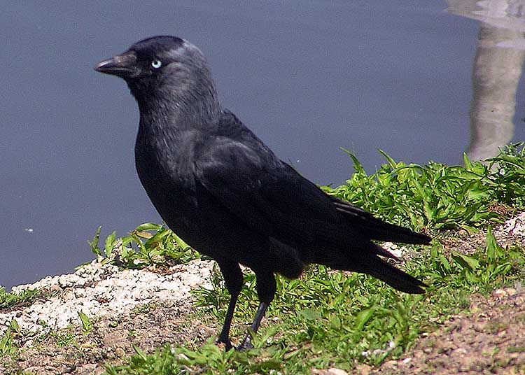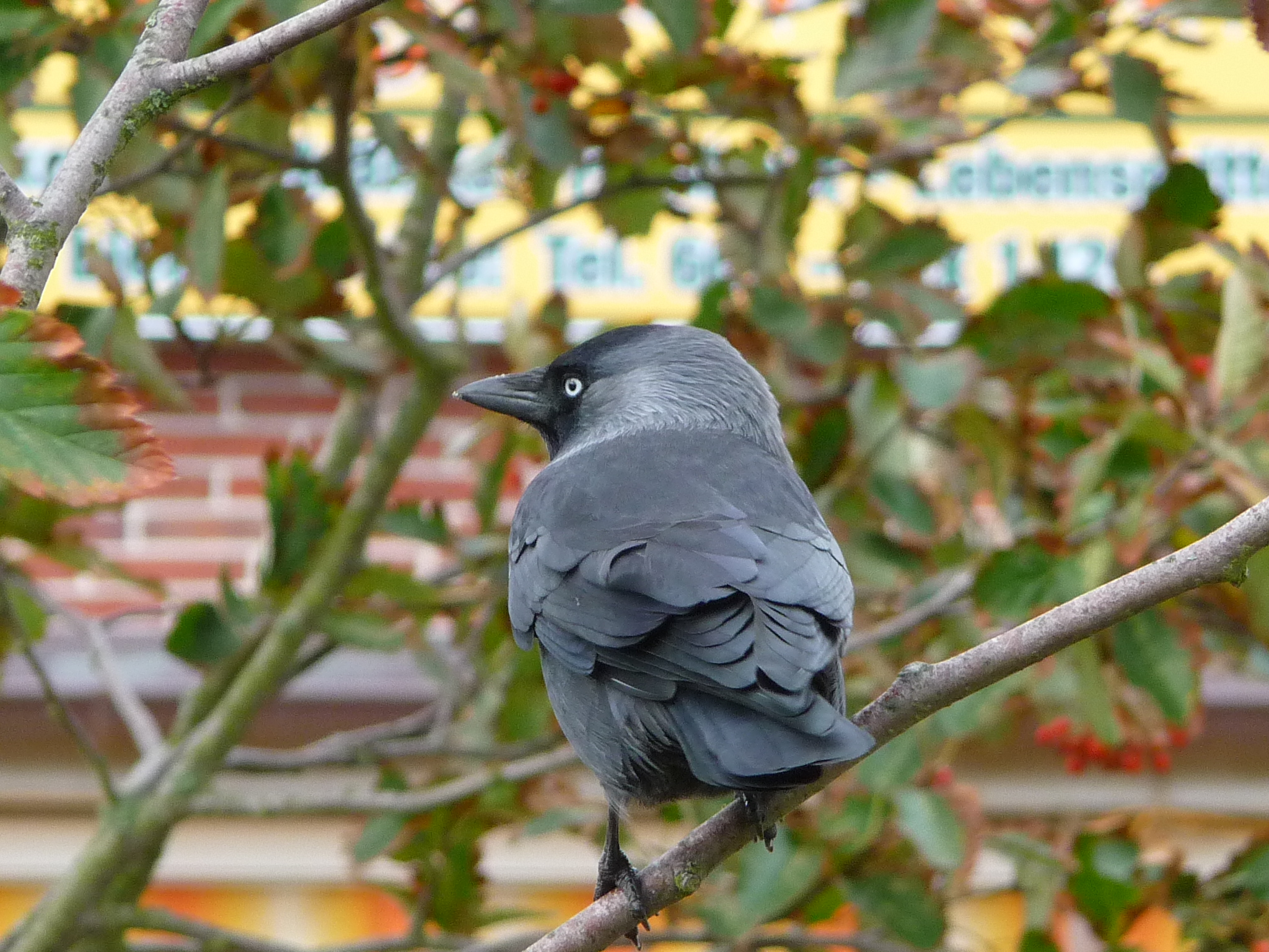 Zwart met een grijze vlek in de nek en bij het gehoor