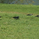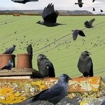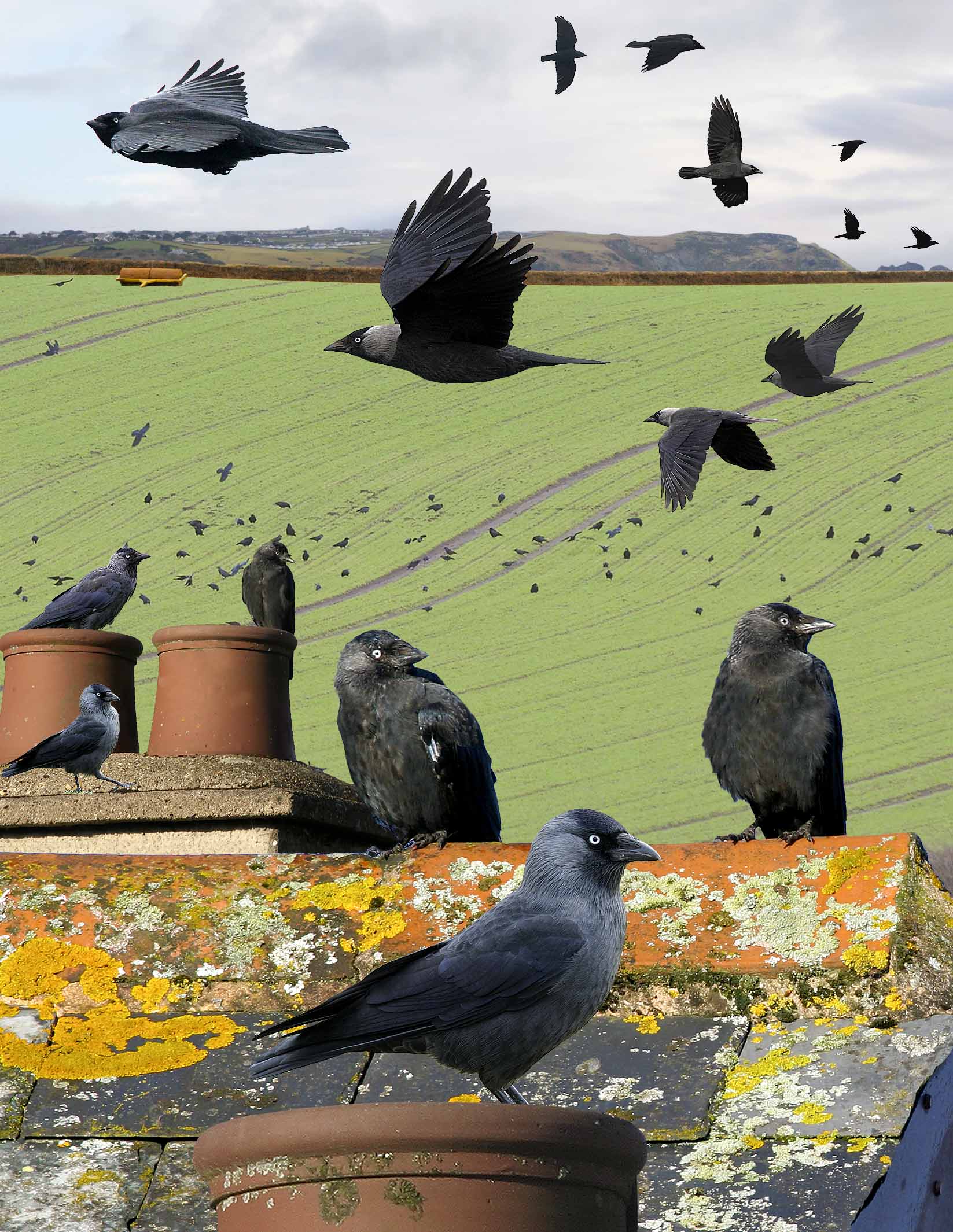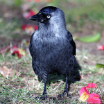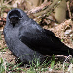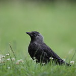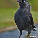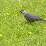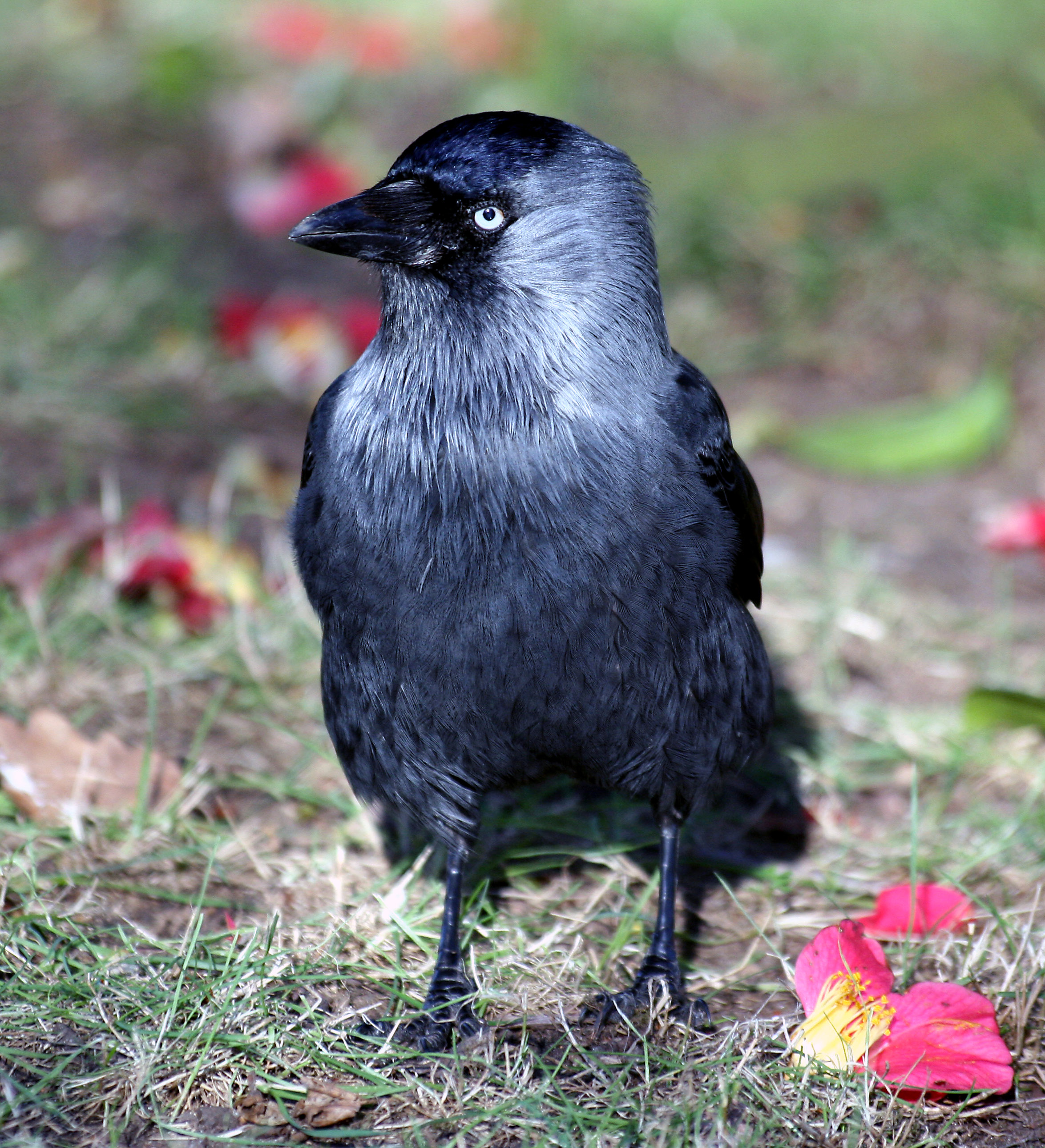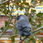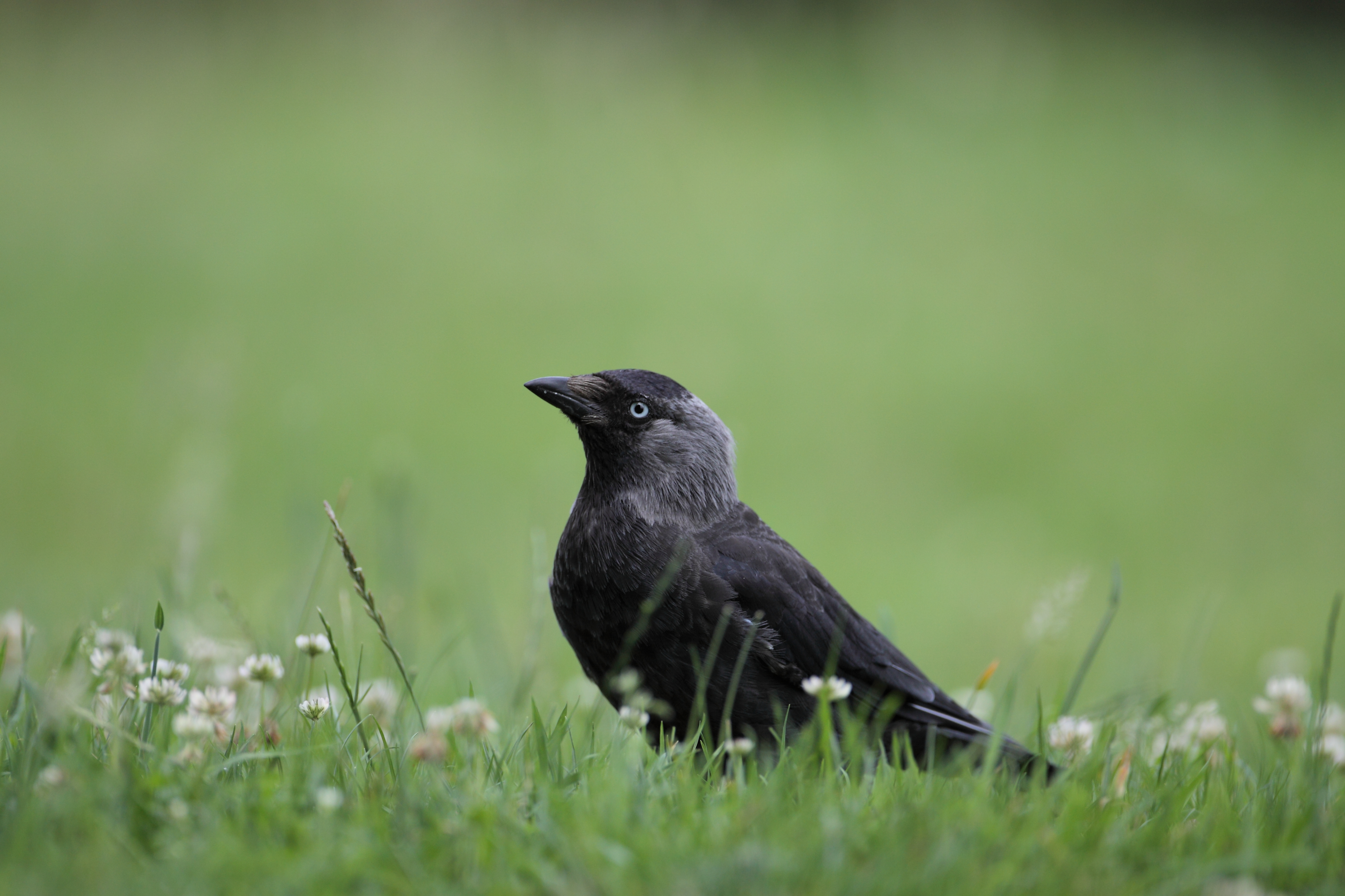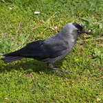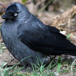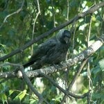 Zwart met een grijze vlek in de nek en bij het gehoor