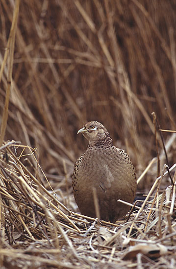 - Het verenkleed van de hen is eenvoudig bruin gevlekt