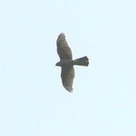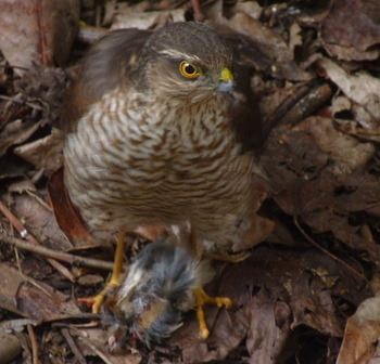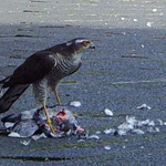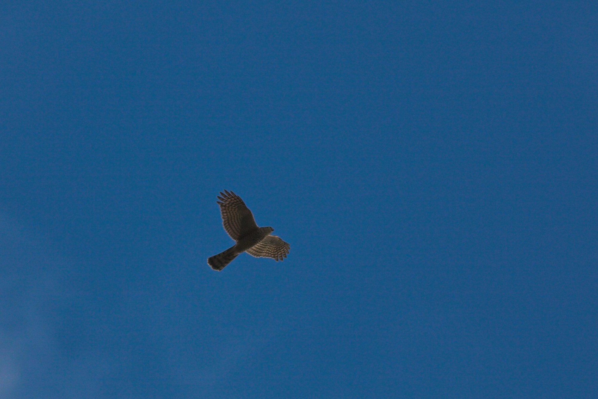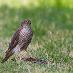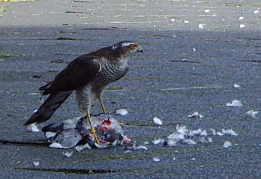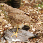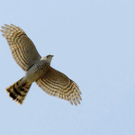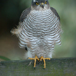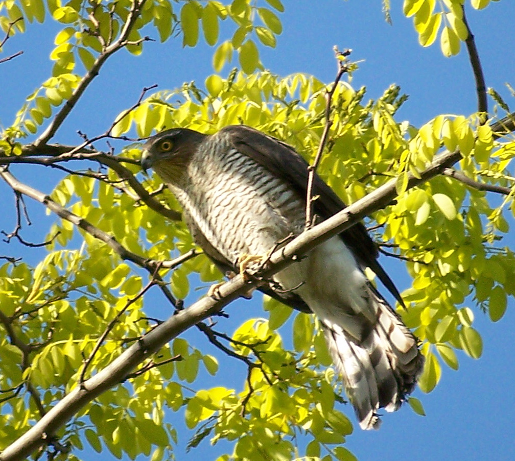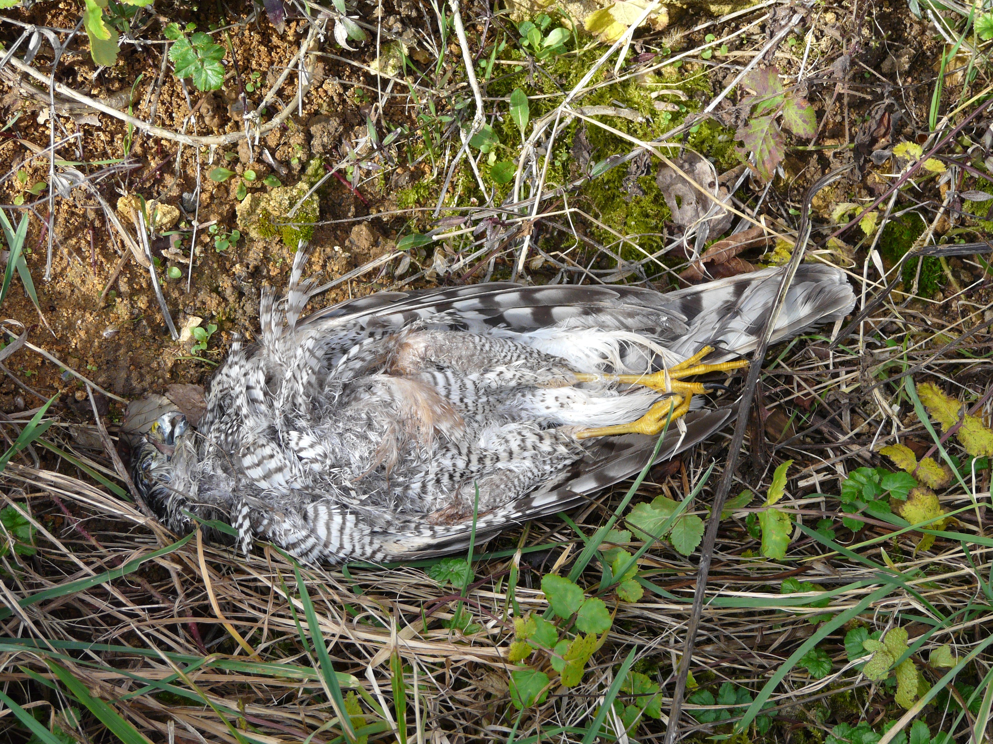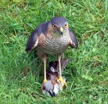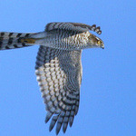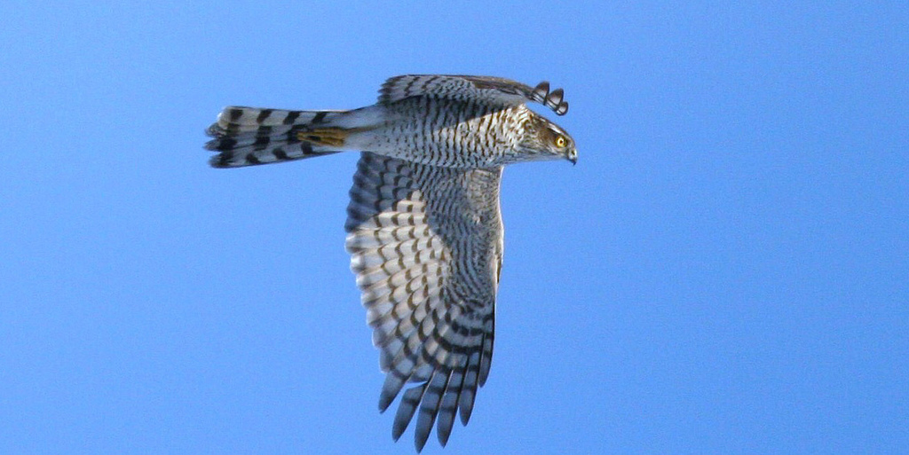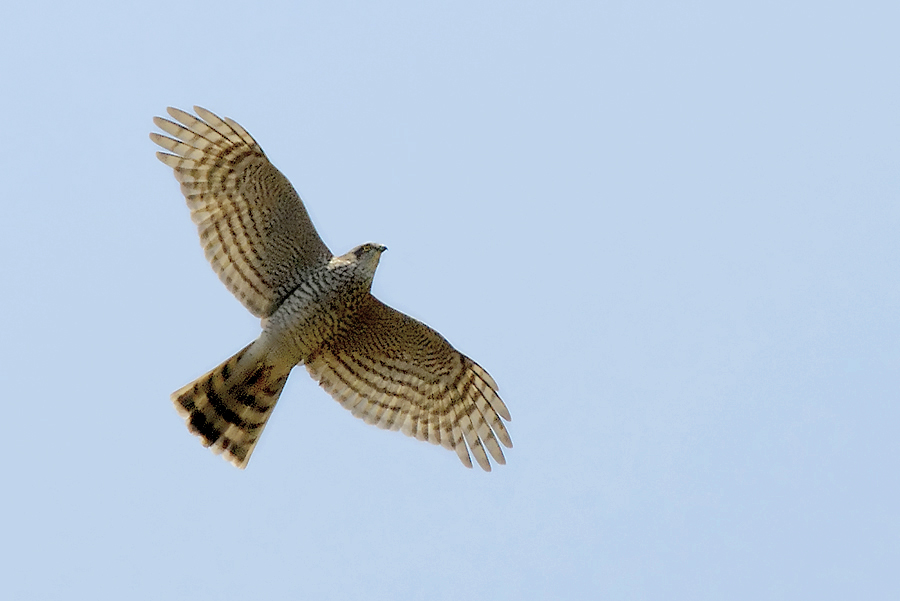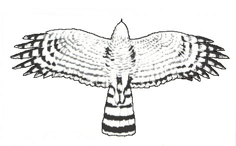 - Het vrouwtje heeft fijne dwarse donkerbruine banden over de lichte buik