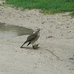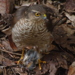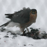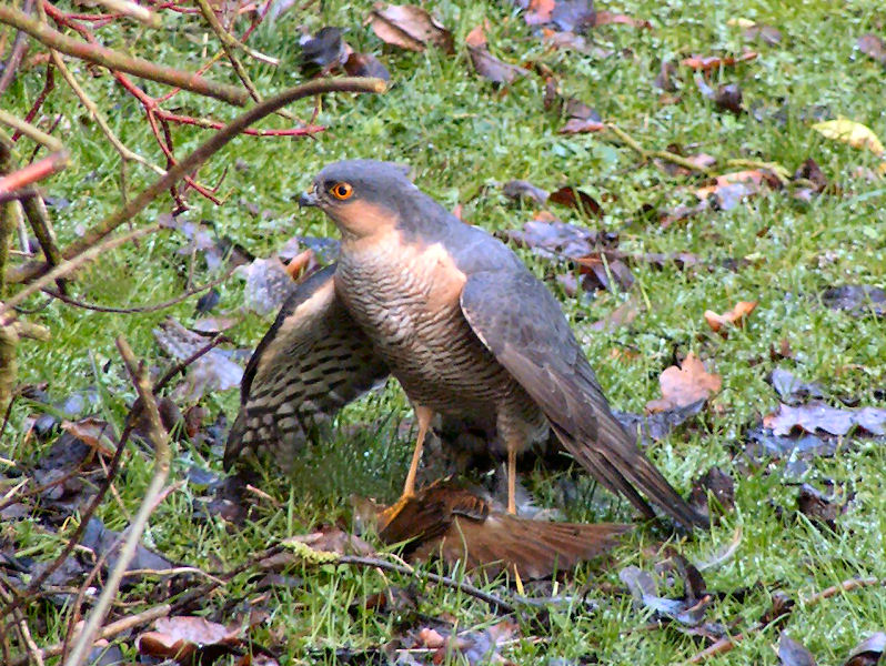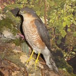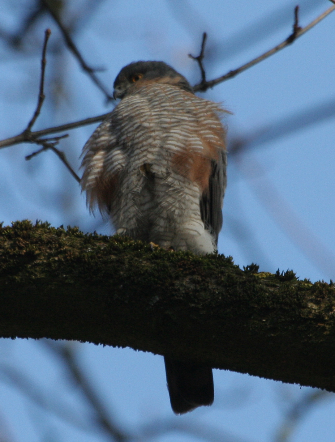 - Het mannetje heeft een roodbruine buik met fijne dwarse banden