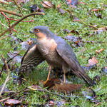 - Het mannetje heeft een leigrijze bovenkant en roze wangen