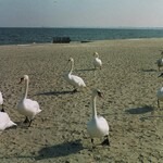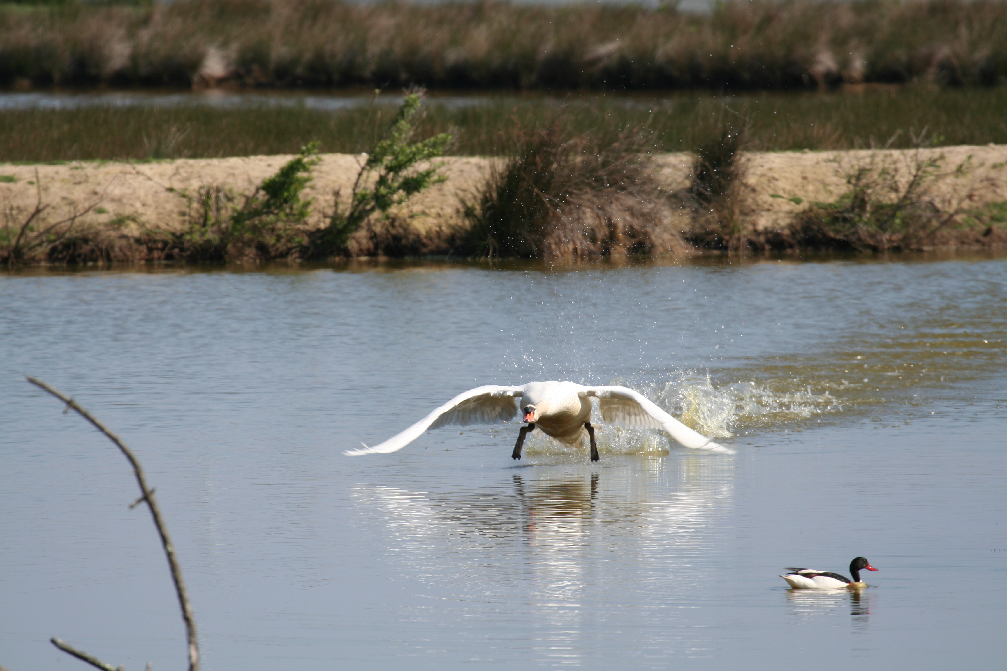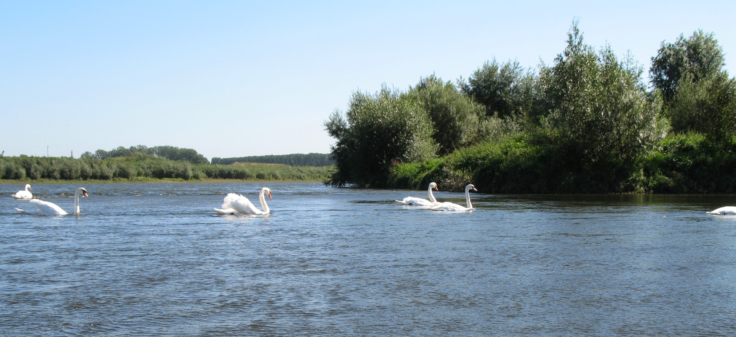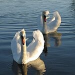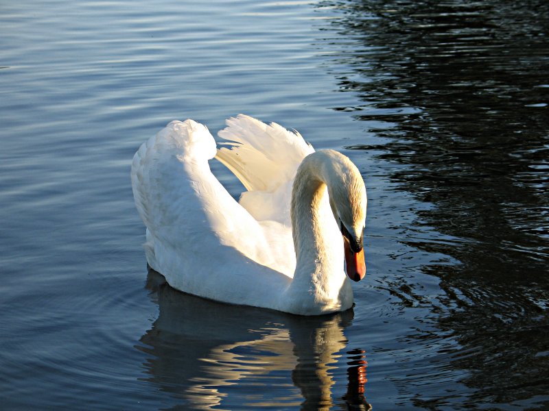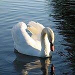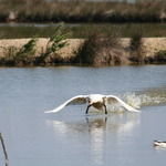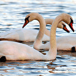 Grote witte vogel;Zwarte poten;Rode snavel;Zwemt met gebogen hals;