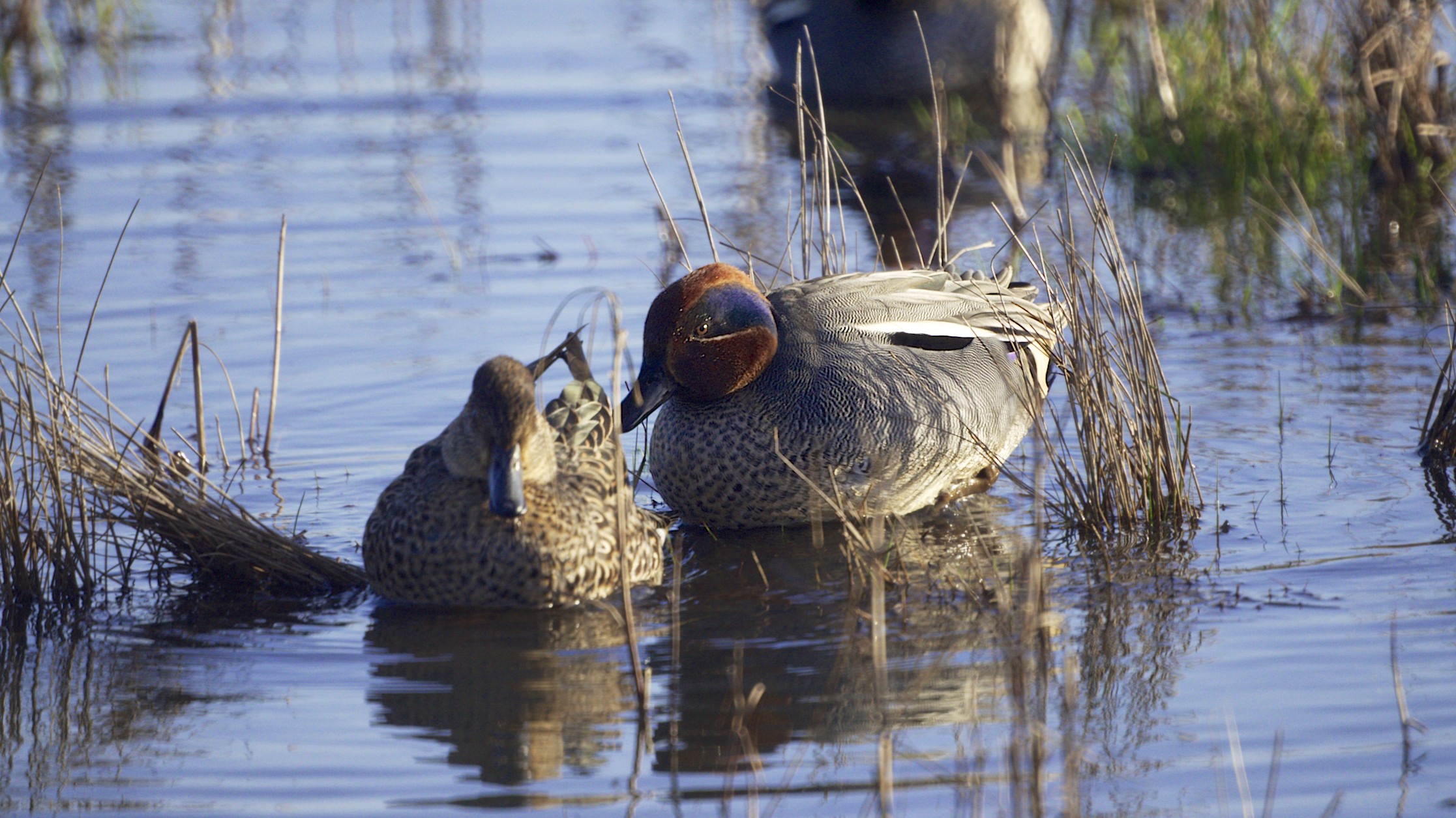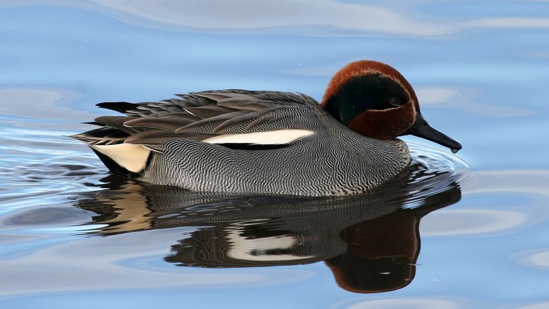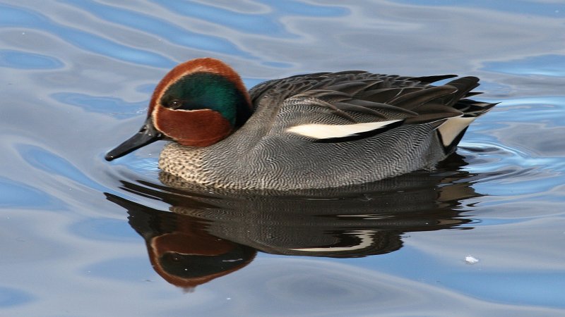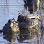 - Het winterkleed heeft een kastanjebruine kop met een grote groene oogband die tot in de hals doorloopt met en creme randje