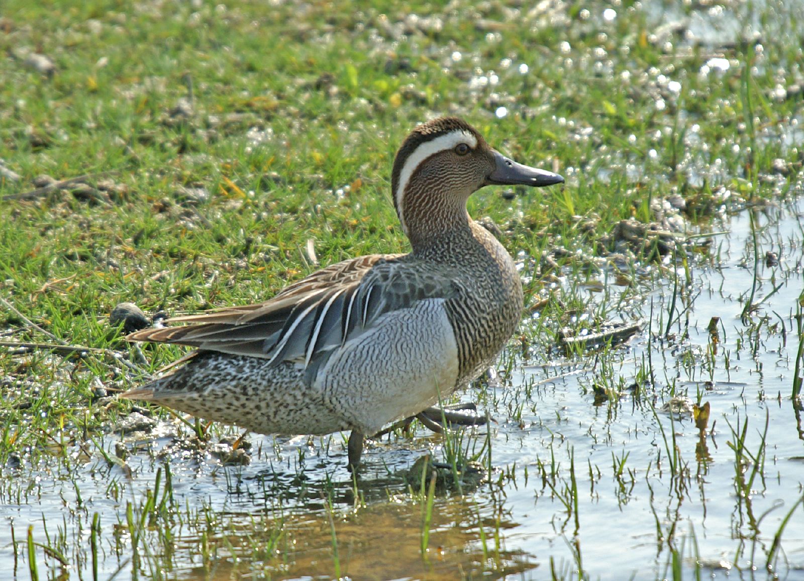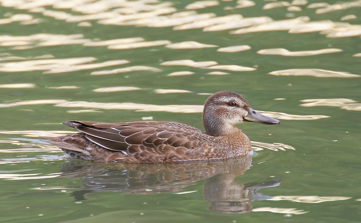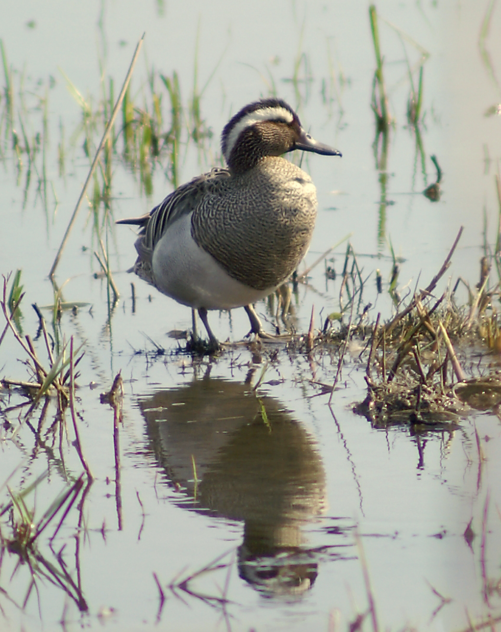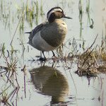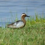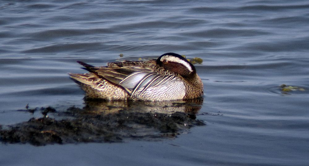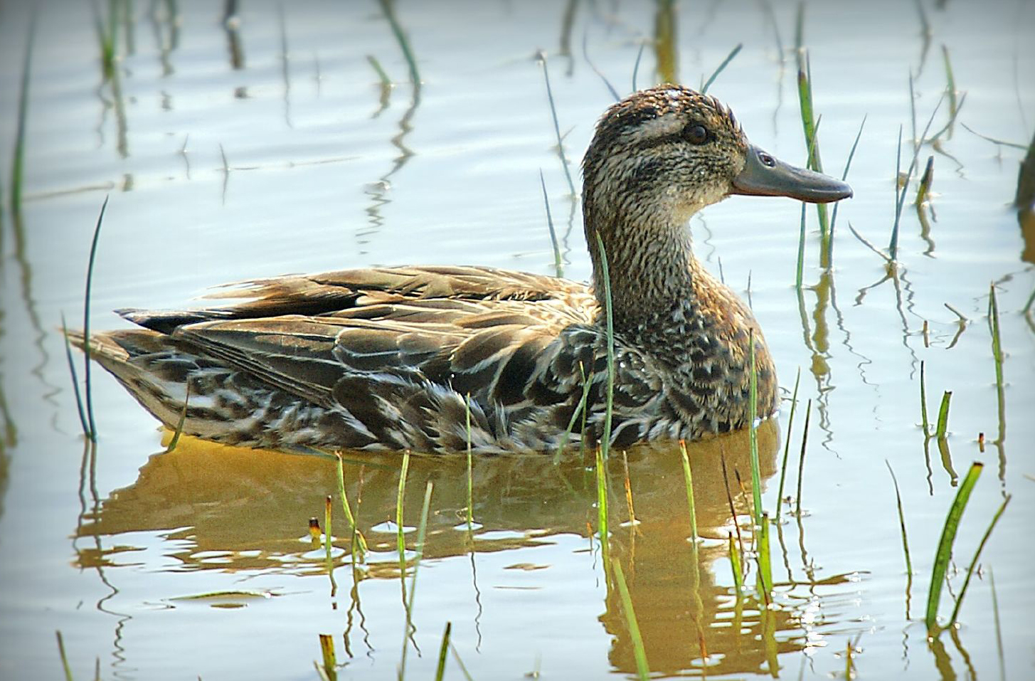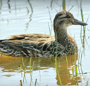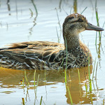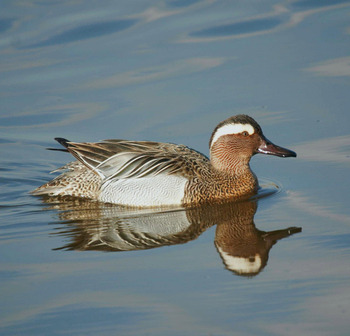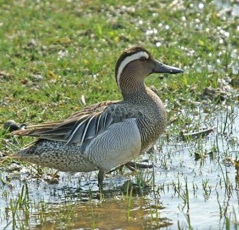 - Het eendje heeft een blauwgrijze voorvleugel en een groene vleugelspiegel