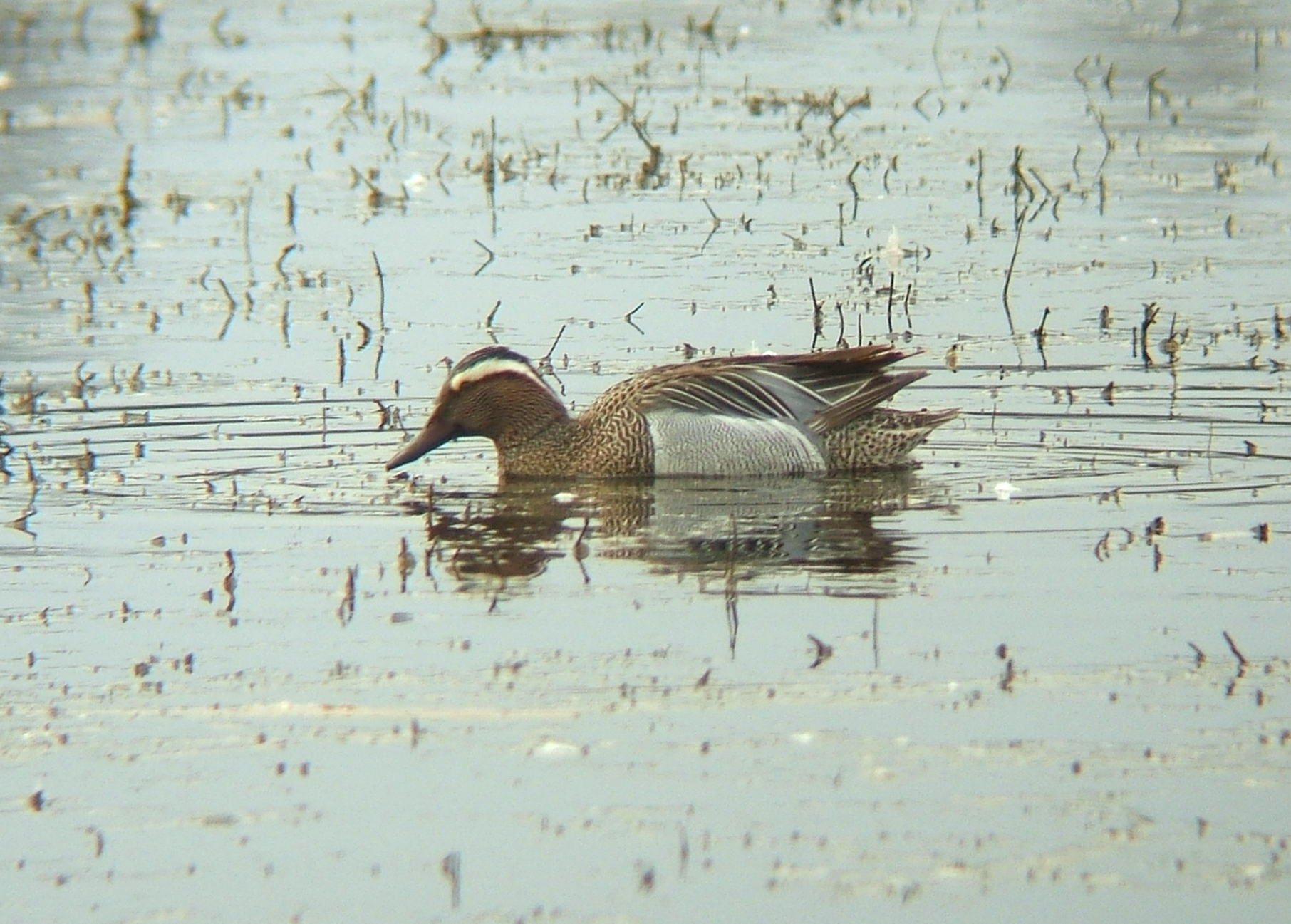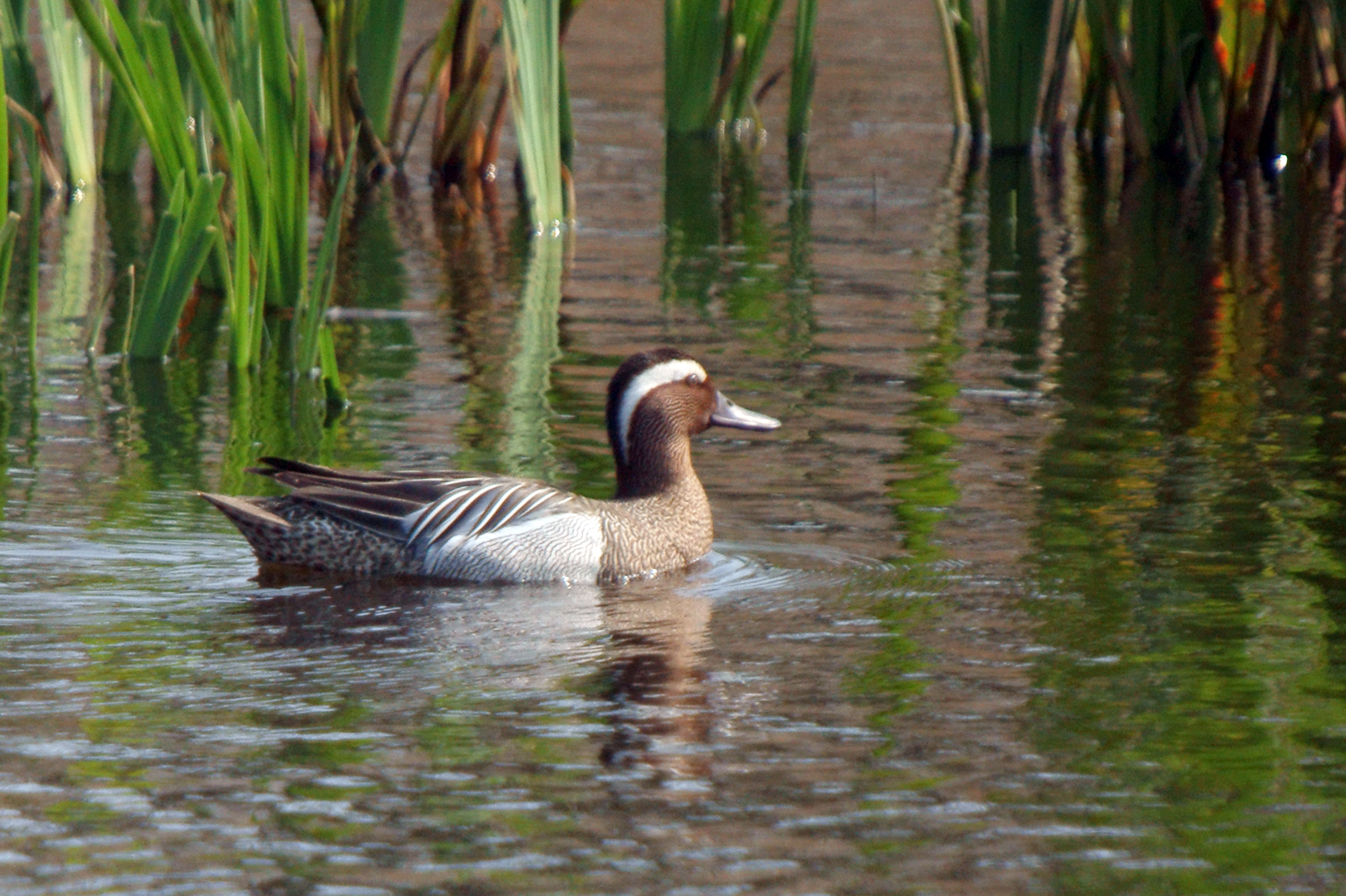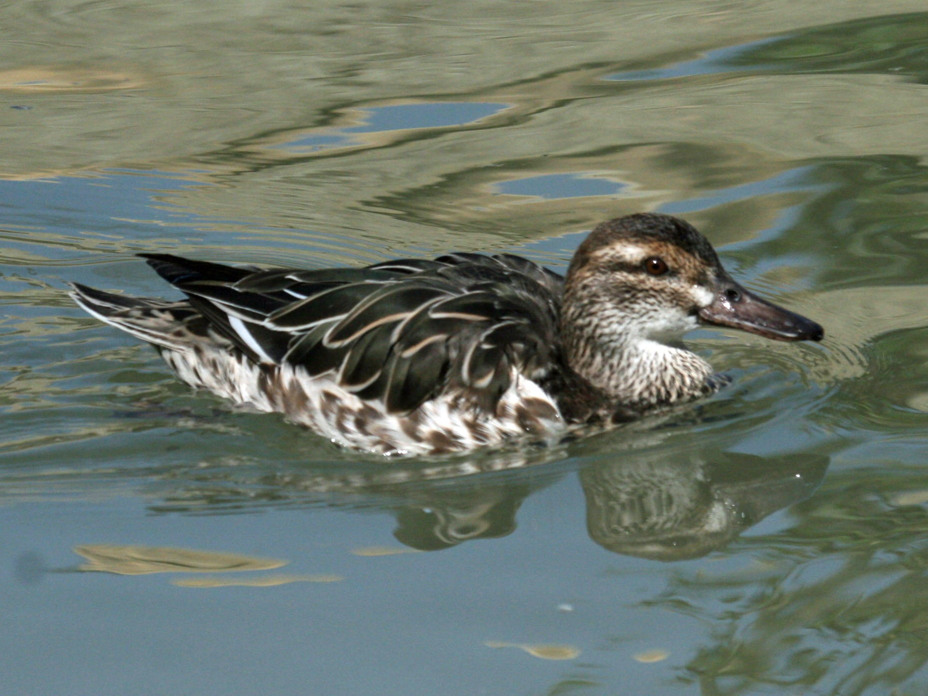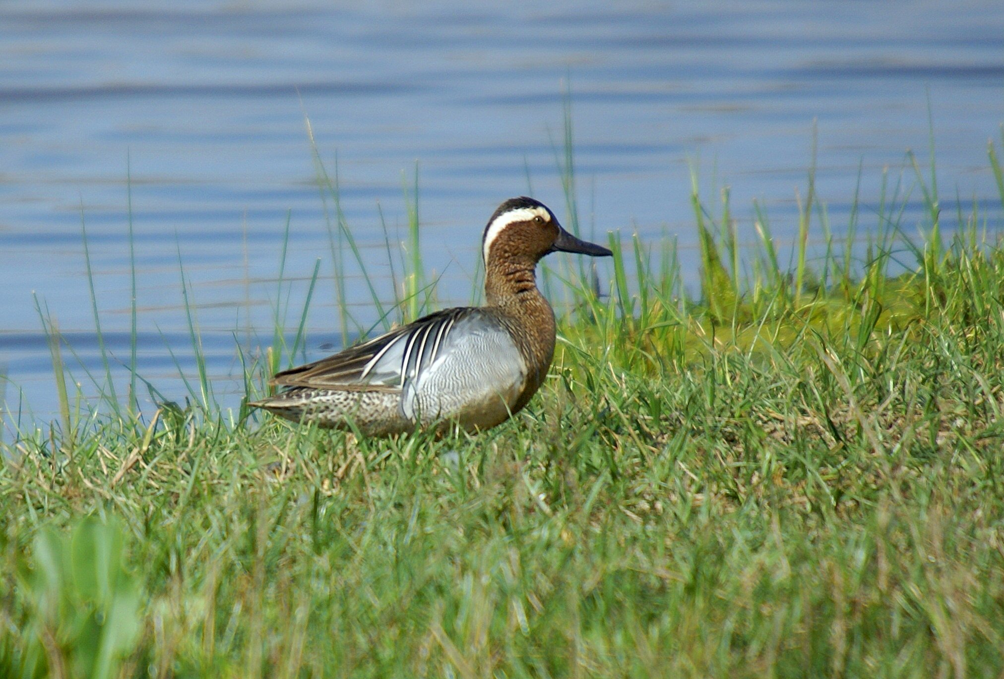 - Het eendje heeft een blauwgrijze voorvleugel en een groene vleugelspiegel