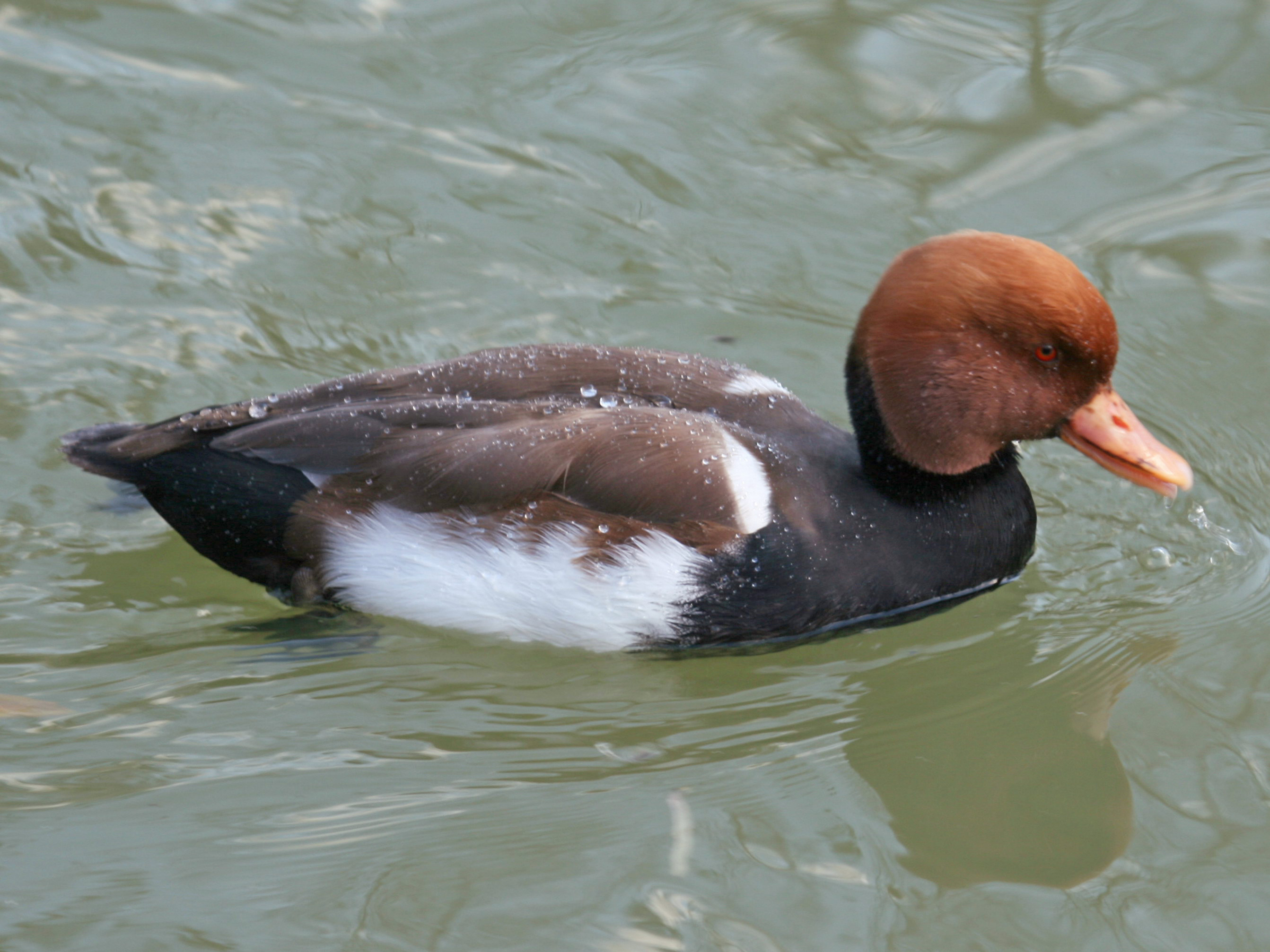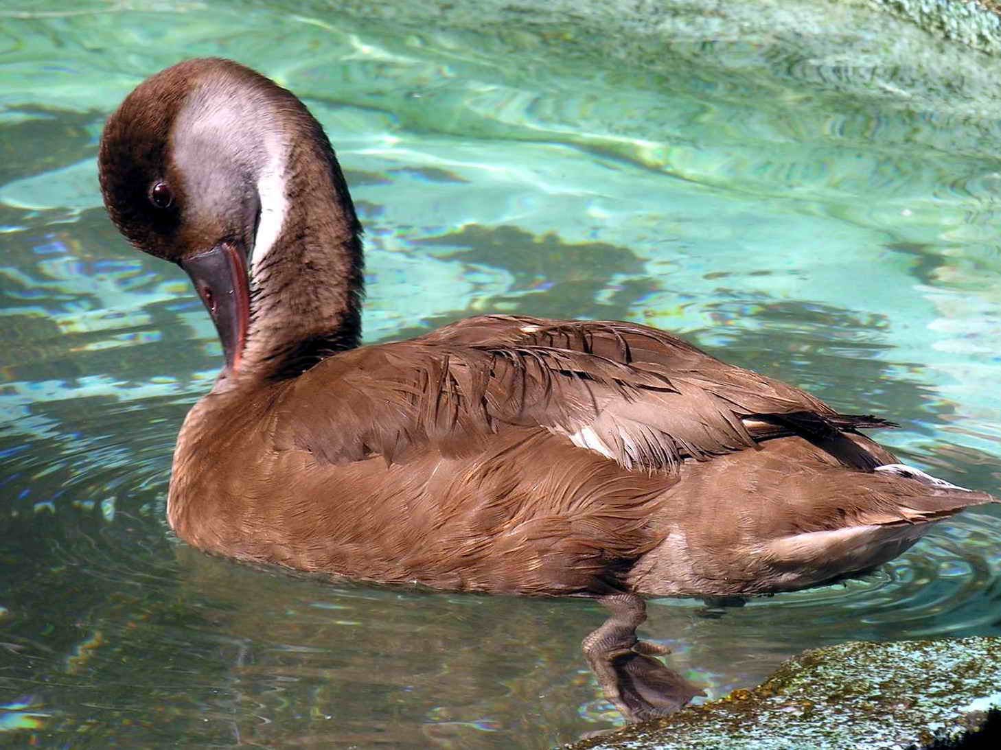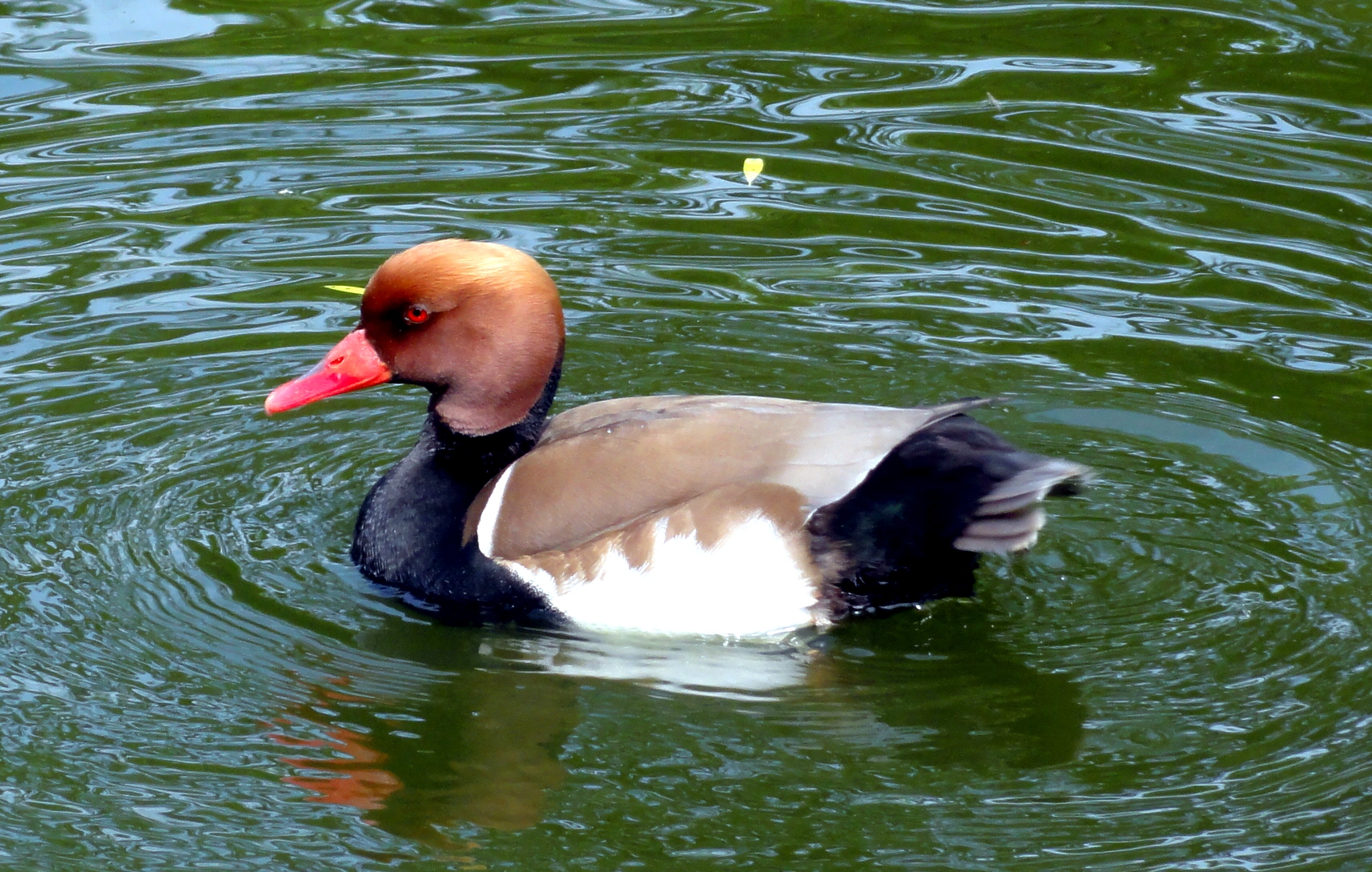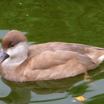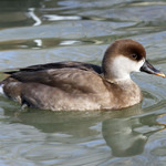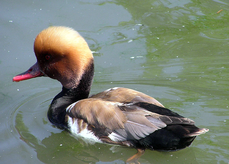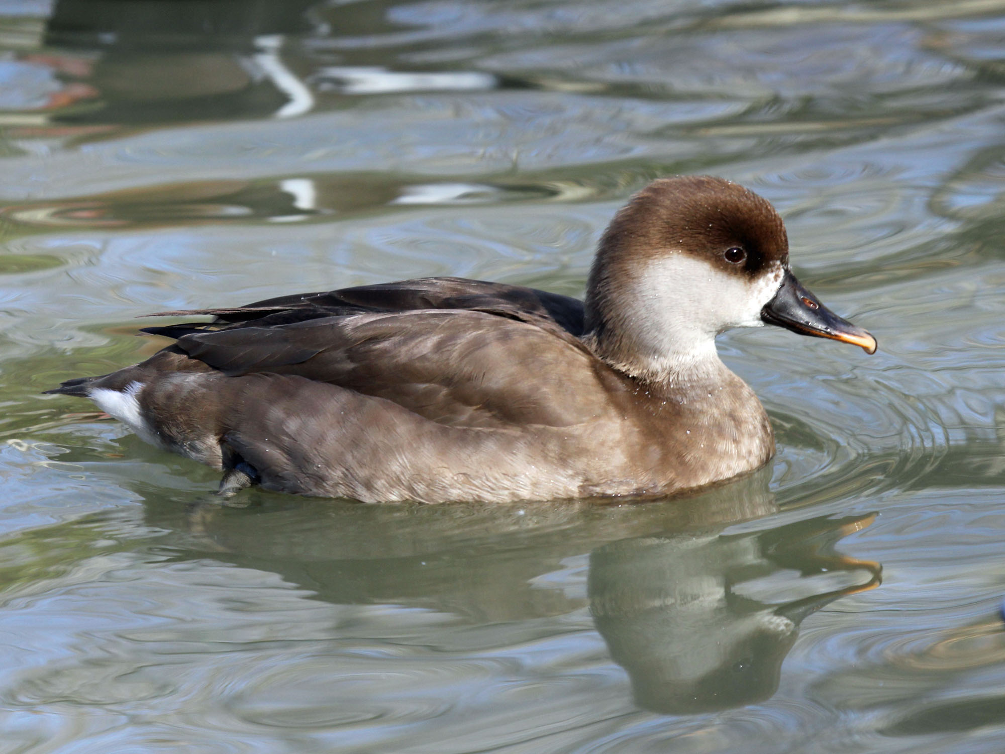 - Het eendje heeft opvallend lichte wangen die afsteken tegen de kop