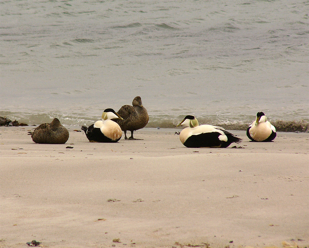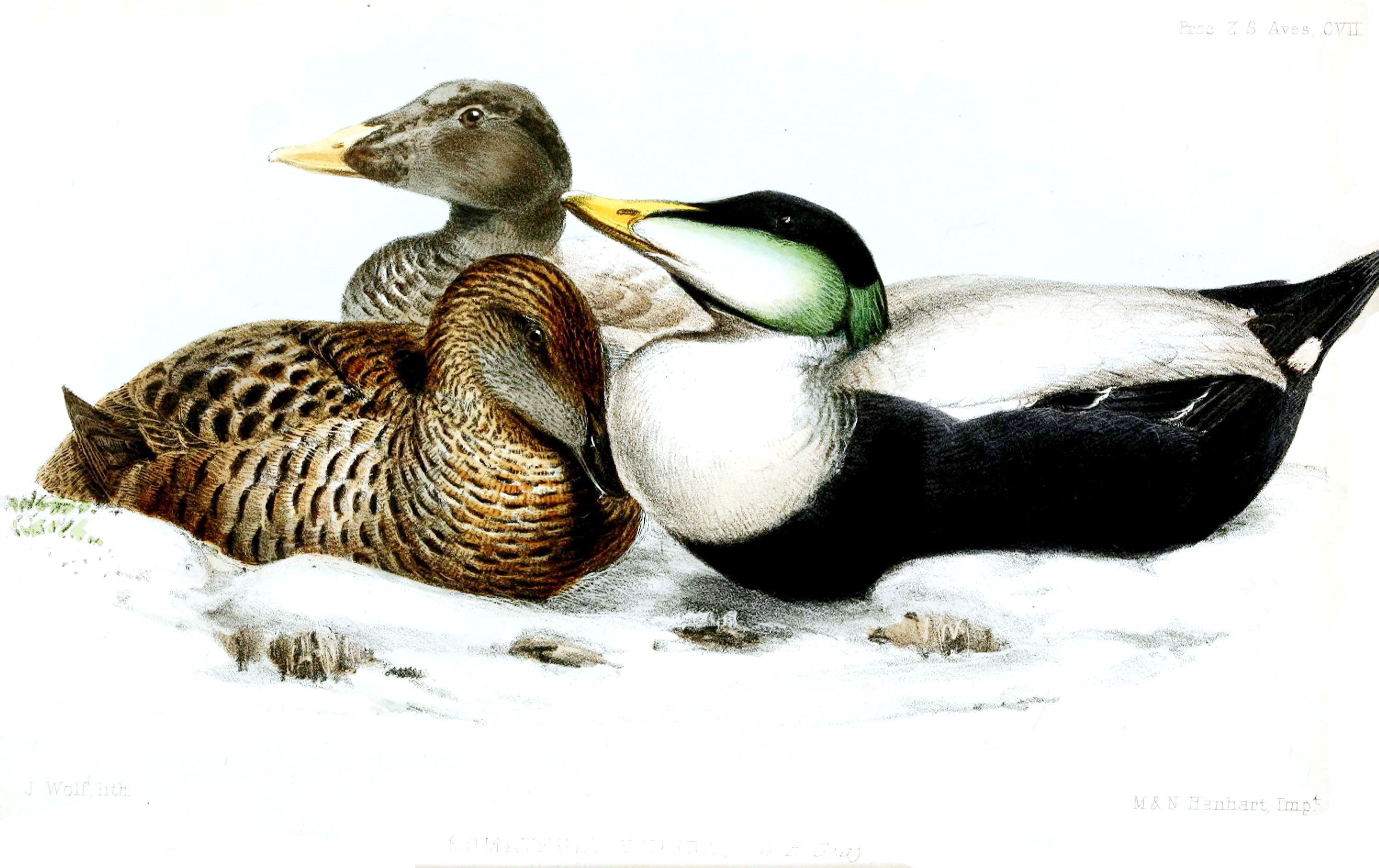De woerd heeft een lichtroze borst;De woerd heeft een witte kop met een zwarte kruin;De achterkant van de kop is lichtgroen;Het eendje is donkerbruin met duidelijke dwarsstrepen;+/- 59cm groot.