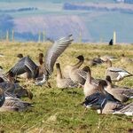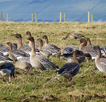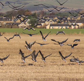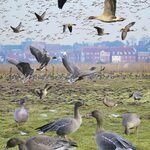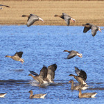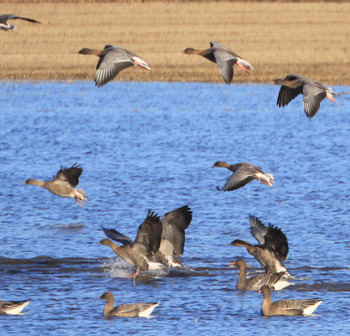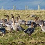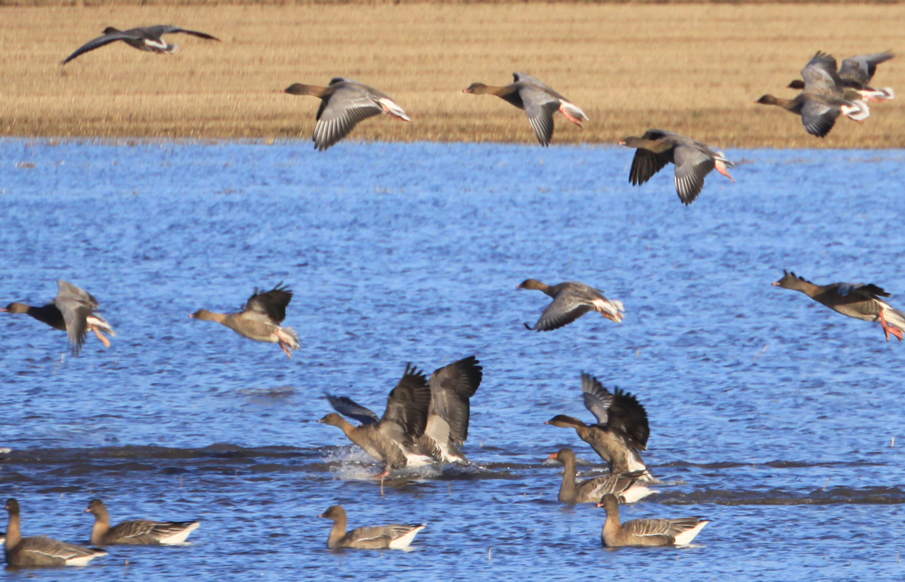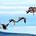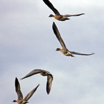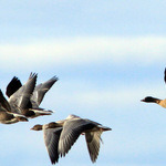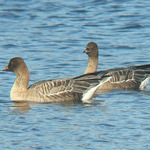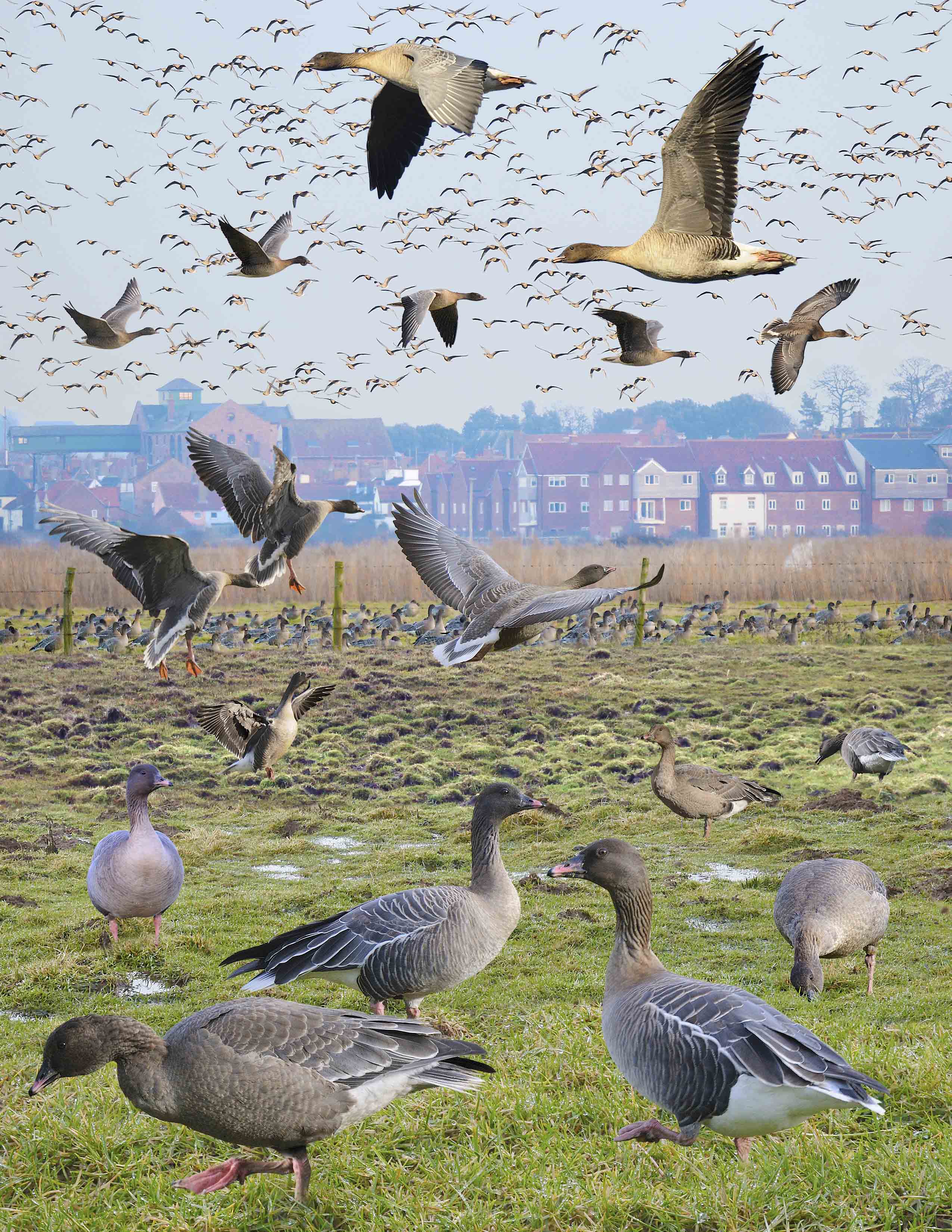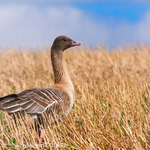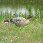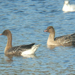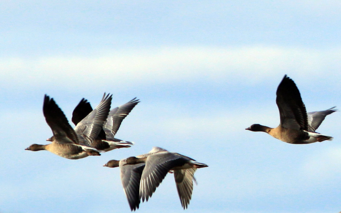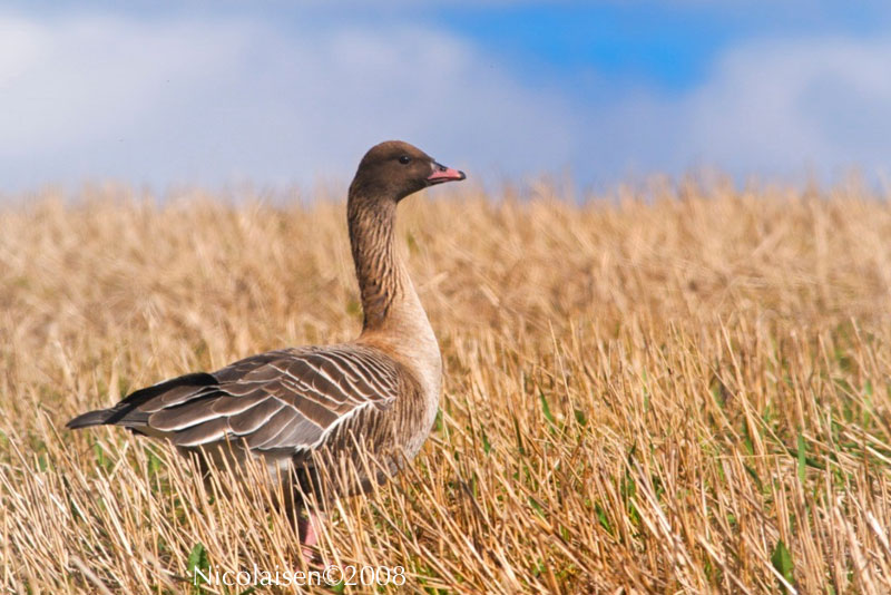 Blauwgrijze bovenkant steekt scherp af bij de donkere hals en kop