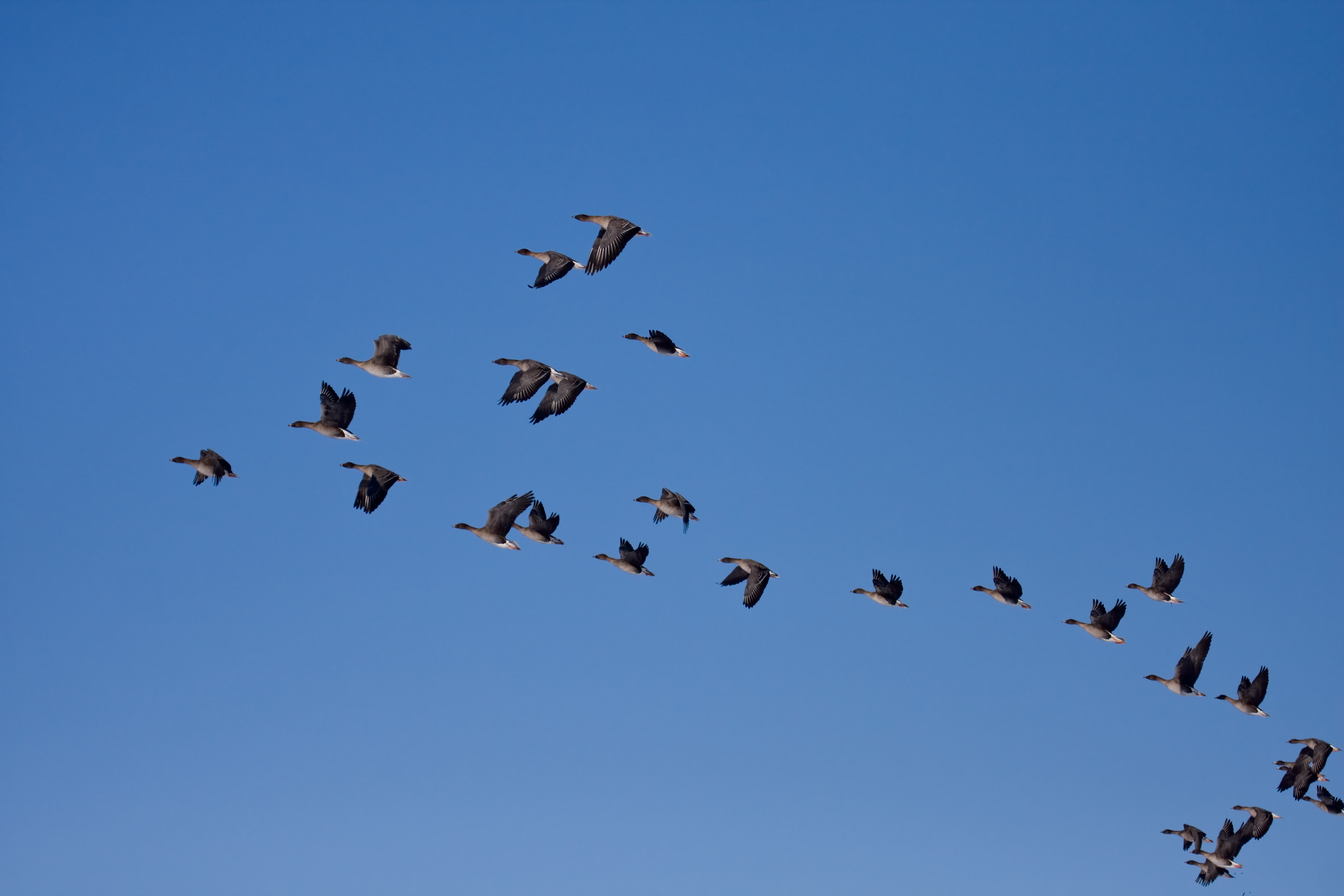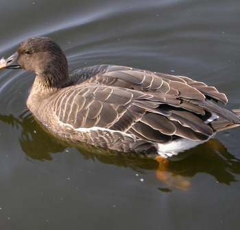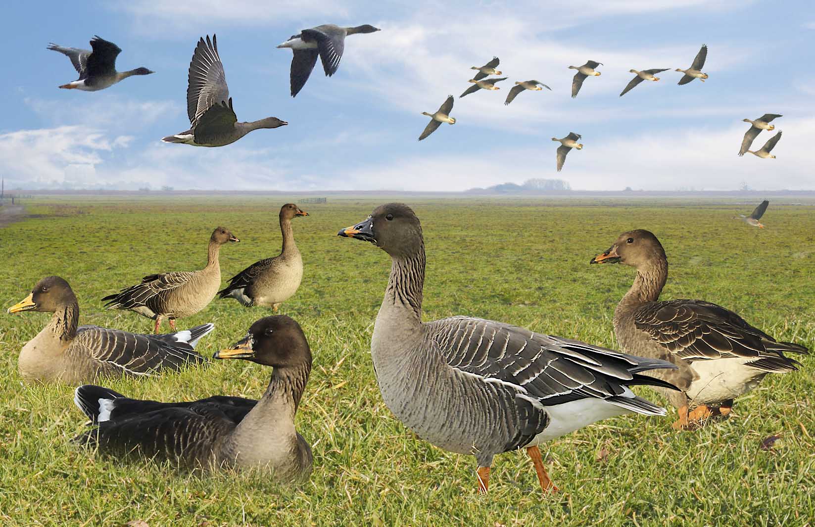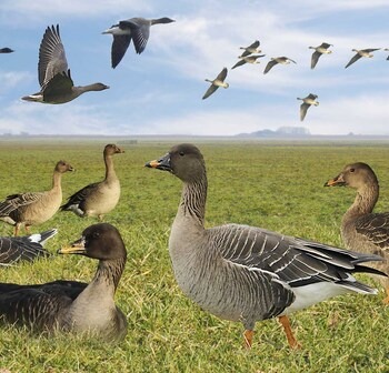Het toendra type heeft een korte snavel met weinig oranje