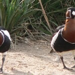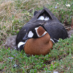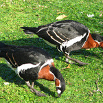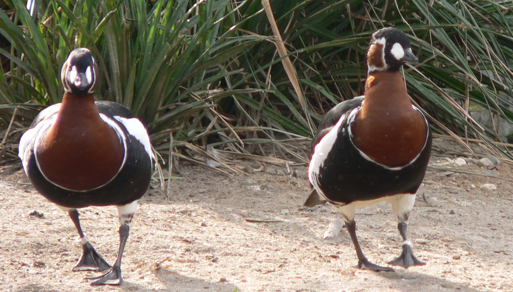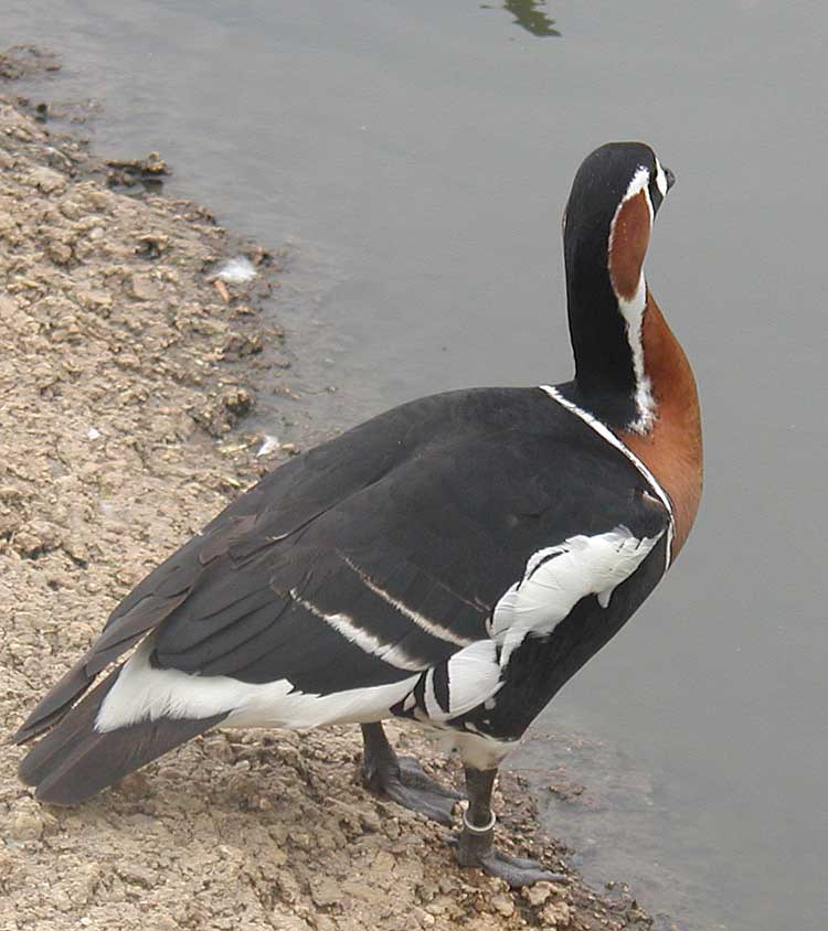 Witte zijstreep en witte lijntekeningen langs de kop en hals