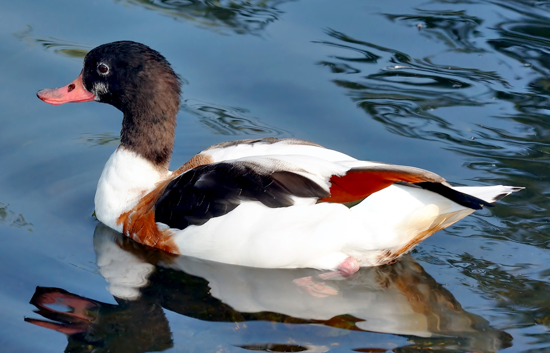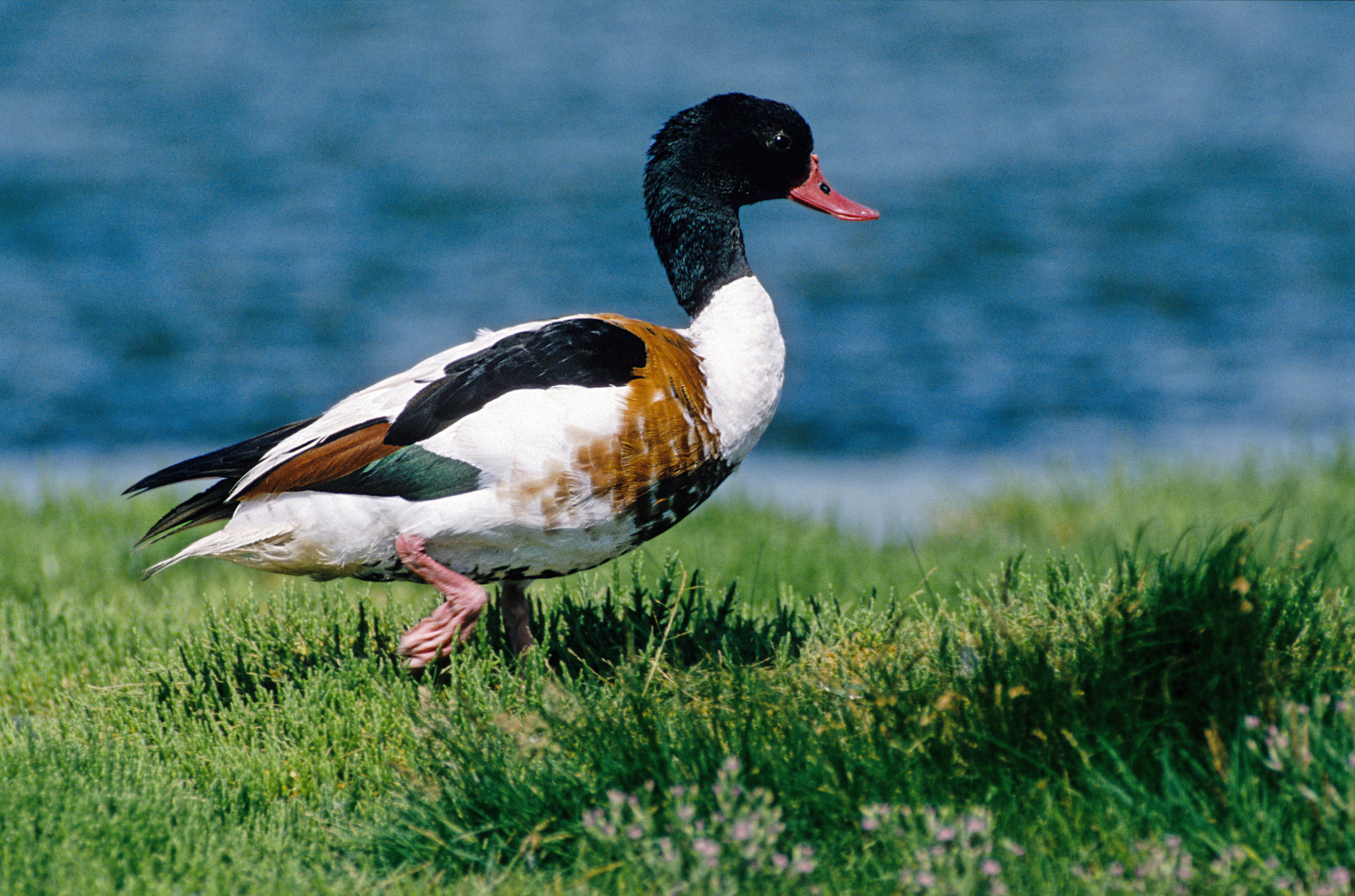 Op afstand lijkt de bergeend zwart wit