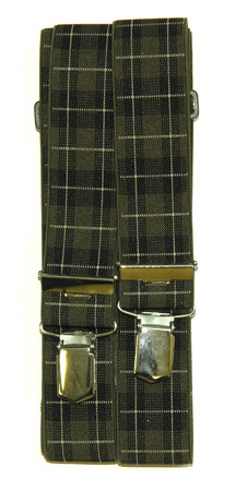 Kleur: olijf/zwart- beige geruit. Breedte: 3,5 cm. Lengte: 140 cm (verstelbaar).
