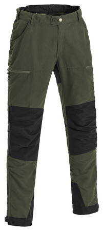Nieuw ontwikkelde broek in duurzaam en waterafstotend geborsteld materiaal. De elastische stof op knie en zitvlak biedt veel comfort en perfecte pasvorm! Dubbele beenzakken met rits en een achterzak. Ventilatie rits aan beide zijden voor extra ademend vermogen tijdens warme dagen of tijdens inspannende bewegingen. Verstelbare zoom en praktische ritssluiting. Elastiek in de taille. Buitenstof 100% polyester, elastische stof in 92% polyester en 8% Spandex®.Verkrijgbaar in mosgroen / zwart (153).Maten: C44–C60, D92–D120