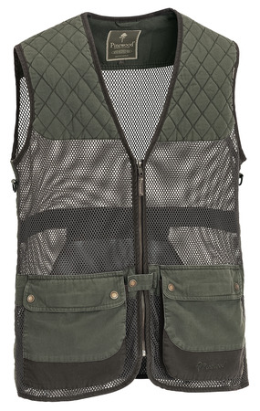 Functioneel schietvest in voorgewassen katoen canvas en ademend net/gaat voering.Geschikt voor zowel kleiduifschieten als ook voor de jacht bij warm weer.Ruime voorzakken en achterzak.