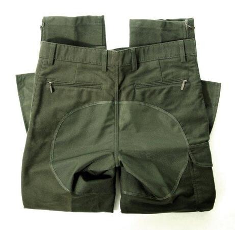 Bovenstof is een zware 100% katoenen moleskin met Teflon® fabric protector. Bezetstukken en knieflap uit 100% Cordura®, oersterk en waterdicht. Beenzak met geintegreed meszakje. Twee achterzakken die sluiten met rits. Beneden smal gesneden zodat de broek in de laarzen gedragen kan worden.