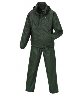 Functionele, lichtgewicht regenset voor onze regenachtige dagen. Zowel jas en broek kan gemakkelijk worden opgerold in de linkerzak van de jas die functioneert vervolgens als een grote opbergtas! De jas is ook uitstekend geschikt als een wind-en waterdichte outdoor jas. Waterdichte capuchon die gemakkelijk kan worden opgerold in de kraag. Waterbestendige binnenzak. Goede pasvorm.De jas is gevoerd met High-VentTM net/gaas. Broek licht gevoerd en heeft verstelbare pijpen. Getapete naden. 100% polyester. Kleur groenMaten: S-XXL