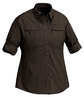 Sneldrogend en stevig damesshirt voor safari of vrije tijd in duurzaam Quick-Dry™ rip-stop materiaal. Vrouwelijke snit voor perfecte pasvorm. High-Vent™ net/gaas voering rond de schouders voor extra comfort. Ventilatie-opening in de rug (bovenzijde) ideaal bij veeleisende activiteiten. Riempjes voor veilig opgerolde mouwen als dat nodig is. UV beschermd. Materiaal:buitenlaag 100% nylon. net/gaas voering van 100% polyester. Verkrijgbaar in de kleuren:- Aardebruin (206) - Zandsteen (231)Maten: S - XXL
