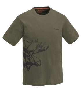 Zacht en comfortabel T-shirt in 180g katoen.Een leuk vrije-tijds/jacht shirt.Mooie eland-print aan de zijkant.Materiaal: 100% katoen.Kleur: Khaki Groen (121).Maten: 116/6 - 176/16