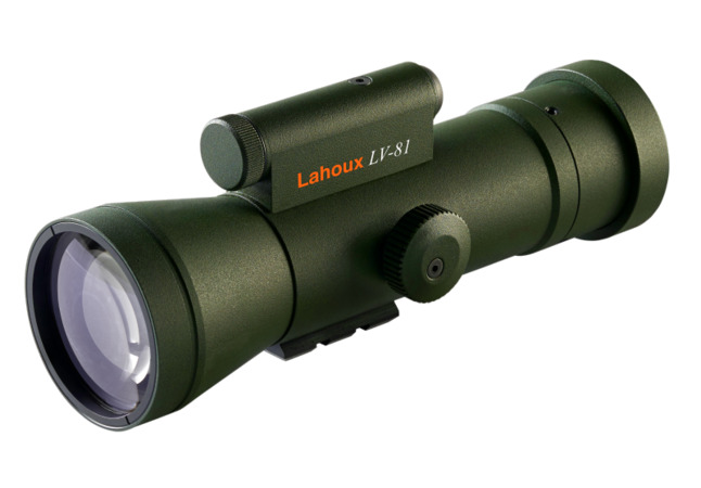 Lahoux LV-81 De nieuwe nachtvoorzet van Lahoux Optics, de Lahoux LV–81 is ontworpen, geproduceerd en geassembleerd in onze fabriek in Haarlem, Nederland en onderscheidt zich door precisie, robuustheid en betrouwbaarheid. De nachtkijker is multipurpose en met bevestiging van een speciale adapter worden veranderd in een voorzet-camera zodat het kan worden gebruikt voor verschillende optische apparaten zoals verrekijkers, fototoestellen, jachtoptiek en videorecorders. De Lahoux LV–81 heeft het beste objectief dat momenteel beschikbaar is. Uniek is dat de apertuur hoog is voor het gehele beeldveld en niet alleen langs de as. De lange brandpuntafstand van het 80 mm objectief maakt het de mogelijk om op grote afstand te observeren en de speciale AR coating op elke lens maakt zeer hoge transmissie waarden mogelijk en geeft een ongeëvenaard helder beeld. Voor extra robuustheid zijn alle afzonderlijke lenzen schokbestendig gemonteerd. Uiteraard is de LV–81 van Lahoux Optics uitgerust met een robuuste, schokbestendige Photonis™ beeldversterkerbuis, met een individueel meetblad van de Photonis beeldversterkerbuis, die de parameters van de buis garandeert. Wij raden de High FOM, SuperGen™, XD-4™ of XR5™ aan (ook beschikbaar in Onyx met witte fosfor). Het gebruik van een snelspan-adapter in plaats van montageringen, zorgt voor een snelle en eenvoudige installatie van de Lahoux LV–81 op vrijwel alle richtkijkers. De Lahoux LV–81 is gebruiksvriendelijk en uitgerust met een weaver-rail voor een optionele laser- of diode- lamp naar keuze. De gekozen CR-123 heeft een lange en praktische batterij levensduur tot wel 85 uur en kan onafhankelijk van de polariteit geplaatst worden. Een nuttige functie bij gebruik in het donker. Als een extra service selecteren wij Photonis buizen in verschillende categorieën, afhankelijk van de individuele buisparameters en spots. Op deze manier ontstaat er een ruimere keuze