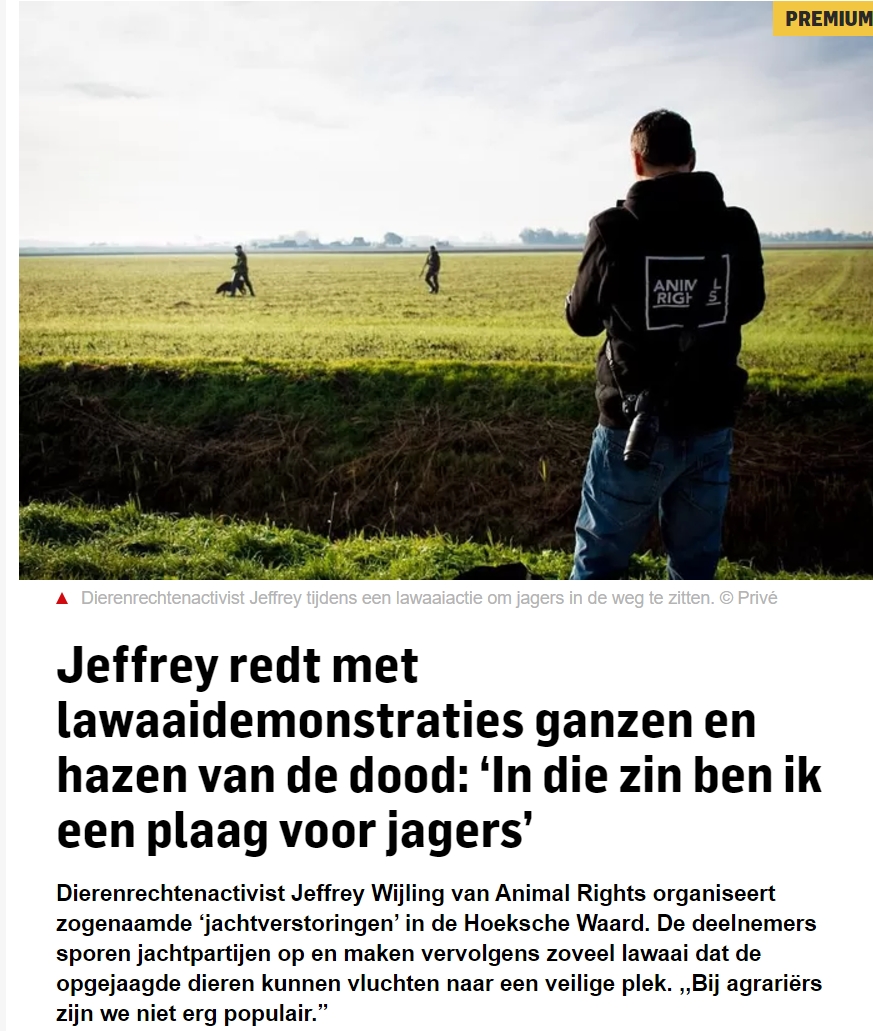 Onlangs was dat nog eens overduidelijk toen Animal Rights weer eens zonder weerwoord een podium kreeg in het Algemeen Dagblad. Subtiel wordt daar de geest van de lezer ‘vergiftigd’ door insinuaties te doen, zoals ,,Van bedreigingen vanuit hun kant (hij bedoelt die van de jagers dus) is de afgelopen jaren geen sprake geweest”.