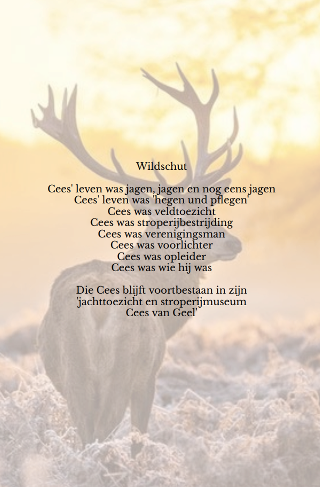 Over wie ik het heb? Over Cees van Geel, de bij leven al bijna legendarische jachtopzichter.