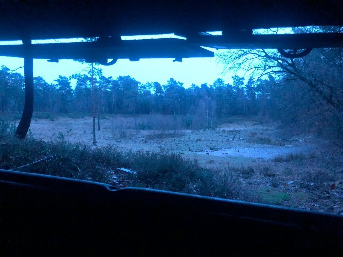 Voorzichtig lopen we naar de oude zandafgraving waar we vanavond zullen zitten. Op eerste oog is er geen wild te zien, maar eerst scan ik met mijn Flir de omgeving. Soms staat wild al geruime tijd in de dekking te zekeren voor ze uittreden.