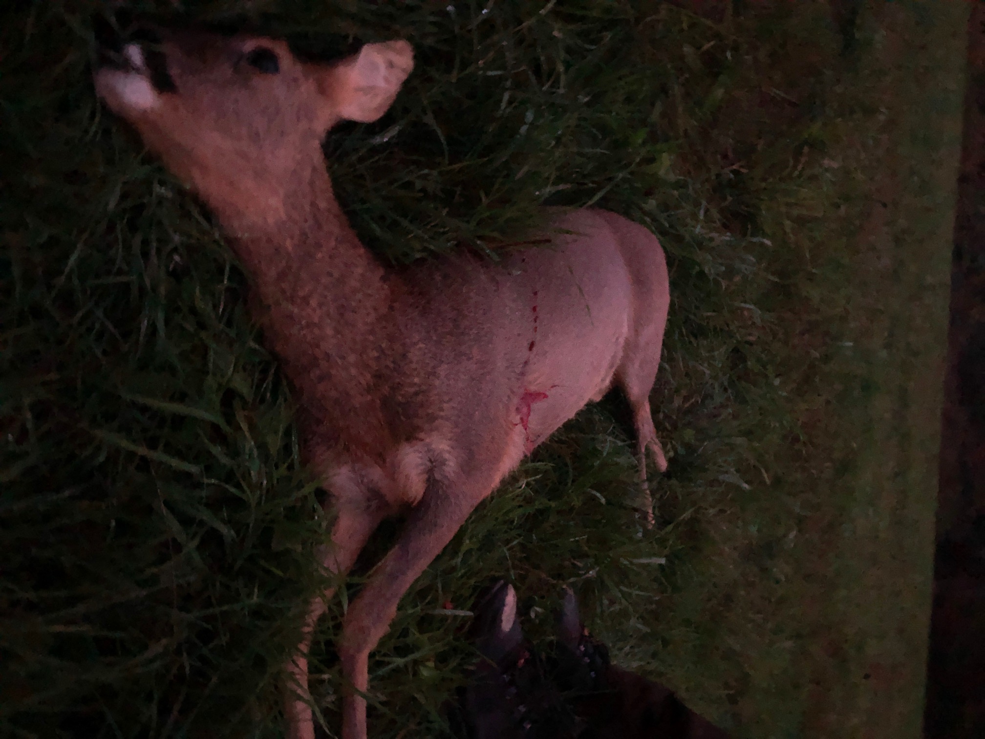 De geit valt ter plekke, doorgrendelen en blijven kijken. Maar de geit beweegt niet meer. De bok wel, attent maar niet echt geschrokken loopt hij enkele passen op de geit af. Kijkt eens uitvoerig rond, beetje schijnazen , opwerpen.
